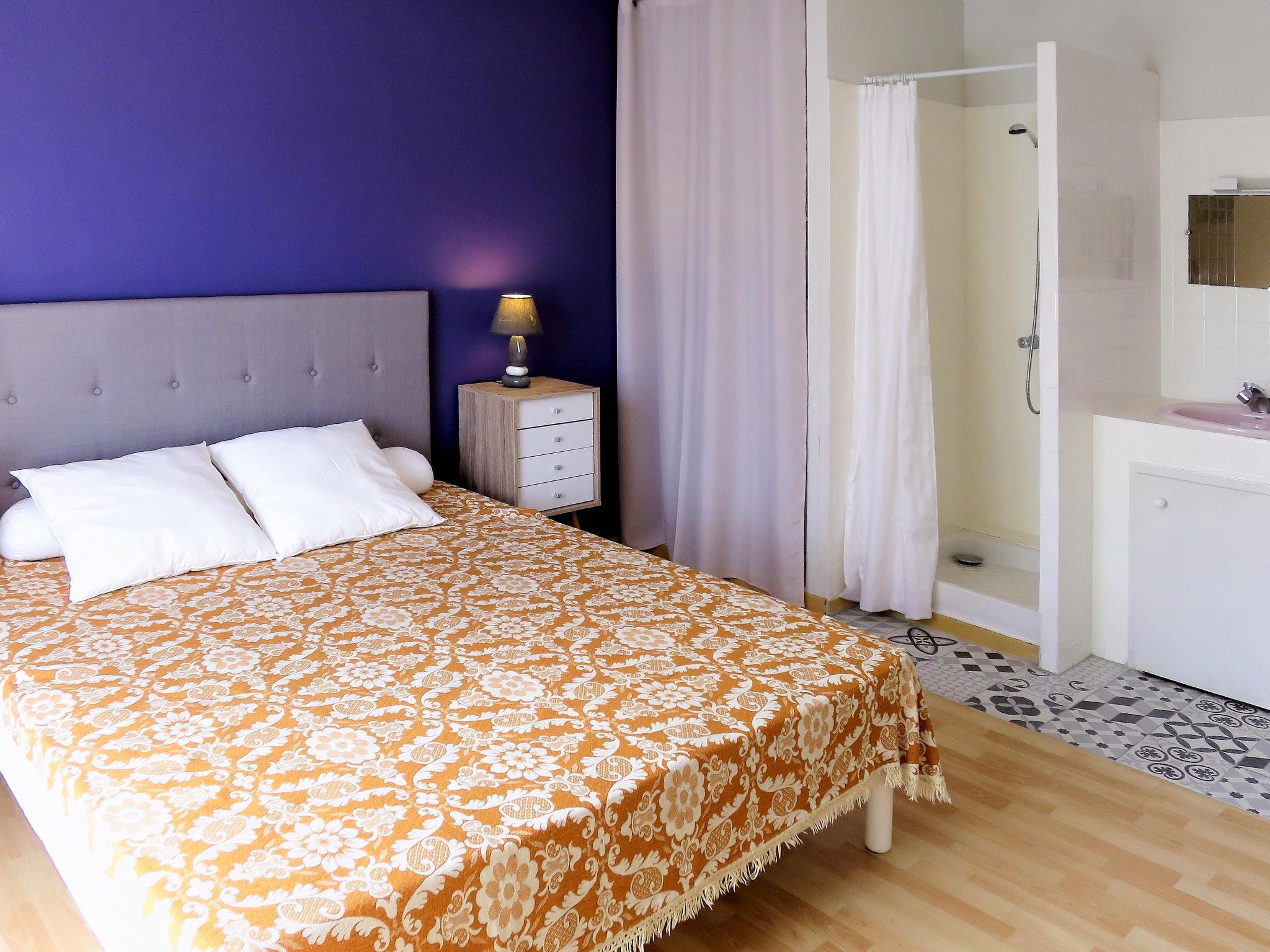"Orphée", 4-room house 170 m2. Bright, simple and practical furnishings: living/dining room with dining table and satellite TV (flat screen), hi-fi system. Exit to the terrace. Small living/sleeping room with 1 double sofabed (140 cm, length 190 cm). 1 room with 1 french bed (160 cm, length 200 cm), hand-basin and shower. 1 room with 1 bed (80 cm, length 190 cm), 1 sleeping facility (90 cm, length 190 cm), hand-basin and shower. Kitchen (oven, dishwasher, 4 gas rings, toaster, kettle, microwave, freezer, electric coffee machine). Sep. WC. Heating. Parquet floors. Terrace 60 m2. Terrace furniture, barbecue (portable), deck chairs (2), box-room. Facilities: washing machine, iron, children's high chair, baby cot. Internet (WiFi, free). Please note: non-smoking house. Smoke alarm.