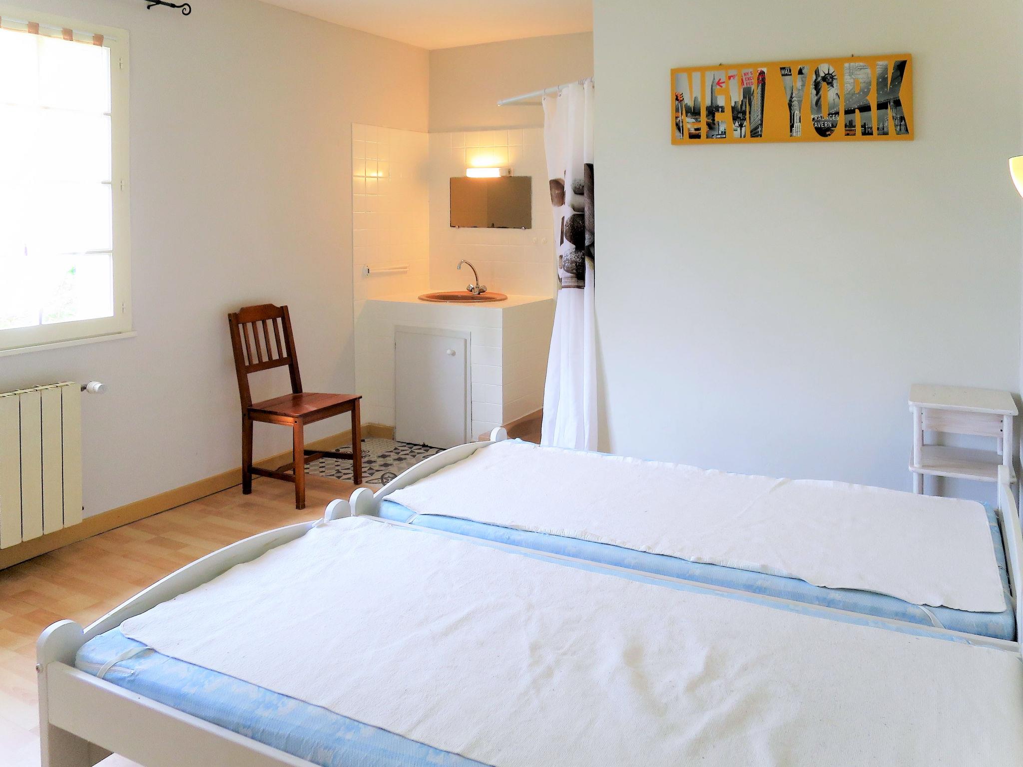 Large single-family house "Orphée". 2 houses in the residence. 2.3 km from the centre of Gaillan-en-Médoc, 1 km from the centre of Lesparre-Médoc, 31 km from the centre of Soulac-sur-Mer, in the residential district, 19.5 km from the sea. Private: garden 1'800 m2 (fenced) with wildlife garden and trees, natural garden, meadow, swimming pool (above ground) fenced (3.66 m diameter, depth 76 cm, seasonal availability: 01.Jul. - 31.Aug.). Parking at the house on the premises. Shop 1 km, supermarket 1 km, bus stop "Lesparre-Medoc" 1.6 km, sandy beach "Naujac-sur-Mer, Plage Pin Sec" 19.5 km. Fishing possibilities 13 km. Nearby attractions: Montalivet 21 km. Owner lives in separate semi-detached house.