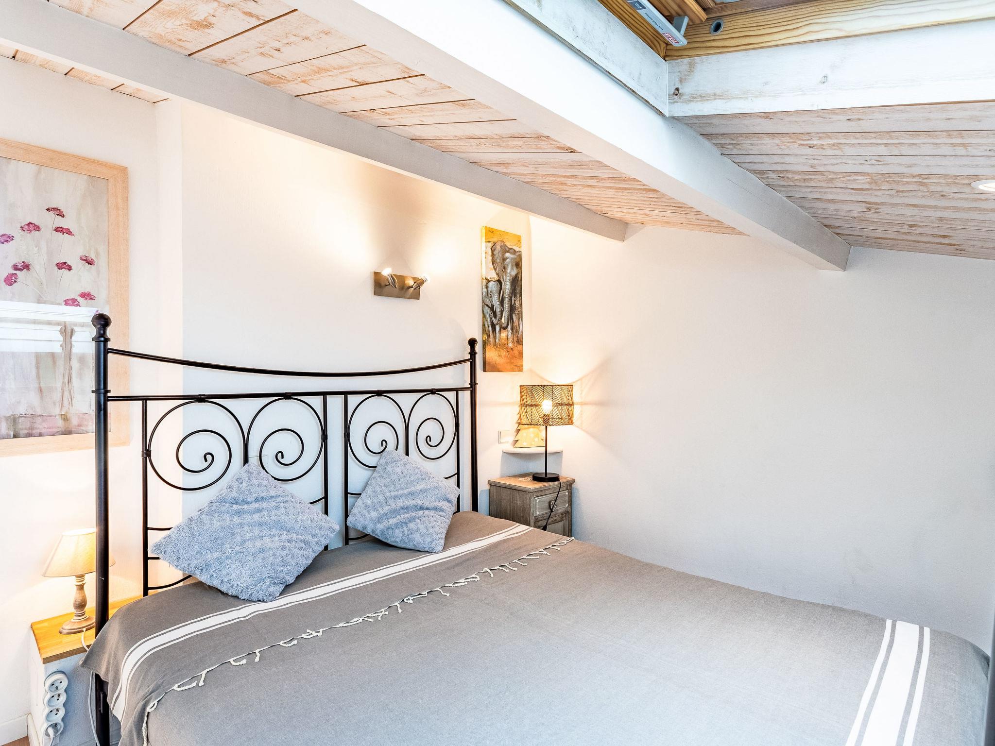 "Les Marines de Gassin 13", 3-room apartment 50 m2 on 2 levels on 2nd floor. Cosy furnishings: living/dining room with TV (flat screen). Exit to the terrace. 1 room with 1 french bed (160 cm, length 200 cm). Kitchenette (oven, dishwasher, 4 ceramic glass hob hotplates, toaster, kettle, microwave, electric coffee machine, Capsules for coffee machine (Nespresso) extra). Shower/WC. Upper floor: 1 room with sloping ceilings, ceiling height 100 - 200 cm with 1 bed (90 cm, length 190 cm), 1 french bed (160 cm, length 200 cm). Shower/WC. Electric heating, air-conditioning. Terrace 12 m2, north-east facing position. Terrace furniture. Partial view of the sea. Facilities: washing machine. Internet (WiFi, free). Parking space n 218. Please note: non-smokers only. Maximum 1 small pet/ dog allowed. Smoke alarm. Offer by a commercial proprietor according to Art. 155, IV, CGI 83065000575RP