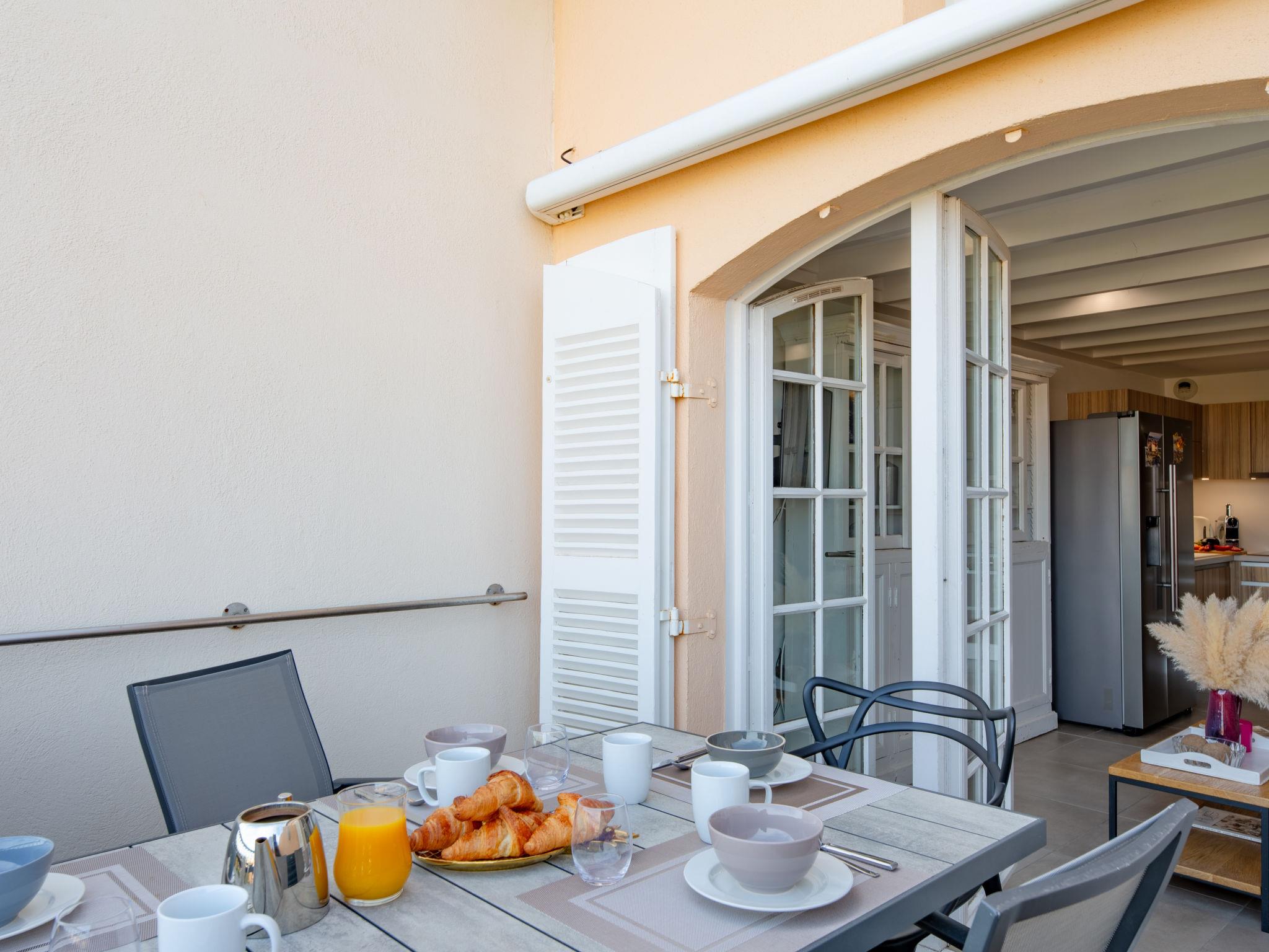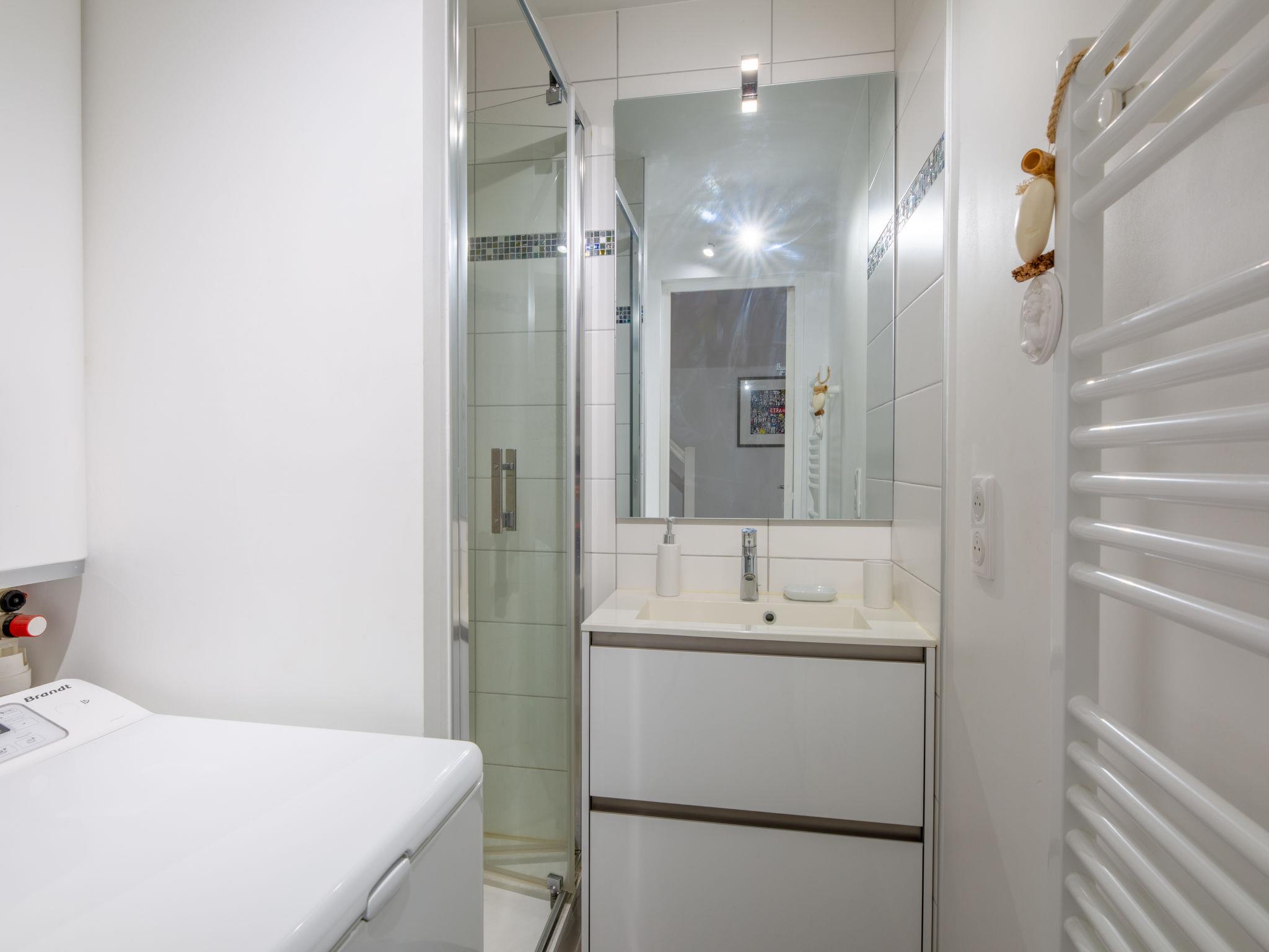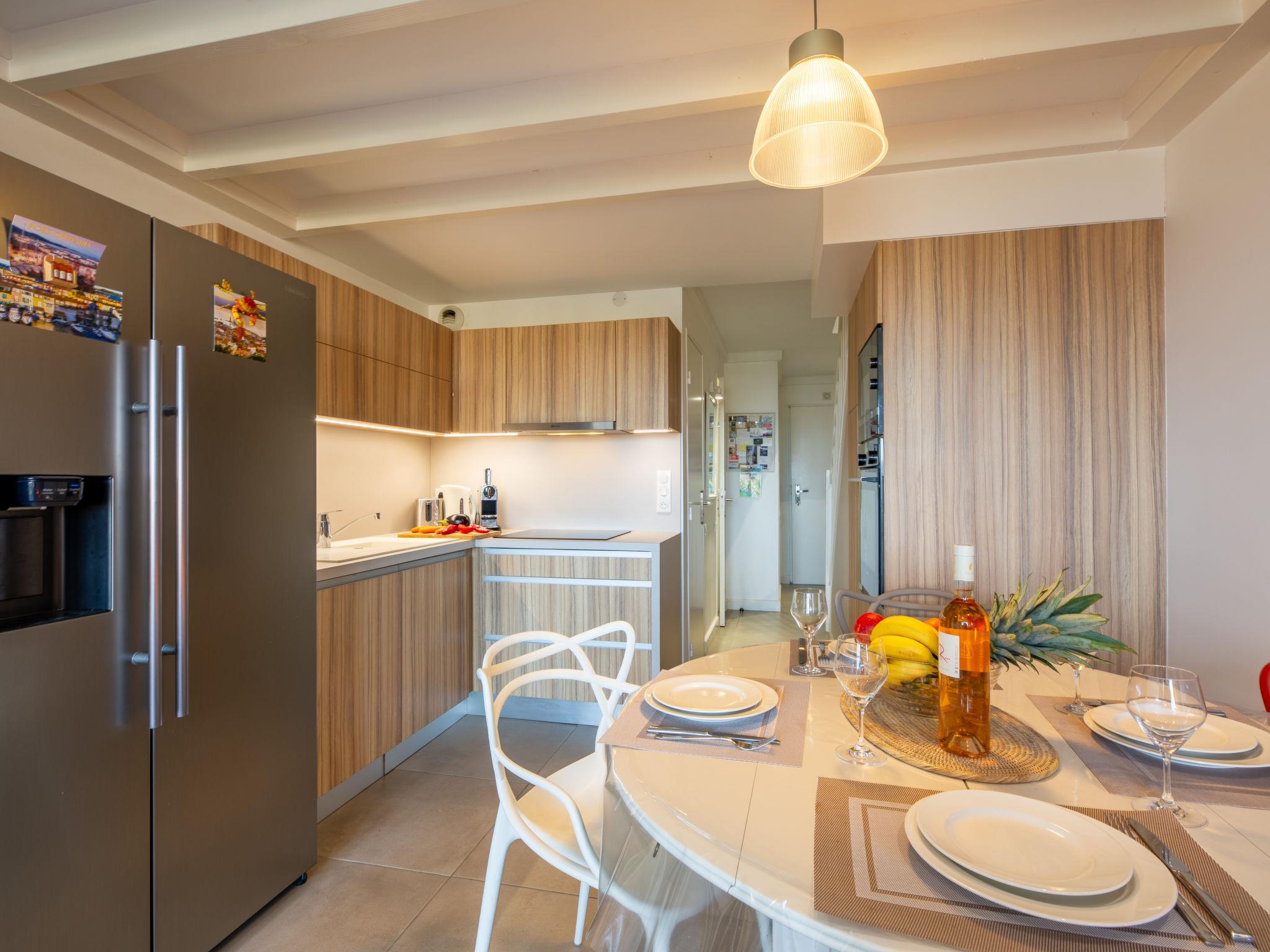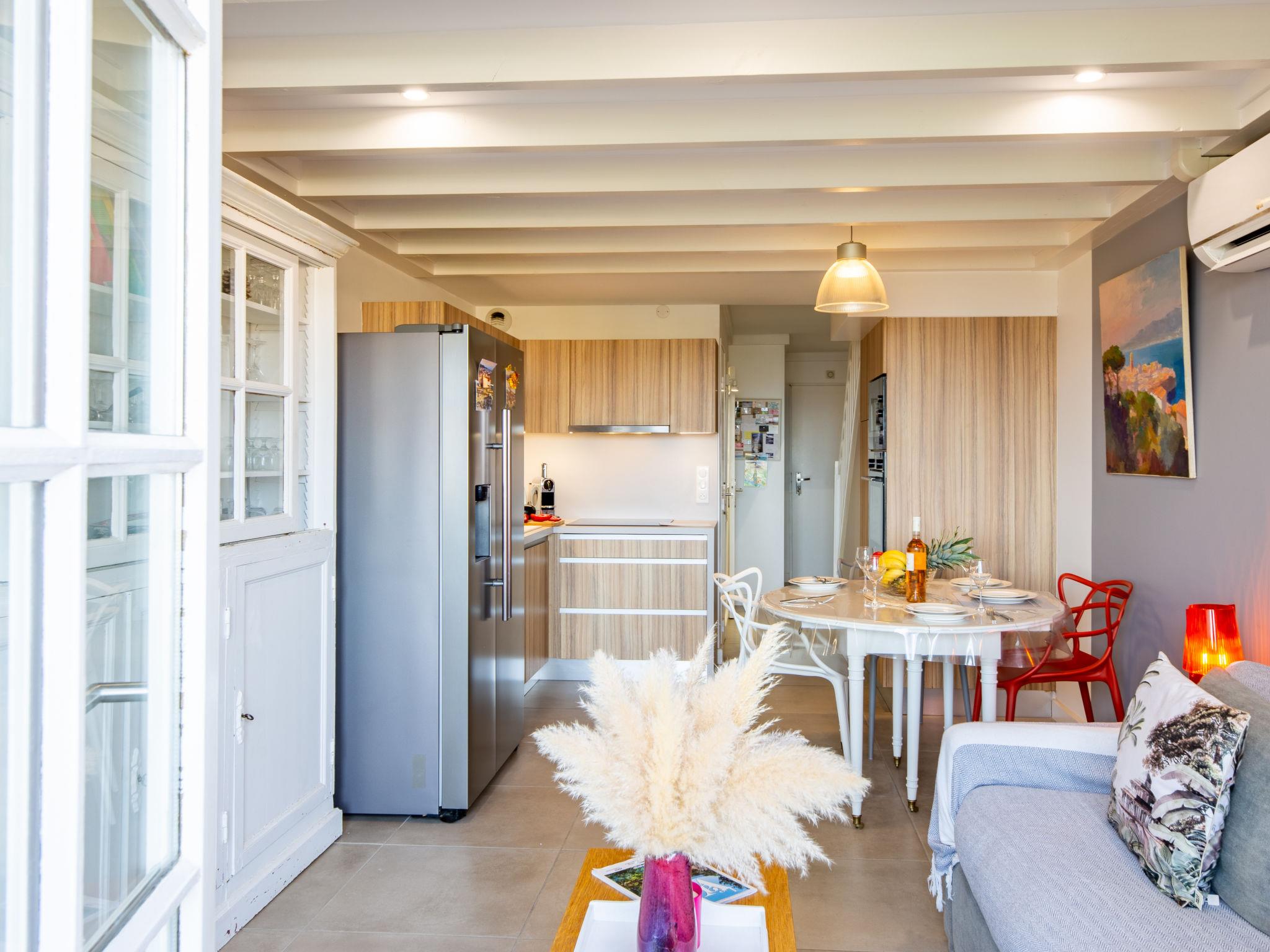 4-room apartment 52 m2 on 4th floor. Living/dining room with TV (flat screen), air conditioning. Exit to the terrace. 1 small room with 1 x 2 bunk beds (80 cm, length 190 cm). Kitchenette (oven, dishwasher, 4 induction hot plates, toaster, kettle, microwave, freezer, electric coffee machine). Shower, sep. WC. Upper floor: 1 room with 1 french bed (140 cm, length 190 cm). 1 room with sloping ceilings with 1 french bed (140 cm, length 190 cm), air conditioning. Shower/WC. Electric heating, air-conditioning. Terrace 6 m2 partly roofed. Terrace furniture. View of the sea. Facilities: Internet (WiFi, free). Parking (1 car). Please note: non-smokers only. Smoke alarm. Offer by a private individual according to Art. 155, IV of CGI. 83065000965OW