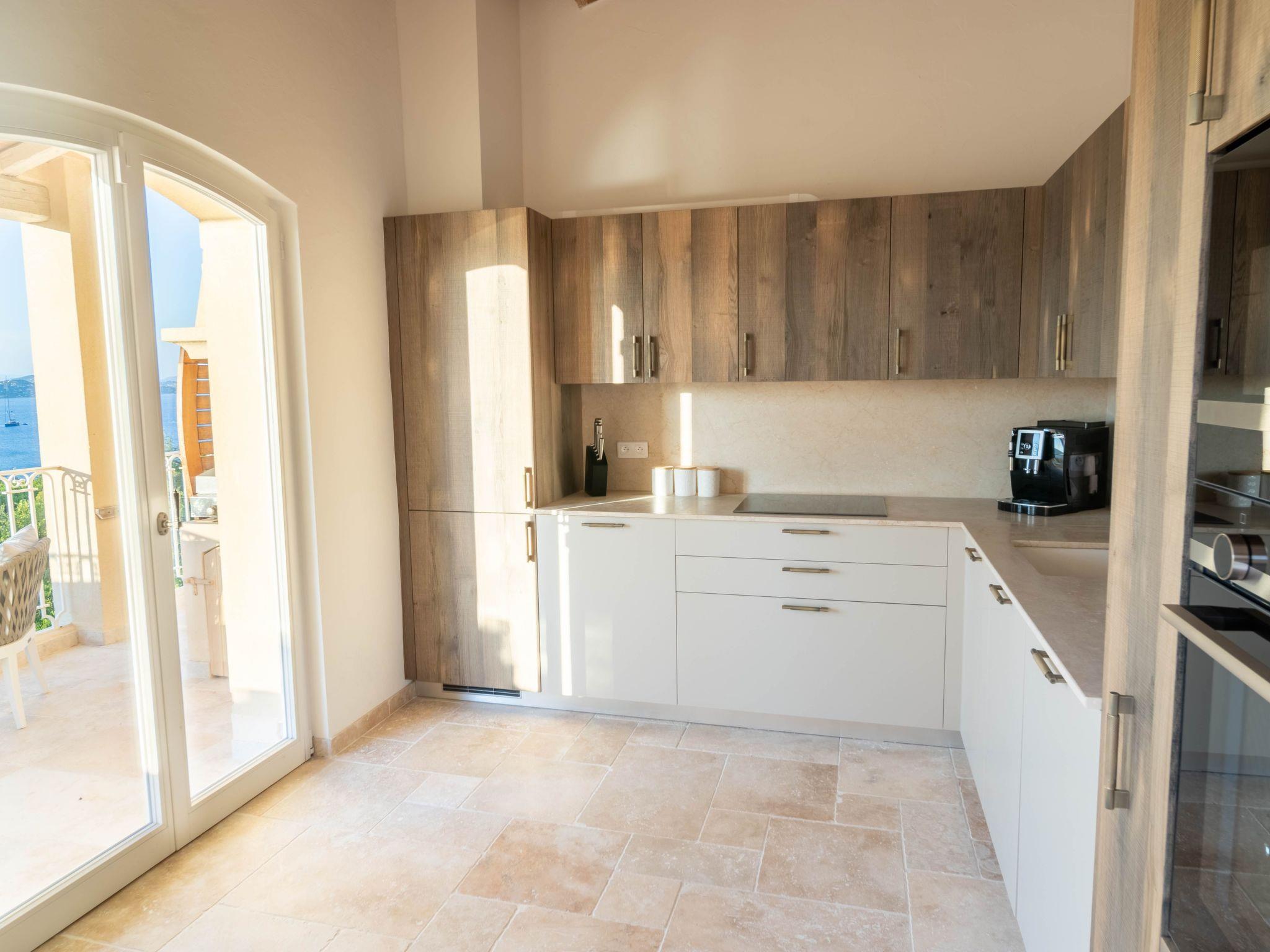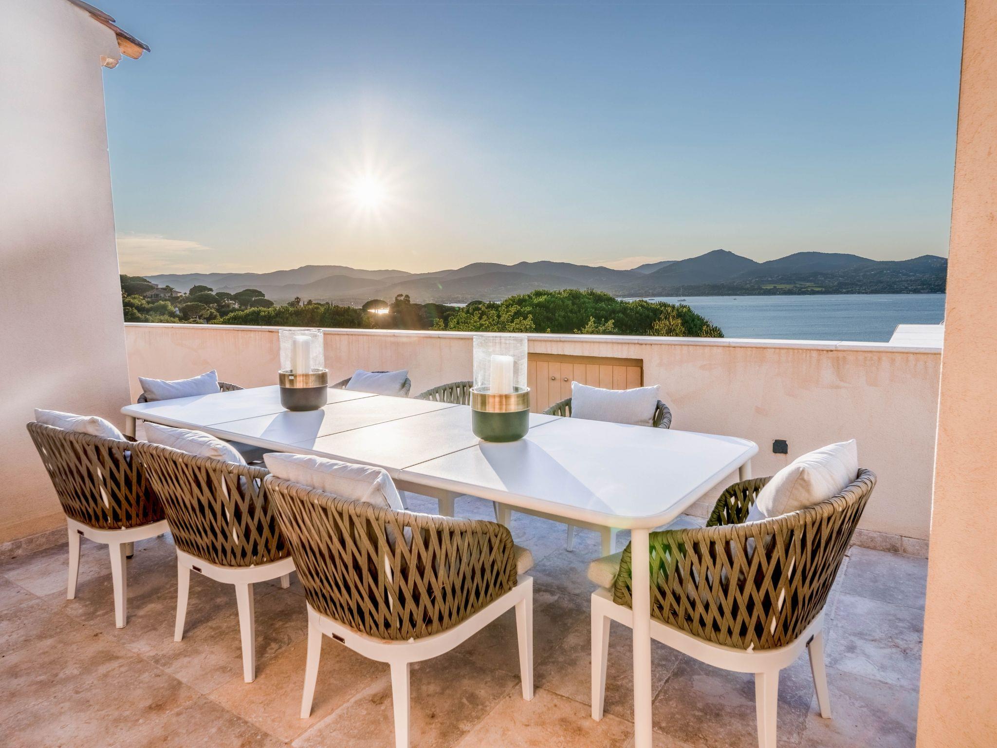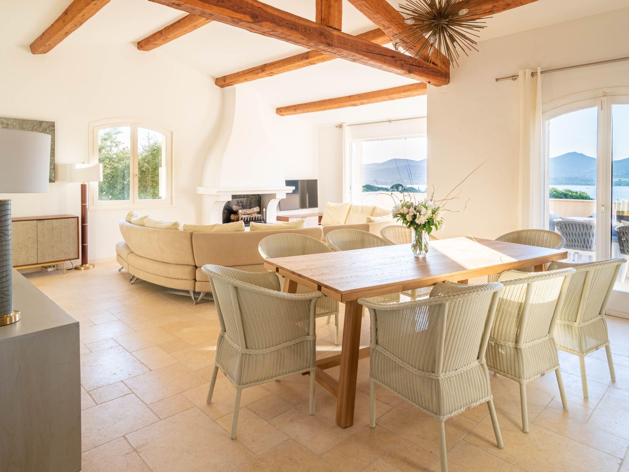The villa is approximately 200 m2 and can accommodate up to 10 adults. It has been recently renovated and furnished with great taste and attention to detail to ensure comfort and well-being.One of the highlights of the villa is that it offers panoramic views over the Mediterranean Sea and the Gulf of Saint-Tropez.Access to the property is via an electric gate and a pretty pavement leading directly to the entrance and covered parking. The house has been built on a sloping plot and extends over two levels.On the upper level there is a bright living room with sofas and fireplace, a dining table for 10 visually separating the living room from the fully equipped open-plan kitchen, and a master bedroom with king-size bed, fitted wardrobes and en-suite bathroom.On the lower level there are the other four bedrooms: a master bedroom with king-size bed, fitted wardrobes and en-suite bathroom, two bedrooms sharing a bathroom and a bedroom with en-suite bathroom.Other amenities: WIFI, SONOS sound system, TV with international channels, fireplace, air conditioning and heating in all rooms, washing machine and tumble dryer, large soundproof windows, new, good-quality furniture and appliances, bath and pool towels, bed linen, daily professional cleaning except Sundays, concierge service on request.