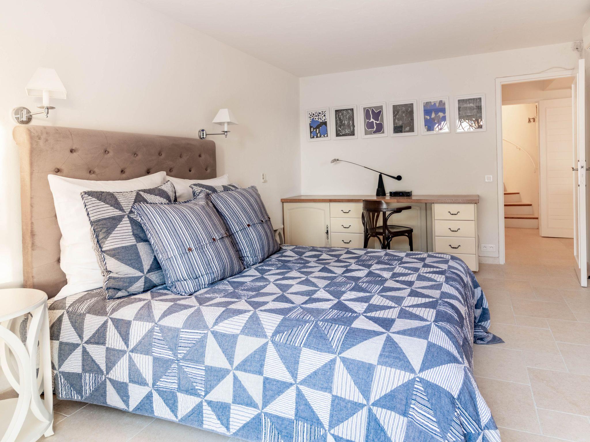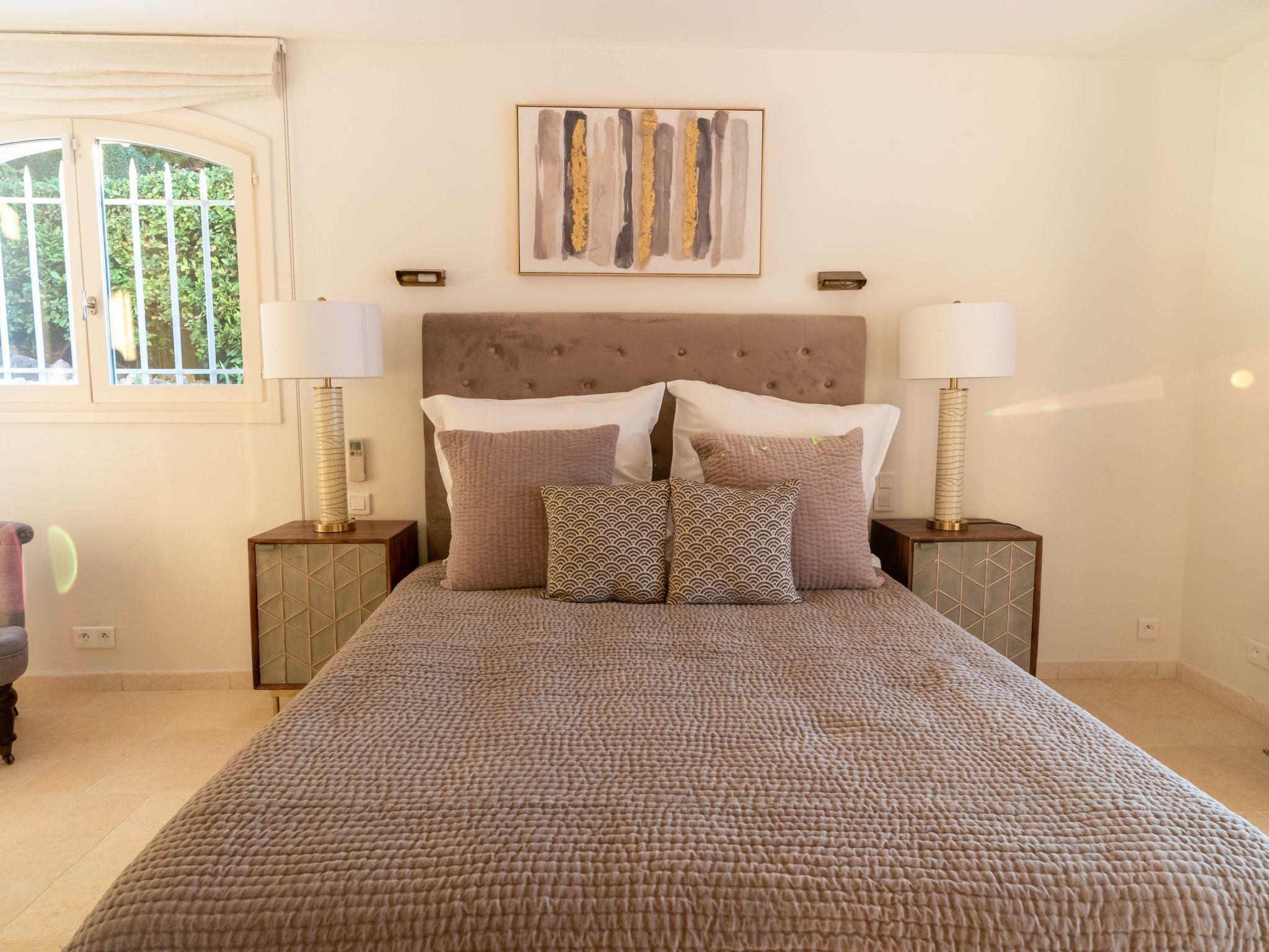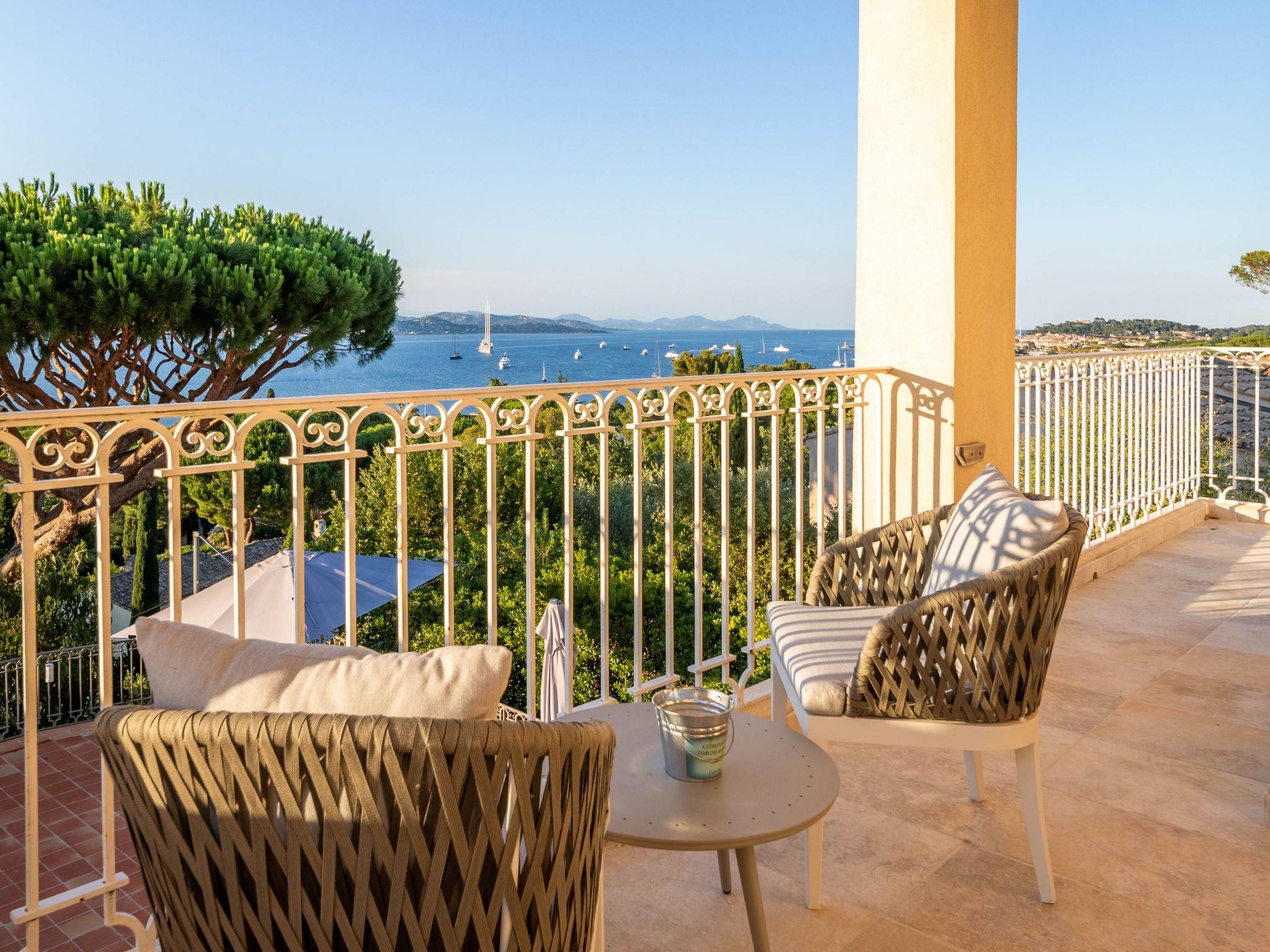 The villa is approximately 200 m2 and can accommodate up to 10 adults. It has been recently renovated and furnished with great taste and attention to detail to ensure comfort and well-being.One of the highlights of the villa is that it offers panoramic views over the Mediterranean Sea and the Gulf of Saint-Tropez.Access to the property is via an electric gate and a pretty pavement leading directly to the entrance and covered parking. The house has been built on a sloping plot and extends over two levels.On the upper level there is a bright living room with sofas and fireplace, a dining table for 10 visually separating the living room from the fully equipped open-plan kitchen, and a master bedroom with king-size bed, fitted wardrobes and en-suite bathroom.On the lower level there are the other four bedrooms: a master bedroom with king-size bed, fitted wardrobes and en-suite bathroom, two bedrooms sharing a bathroom and a bedroom with en-suite bathroom.Other amenities: WIFI, SONOS sound system, TV with international channels, fireplace, air conditioning and heating in all rooms, washing machine and tumble dryer, large soundproof windows, new, good-quality furniture and appliances, bath and pool towels, bed linen, daily professional cleaning except Sundays, concierge service on request.
