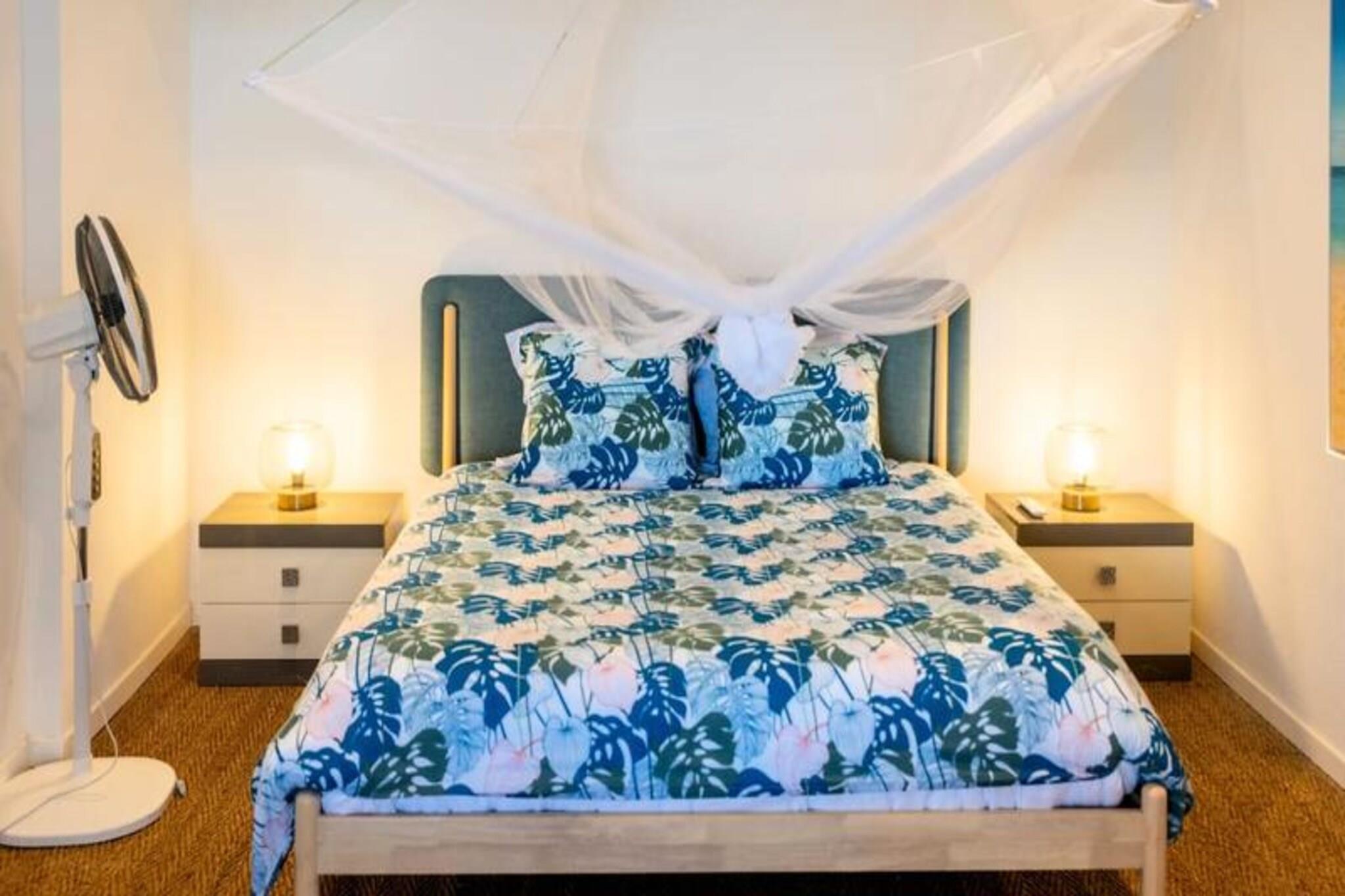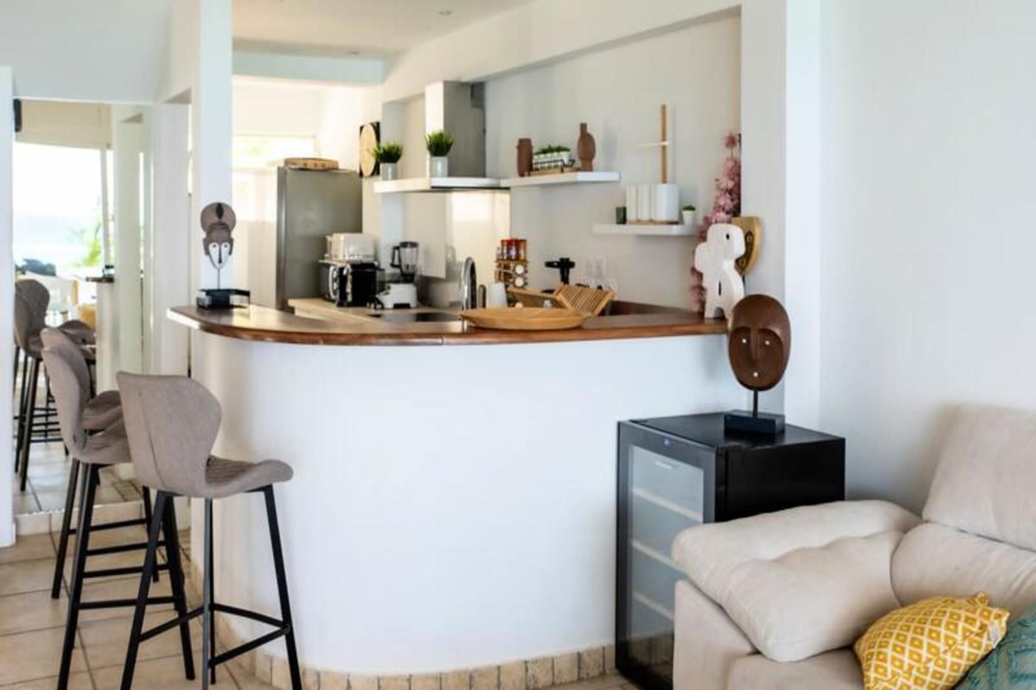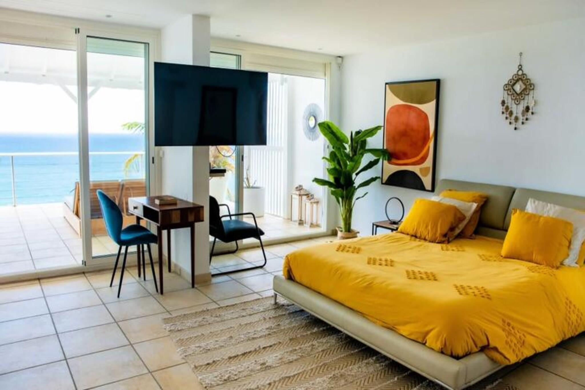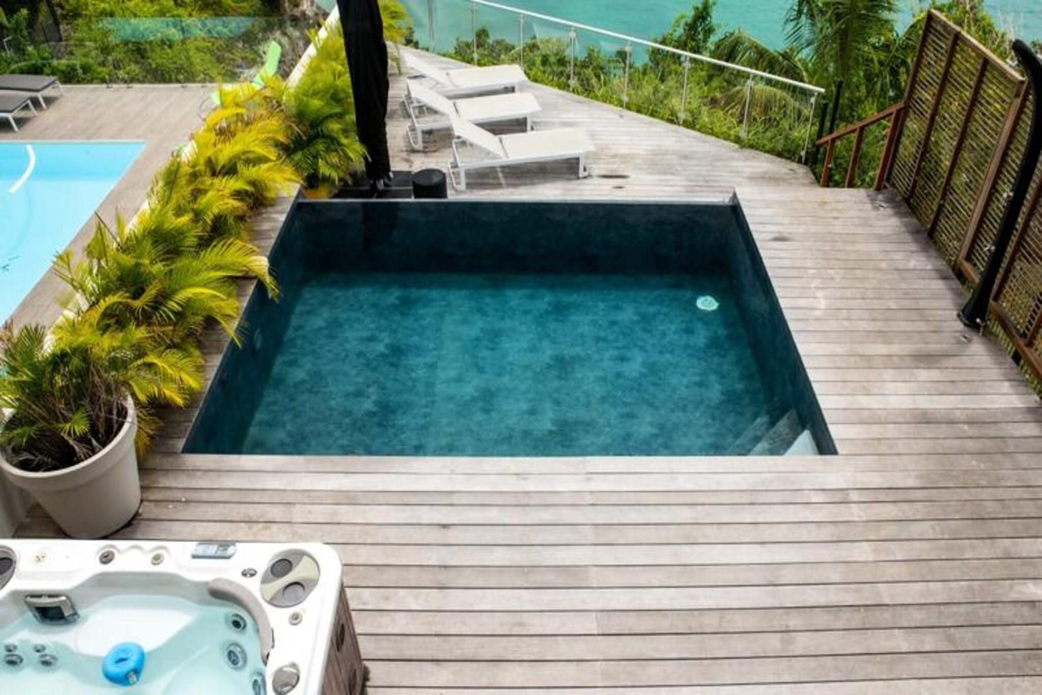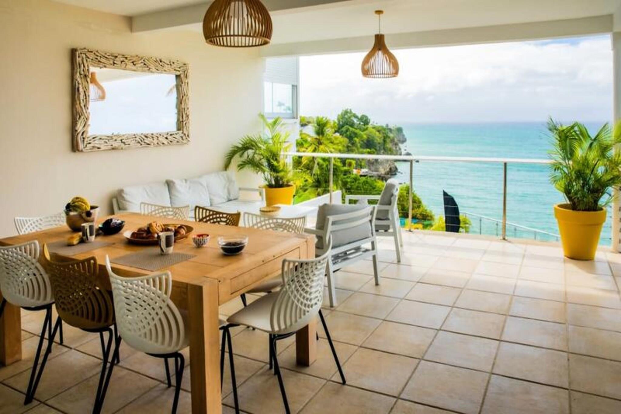 Denne luksuriøse villaen tilbyr panoramautsikt over sjøen. Den har fire soverom med klimaanlegg: en hovedsuite med king-size-seng og privat terrasse, et soverom med to enkeltsenger og to andre soverom med dobbeltsenger. Villaen godtar ikke kjæledyr. Det inkluderer et svømmebasseng, et boblebad og en opphengt solseng. Et eksternt overvåkingssystem er installert for sikkerhet. Ligger på høyden av Dampierre, i Le Gosier, tilbyr denne utleien en ideell beliggenhet for å utforske Guadeloupe, mellom Basse-Terre og Grande-Terre. I nærheten finner du landsbyen Gosier med sine fasiliteter (supermarkeder, restauranter, barer, Datcha-stranden), Gosier-holmen, Fort Fleur d'épine, Bas du Fort Marina (restauranter og butikker) og kasinoet. De vakreste strendene ligger 10 minutter unna med bil. Villaen er fordelt på tre plan. Den har et fullt utstyrt kjøkken, en utendørs spisestue under glass, et bad og et dusjrom. Sengetøy og håndklær er inkludert. Hotellrengjøring utføres før ankomst og etter avreise. Det er planlagt et vannreservesystem. En gassgrill er tilgjengelig. Fester er ikke tillatt. Et depositum på EURO3500 kreves.