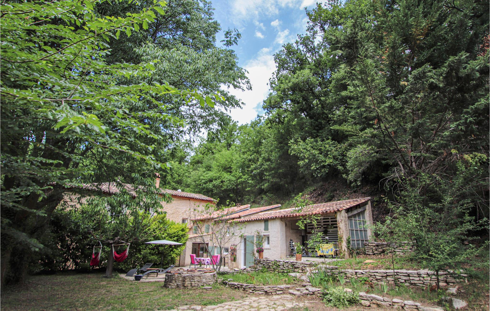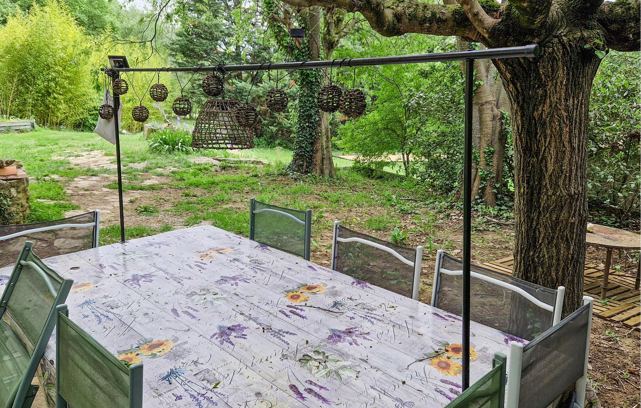 Feriehuset ligger på en romslig, frodig skogkledd eiendom til den gamle Anet-møllen, i en 2,5 hektar stor naturpark. Det sjarmerende huset med neo-provençalsk karakter har plass til en gruppe venner eller flere familier. På regnfulle dager tilbys underholdning med Netflix og internett.