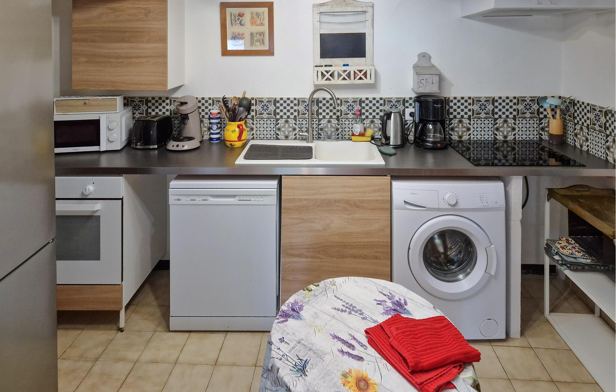 Utenfor har du to nydelige halvskyggefulle terrasser med et pent privat svømmebasseng. Se frem til å spise måltidene utendørs på varme sommerkvelder, sole deg eller bruke de forskjellige spillene og sportsutstyret.