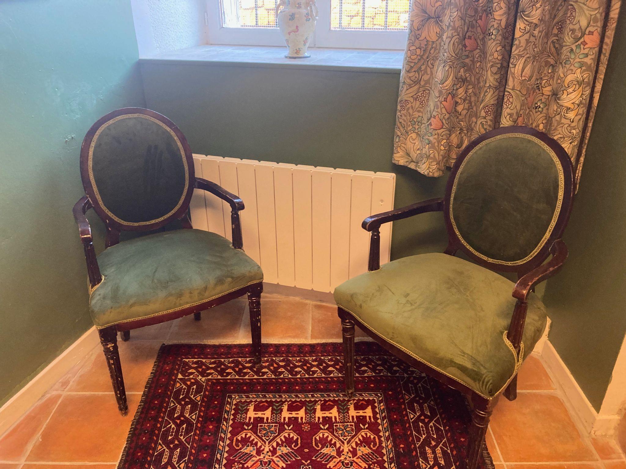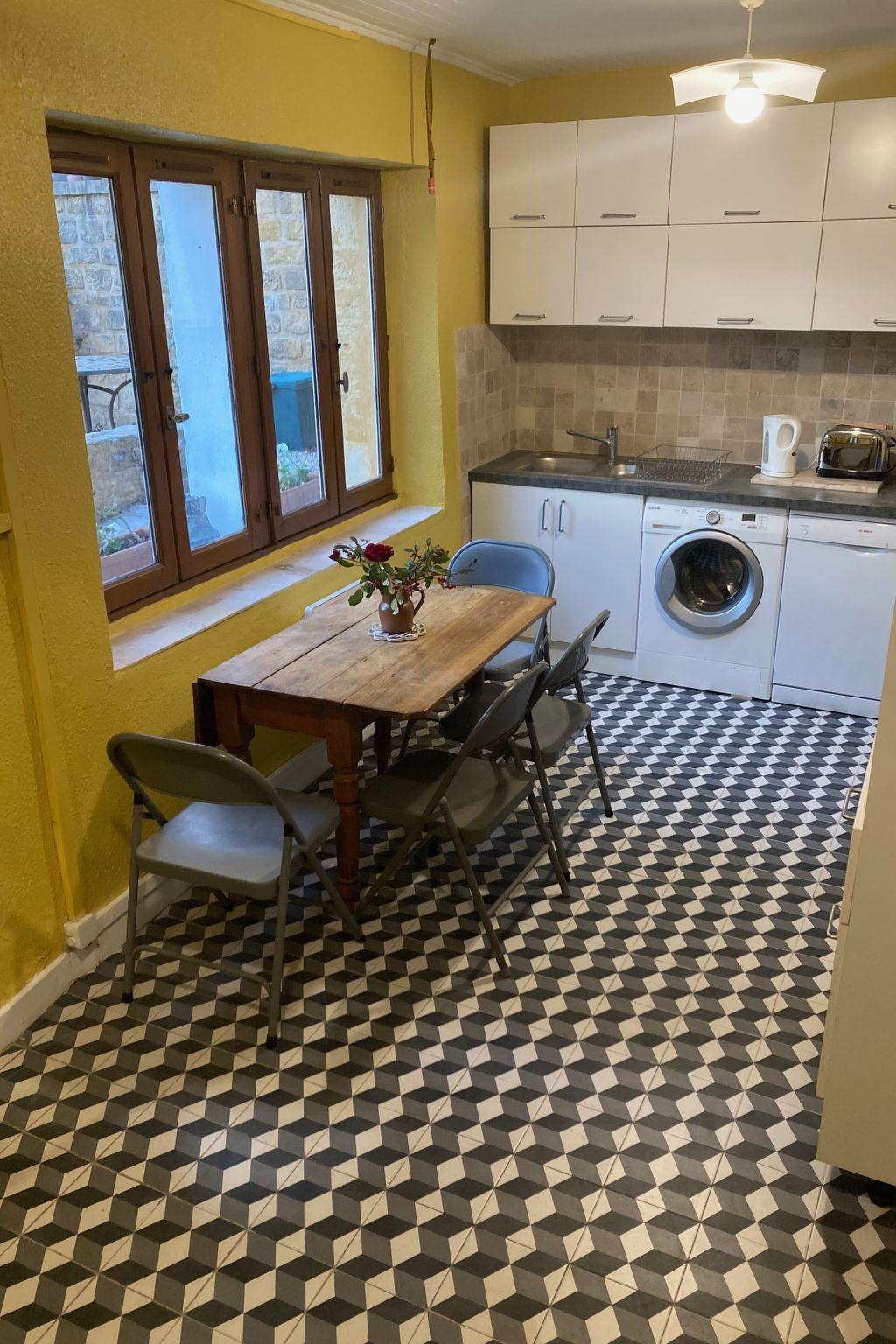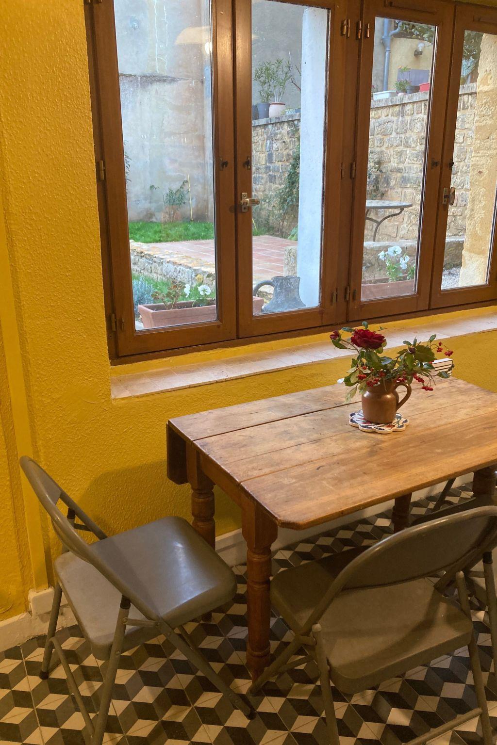 In renovating the house we have taken care to preserve original features and its historic character whilst also providing modern comforts. The furnishings and paintings also reflect this blend of antique and modern. There is satellite TV and wi-fi in the Gite. The modern kitchen looks out onto the garden and terrace.