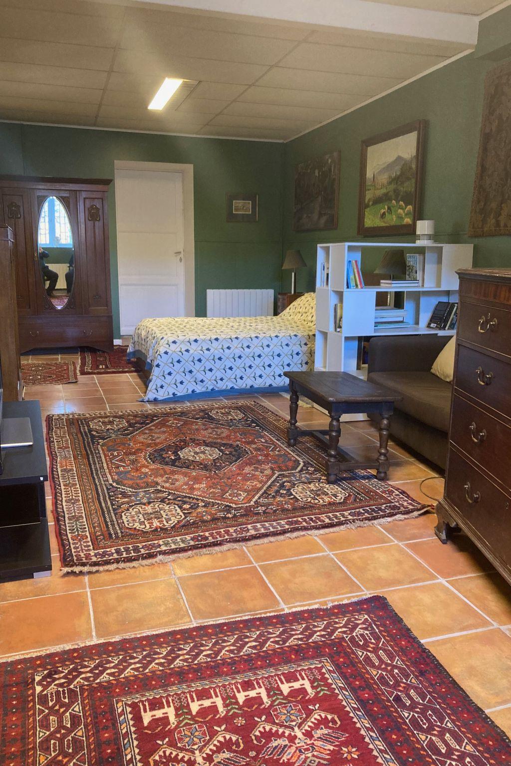 Parts of the house date from the 12th century and are built of honeyed local stone. The Gite has tiled floors with rugs, wall hangings and paintings.