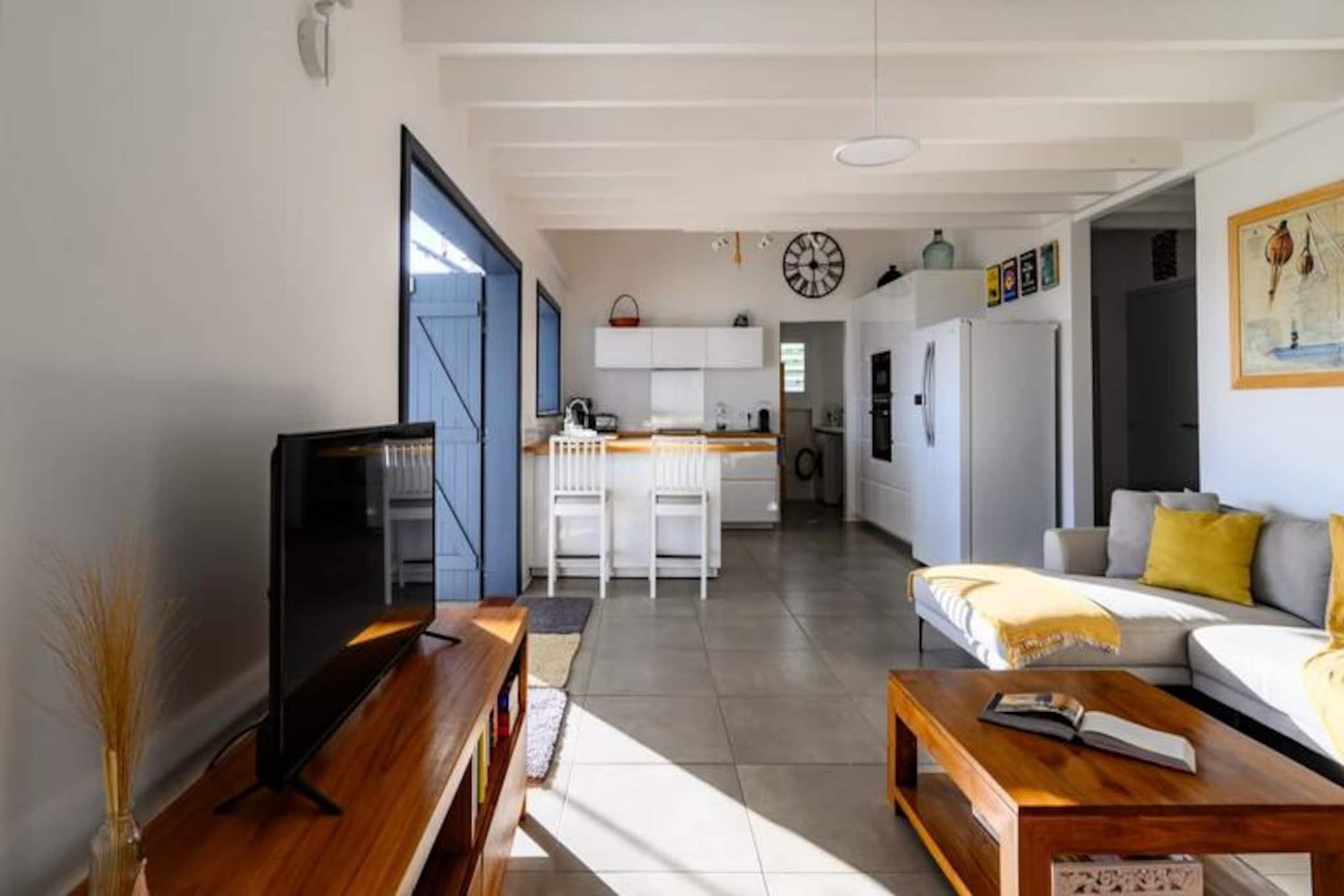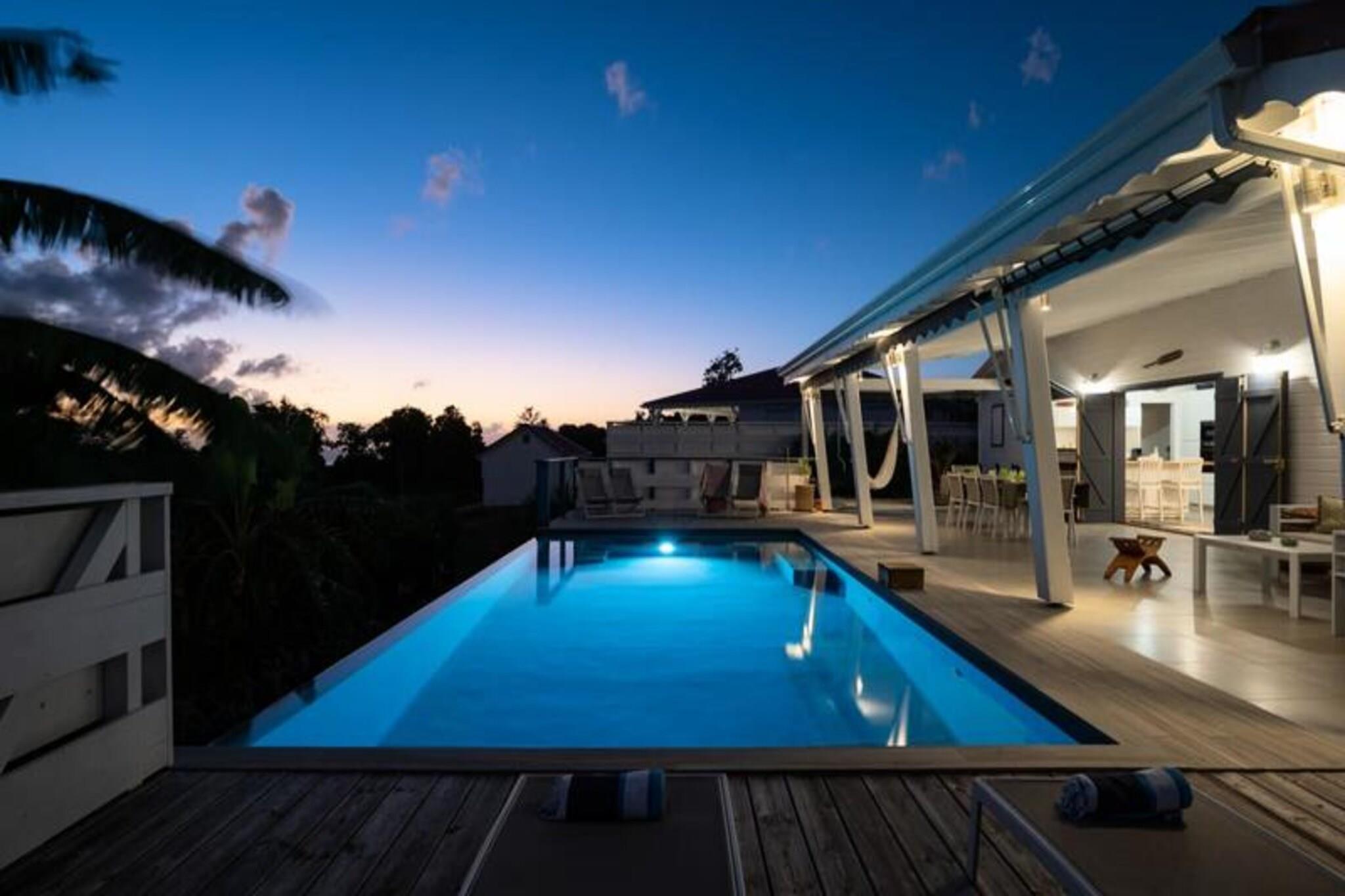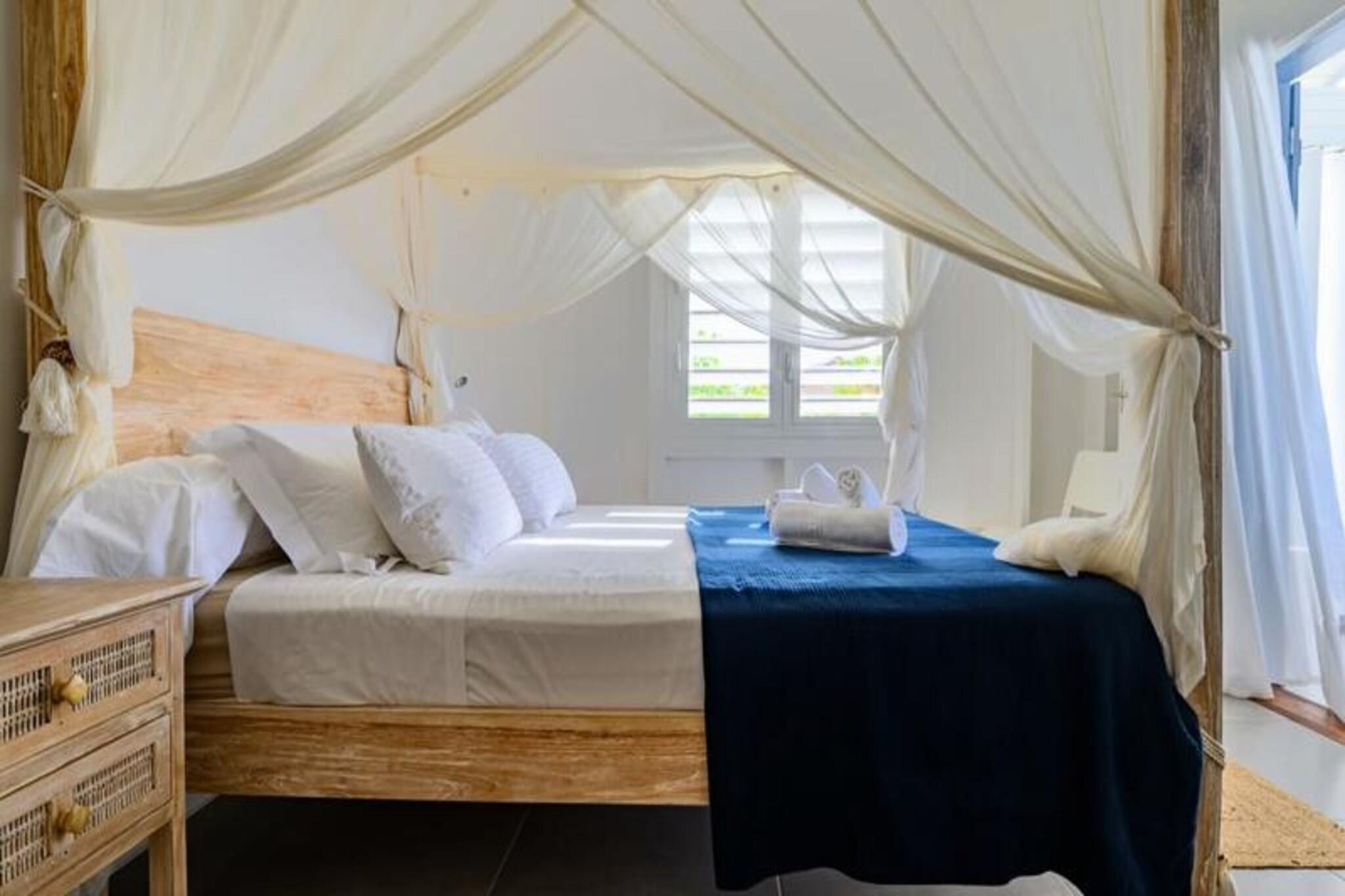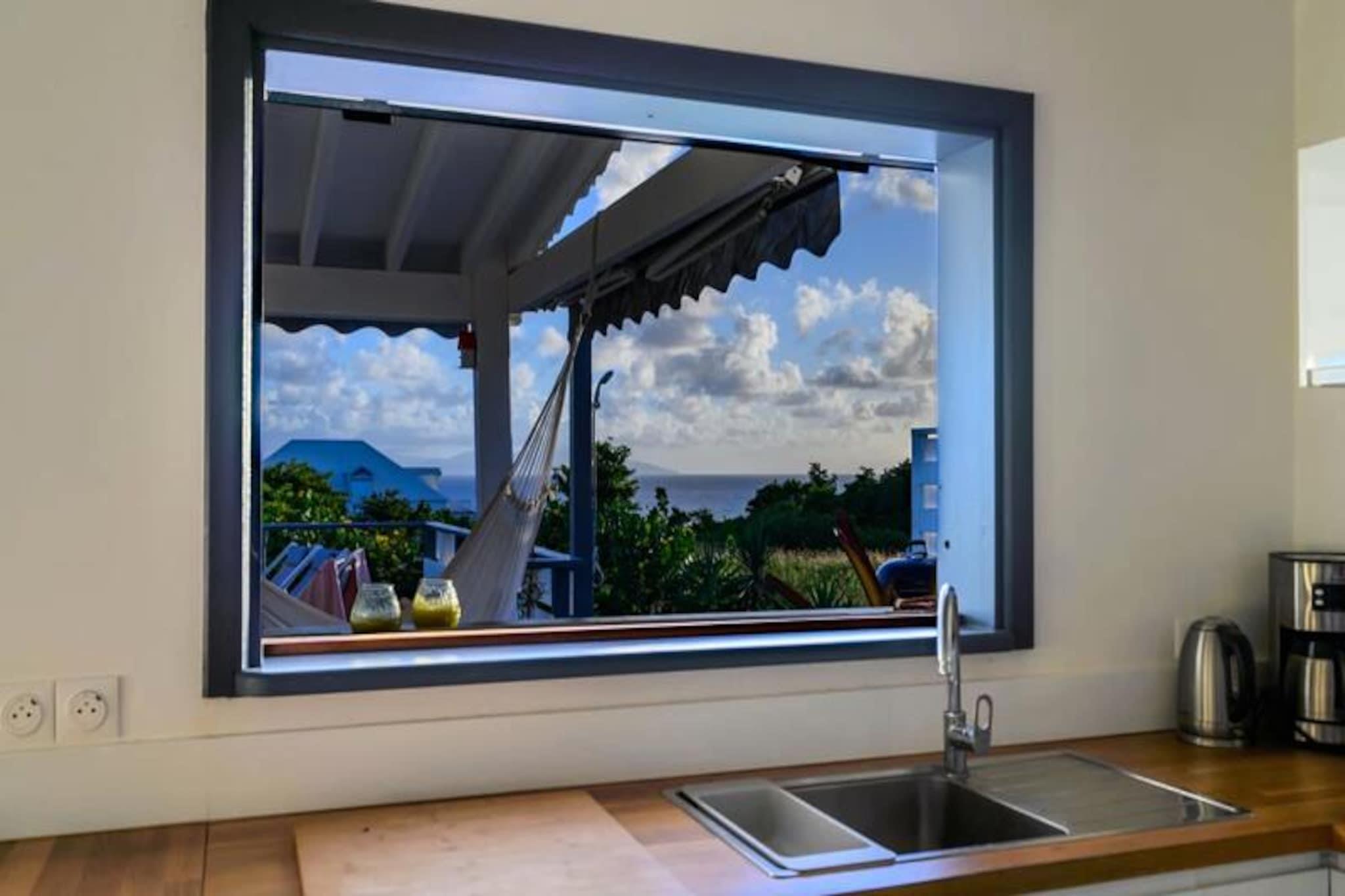 I hjertet av den rolige og uberørte øya Marie-Galante tilbyr denne elegante villaen en rolig tilflukt med fantastisk havutsikt og en frodig tropisk hage. Tenk deg å våkne opp til den milde raslingen av bananblader og den myke karibiske brisen, bare minutter fra uberørte hvite sandstrender og det turkise vannet i Atlanterhavet. Dette moderne tilfluktsstedet er det perfekte tilfluktsstedet for familier eller grupper på opptil ni gjester som søker avslapning og eventyr under Guadeloupesolen. Villaen er på 160 m² og har fire soverom med klimaanlegg, hvert med eget bad, noe som sikrer privatliv og komfort for alle. Soverommet i andre etasje gir et ekstra preg av tilbaketrukkethet, mens første etasje kan skryte av en lys, åpen stue med et moderne, fullt utstyrt kjøkken og en romslig stue. Gå ut på den innbydende terrassen, hvor et stort spisebord og en koselig sittegruppe venter på utendørs måltider og cocktailer i solnedgangen. Det private bassenget, omgitt av livlig tropisk vegetasjon, er midtpunktet i hagen og tilbyr en forfriskende oase med fantastisk havutsikt. Villaen ligger i Grand-Bourg, bare en kort kjøretur fra lokale markeder, kreolske restauranter og øyas mest berømte strender, inkludert Anse Canot og La Feuillère, et kitesurfingparadis. Utforsk nærliggende destillerier, gå tur gjennom sukkerrøråkrer, eller nyt levende musikk på stranden. Med en dedikert concierge som kan hjelpe med utflukter, leie av kjøretøy og personlige anbefalinger, er hver detalj skreddersydd for å skape et uforglemmelig opphold. Enten du slapper av ved bassenget, nyter lokale delikatesser eller oppdager øyas naturlige skjønnhet, lover denne villaen en karibisk ferie fylt med ro, komfort og oppdagelse.