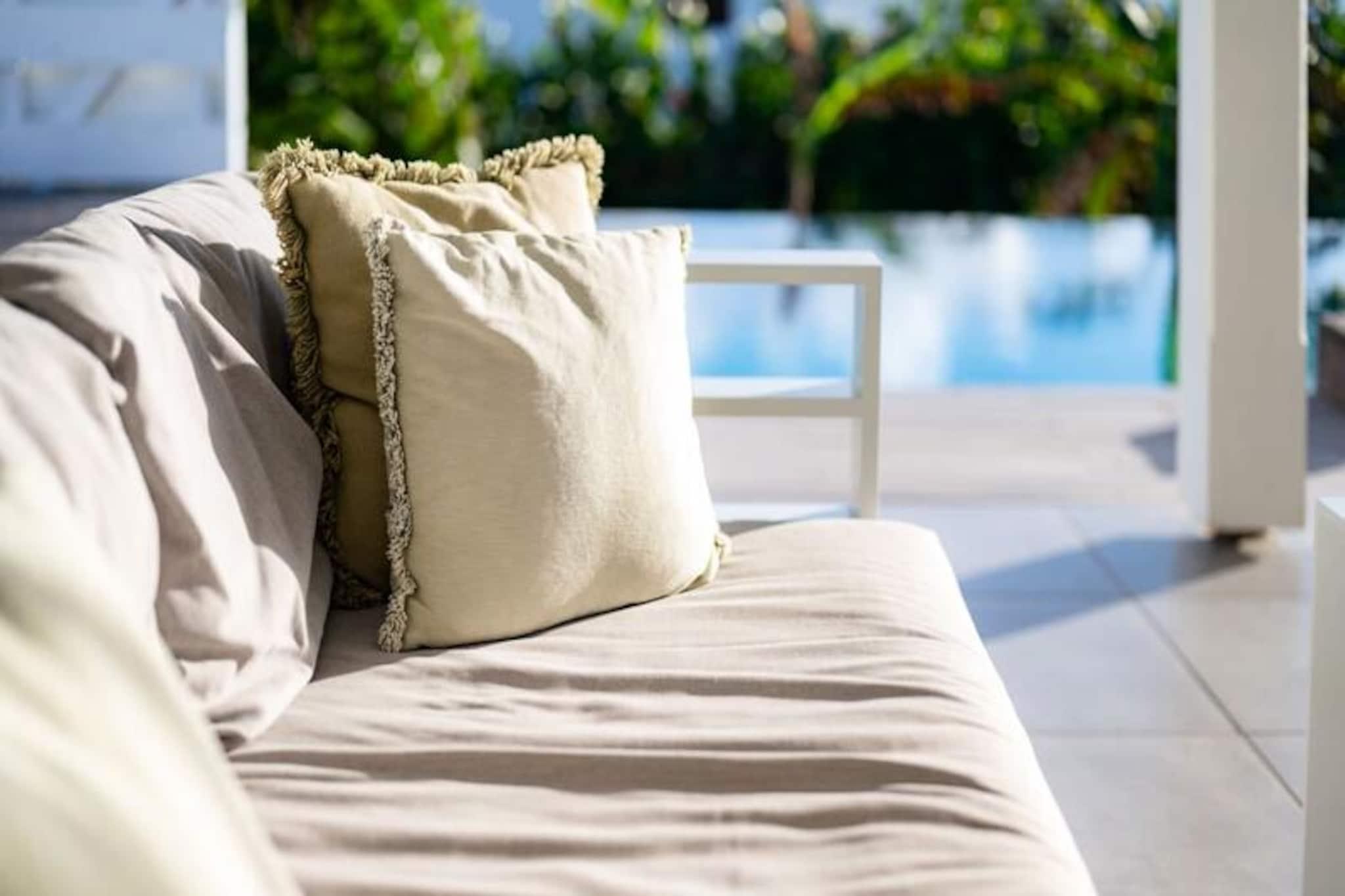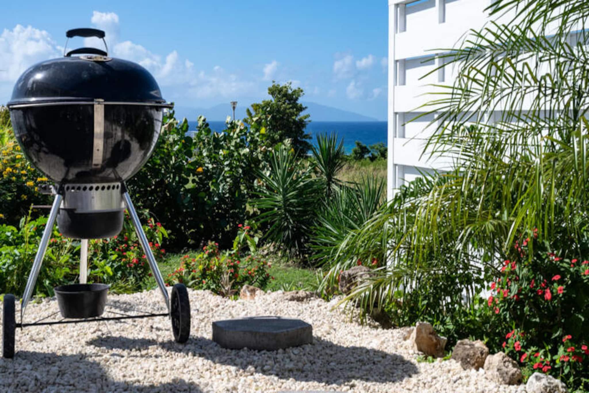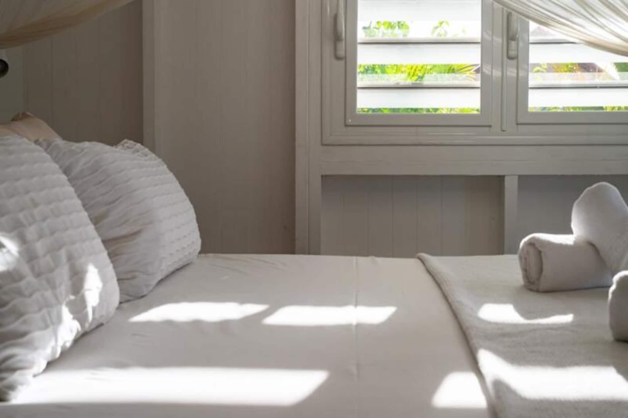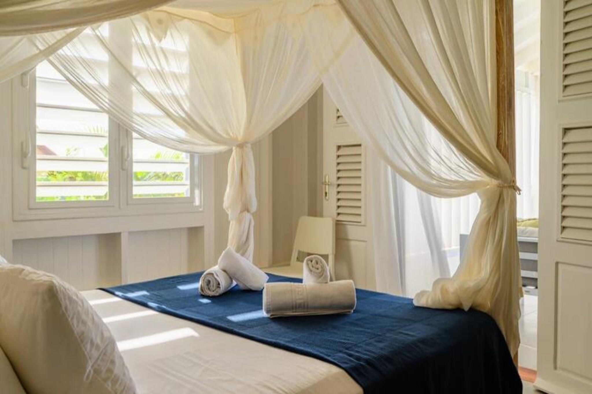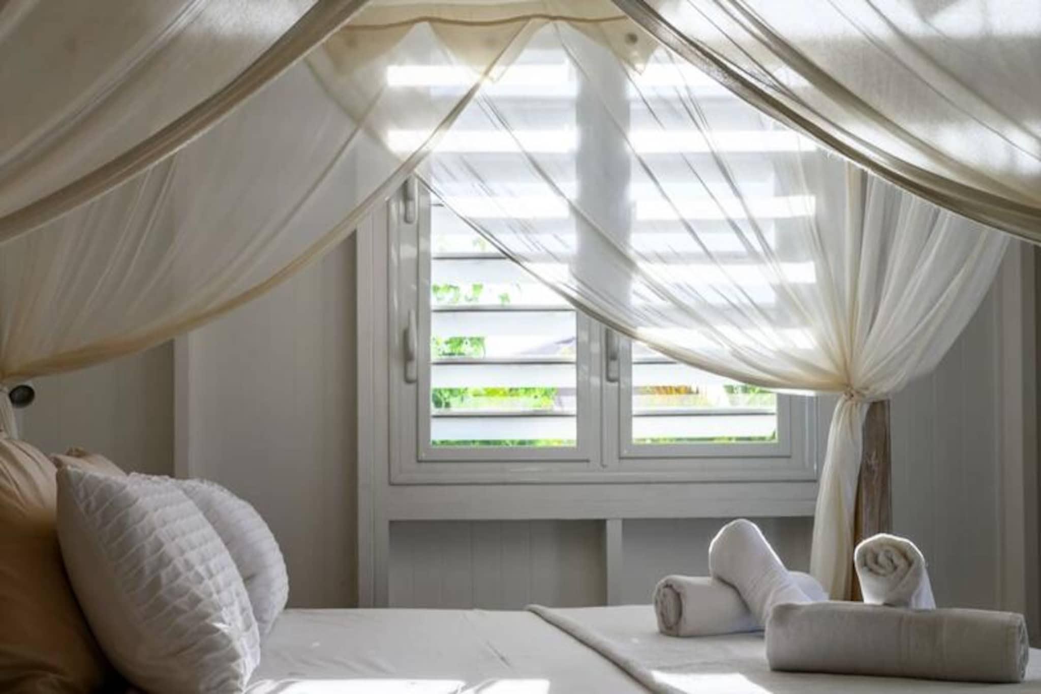 I hjertet av den rolige og uberørte øya Marie-Galante tilbyr denne elegante villaen en rolig tilflukt med fantastisk havutsikt og en frodig tropisk hage. Tenk deg å våkne opp til den milde raslingen av bananblader og den myke karibiske brisen, bare minutter fra uberørte hvite sandstrender og det turkise vannet i Atlanterhavet. Dette moderne tilfluktsstedet er det perfekte tilfluktsstedet for familier eller grupper på opptil ni gjester som søker avslapning og eventyr under Guadeloupesolen. Villaen er på 160 m² og har fire soverom med klimaanlegg, hvert med eget bad, noe som sikrer privatliv og komfort for alle. Soverommet i andre etasje gir et ekstra preg av tilbaketrukkethet, mens første etasje kan skryte av en lys, åpen stue med et moderne, fullt utstyrt kjøkken og en romslig stue. Gå ut på den innbydende terrassen, hvor et stort spisebord og en koselig sittegruppe venter på utendørs måltider og cocktailer i solnedgangen. Det private bassenget, omgitt av livlig tropisk vegetasjon, er midtpunktet i hagen og tilbyr en forfriskende oase med fantastisk havutsikt. Villaen ligger i Grand-Bourg, bare en kort kjøretur fra lokale markeder, kreolske restauranter og øyas mest berømte strender, inkludert Anse Canot og La Feuillère, et kitesurfingparadis. Utforsk nærliggende destillerier, gå tur gjennom sukkerrøråkrer, eller nyt levende musikk på stranden. Med en dedikert concierge som kan hjelpe med utflukter, leie av kjøretøy og personlige anbefalinger, er hver detalj skreddersydd for å skape et uforglemmelig opphold. Enten du slapper av ved bassenget, nyter lokale delikatesser eller oppdager øyas naturlige skjønnhet, lover denne villaen en karibisk ferie fylt med ro, komfort og oppdagelse.