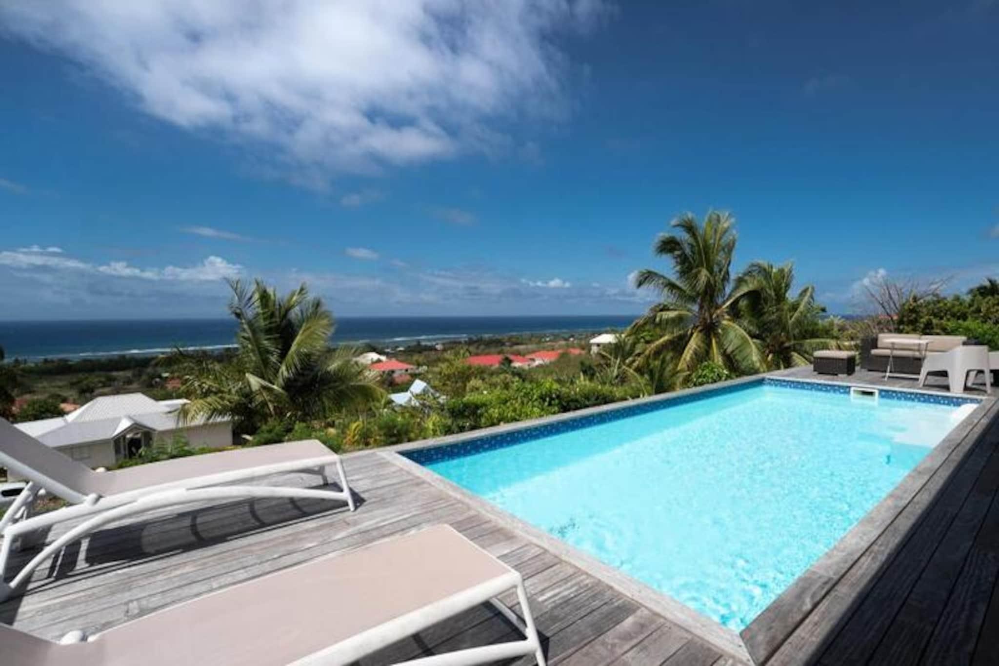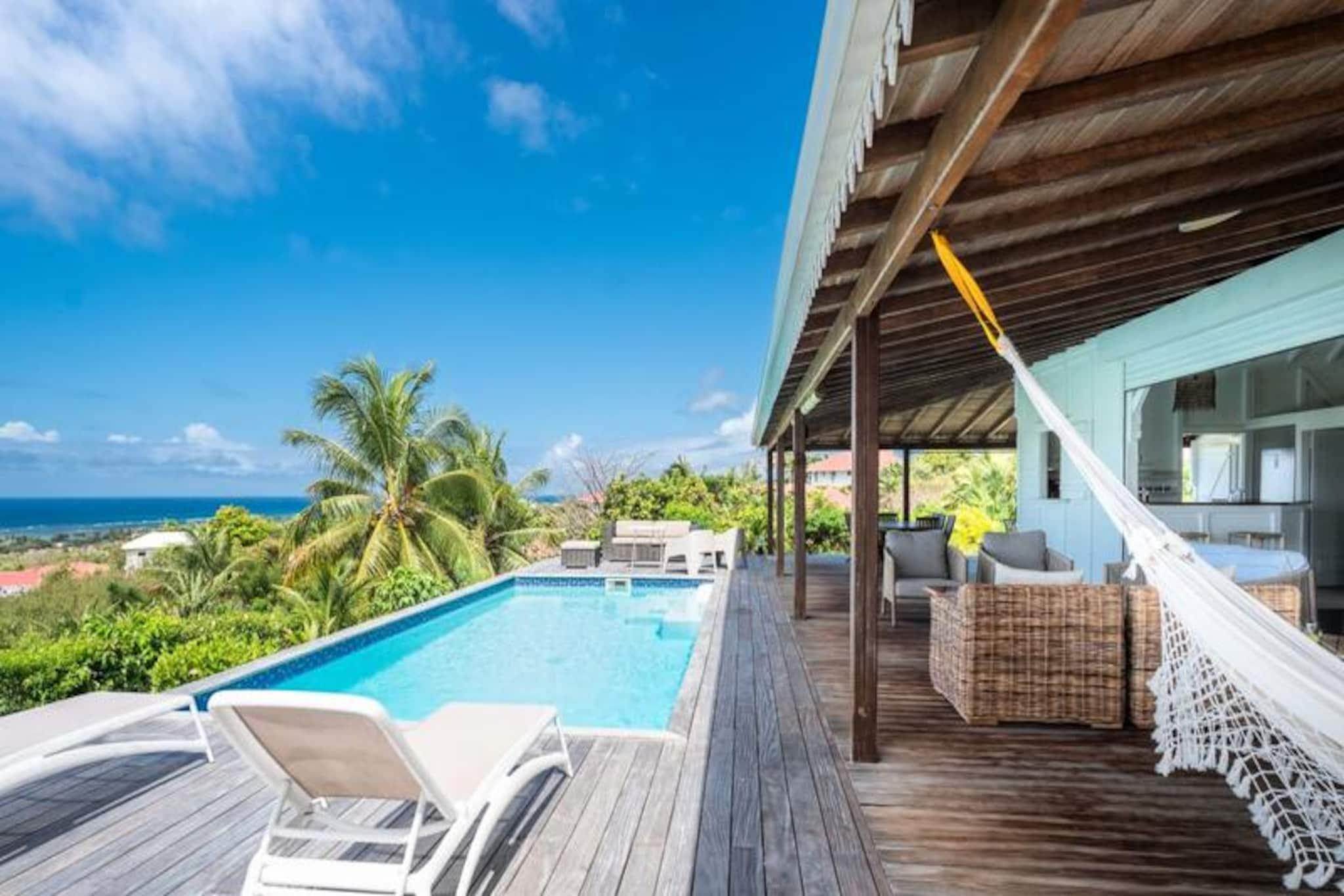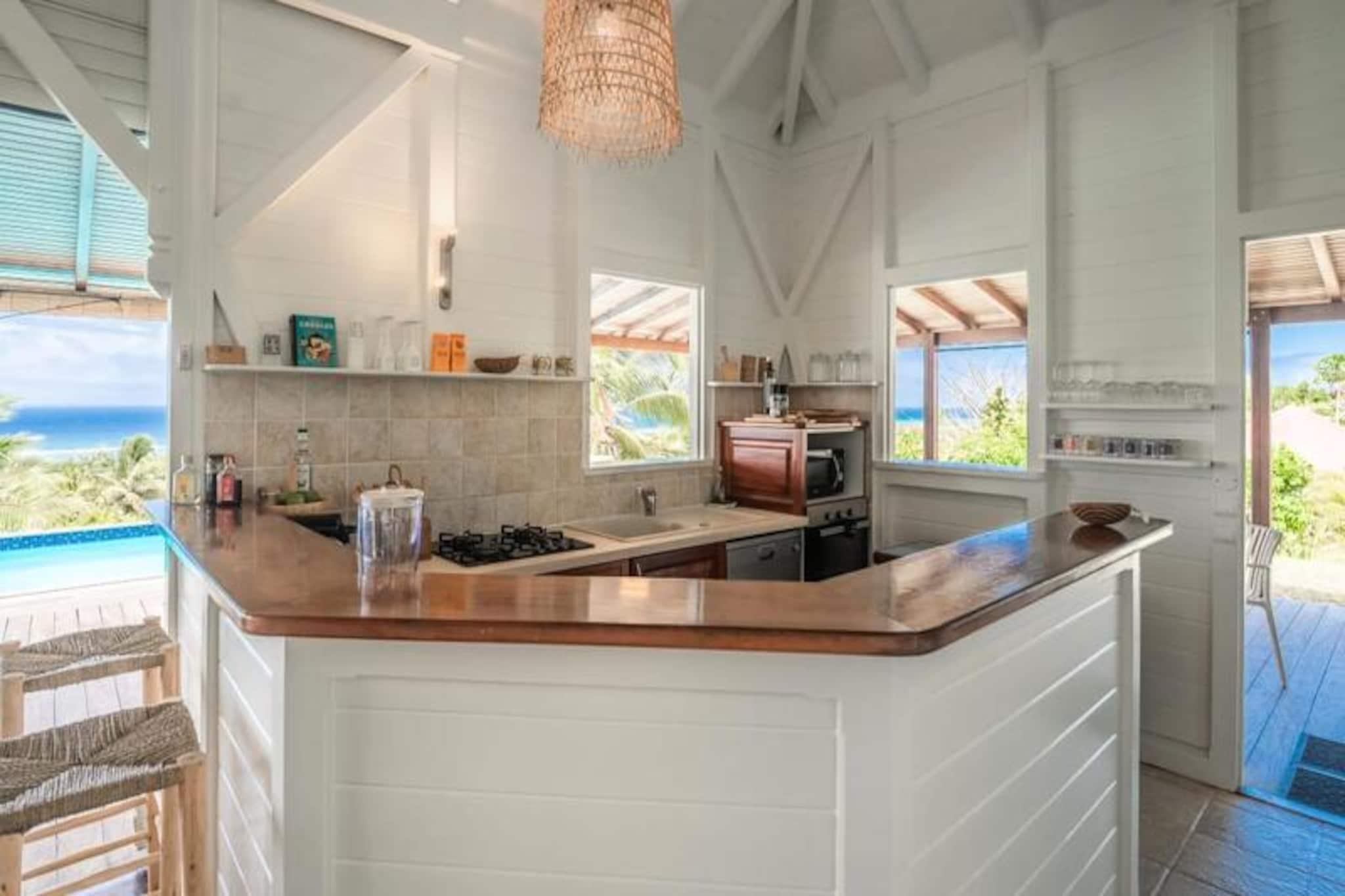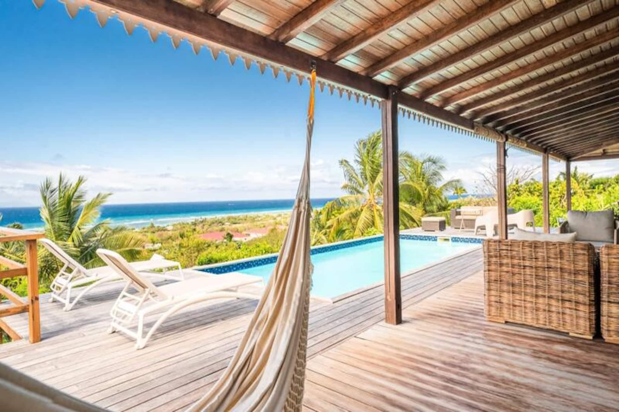 Villa Capi ligger på de fredelige høydene i Grand-Bourg, og tilbyr et luksuriøst tilfluktssted der moderne komfort møter den naturlige skjønnheten til Marie-Galante. Tenk deg å våkne opp til den milde havbrisen og panoramautsikt over det turkise vannet og naboøyene. Denne villaen er et fristed for ro, perfekt for de som søker en fredelig flukt under den karibiske solen. Villaen har tre soverom med klimaanlegg, hvert designet for ultimat avslapning. Hovedsoverommet har en myk 180 cm seng, mens de to andre tilbyr komfortable 160 cm senger. Hvert soverom har eget bad, noe som sikrer privatliv og komfort for opptil seks gjester. Den lyse og luftige stuen kobles sømløst til et fullt utstyrt kjøkken, som åpner ut mot en romslig terrasse som inviterer deg til å spise utendørs eller bare slappe av mens du nyter den fantastiske utsikten. Midtpunktet på denne eiendommen er det private saltvannsbassenget, perfekt for forfriskende dukkerter eller avslapning med dine kjære. Villa Capi ligger bare fem minutter fra den sjarmerende byen Grand-Bourg, og gir enkel tilgang til lokale fasiliteter som supermarkeder, bakerier og livlige markeder. De uberørte strendene La Feuillère og Anse Canot ligger i nærheten, og tilbyr krystallklart vann og myk hvit sand for bading eller soling. For naturelskere gir øyas turstier og pittoreske sukkerrøråkre uendelige muligheter for utforskning. Enten du nyter øyas autentiske sjarm, unner deg eksklusive concierge-tjenester eller bare slapper av ved bassenget med en utsikt som føles som en drøm, lover Villa Capi en uforglemmelig karibisk ferie. La magien i Guadeloupe fengsle deg.