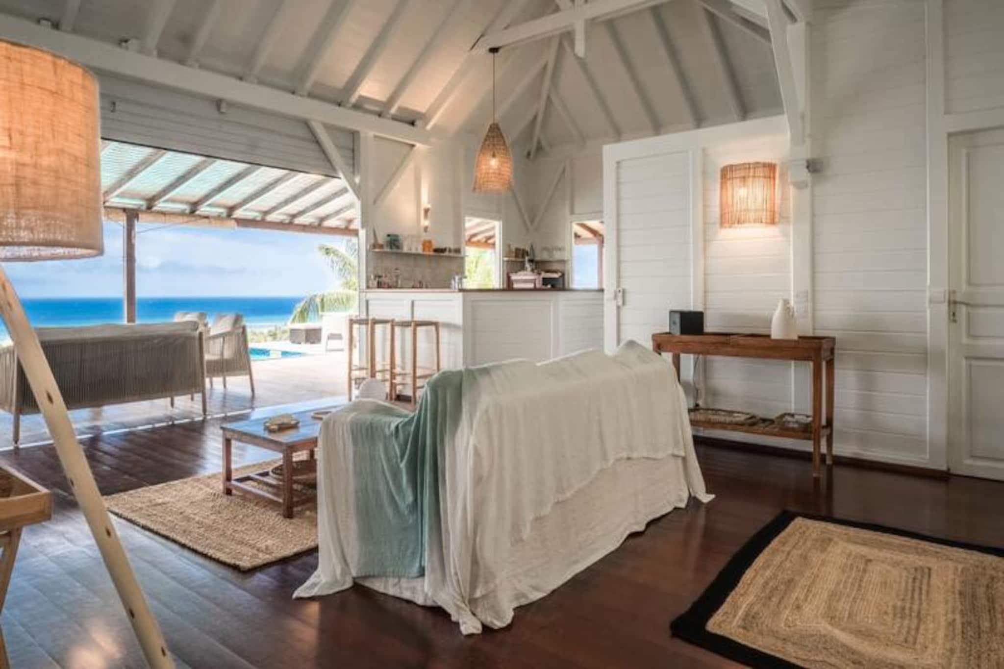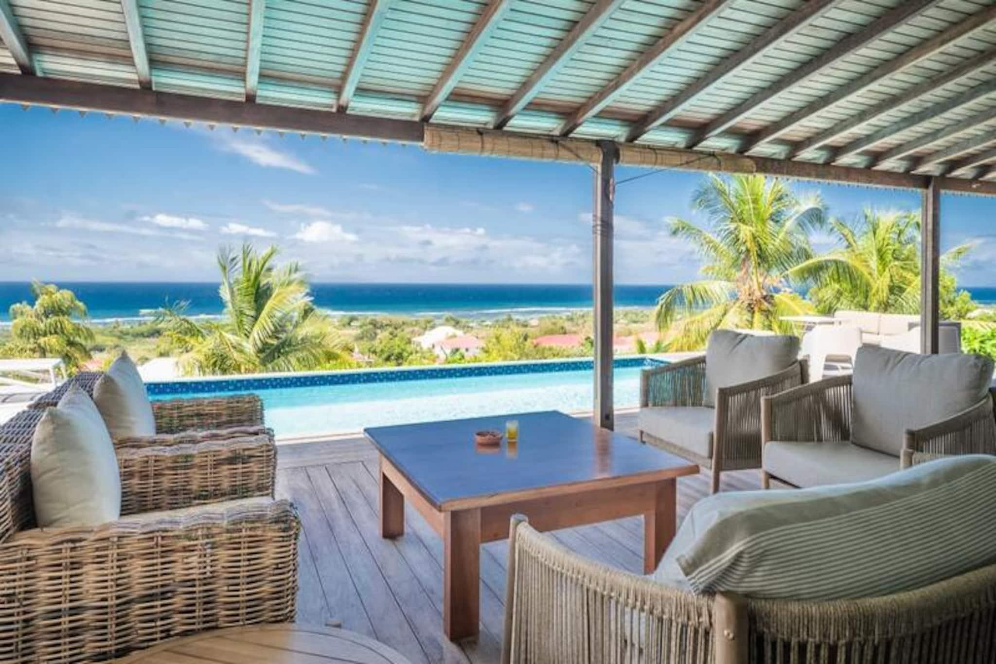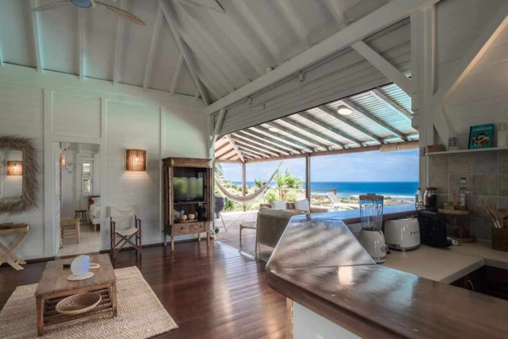 Villa Capi ligger på de fredelige høydene i Grand-Bourg, og tilbyr et luksuriøst tilfluktssted der moderne komfort møter den naturlige skjønnheten til Marie-Galante. Tenk deg å våkne opp til den milde havbrisen og panoramautsikt over det turkise vannet og naboøyene. Denne villaen er et fristed for ro, perfekt for de som søker en fredelig flukt under den karibiske solen. Villaen har tre soverom med klimaanlegg, hvert designet for ultimat avslapning. Hovedsoverommet har en myk 180 cm seng, mens de to andre tilbyr komfortable 160 cm senger. Hvert soverom har eget bad, noe som sikrer privatliv og komfort for opptil seks gjester. Den lyse og luftige stuen kobles sømløst til et fullt utstyrt kjøkken, som åpner ut mot en romslig terrasse som inviterer deg til å spise utendørs eller bare slappe av mens du nyter den fantastiske utsikten. Midtpunktet på denne eiendommen er det private saltvannsbassenget, perfekt for forfriskende dukkerter eller avslapning med dine kjære. Villa Capi ligger bare fem minutter fra den sjarmerende byen Grand-Bourg, og gir enkel tilgang til lokale fasiliteter som supermarkeder, bakerier og livlige markeder. De uberørte strendene La Feuillère og Anse Canot ligger i nærheten, og tilbyr krystallklart vann og myk hvit sand for bading eller soling. For naturelskere gir øyas turstier og pittoreske sukkerrøråkre uendelige muligheter for utforskning. Enten du nyter øyas autentiske sjarm, unner deg eksklusive concierge-tjenester eller bare slapper av ved bassenget med en utsikt som føles som en drøm, lover Villa Capi en uforglemmelig karibisk ferie. La magien i Guadeloupe fengsle deg.