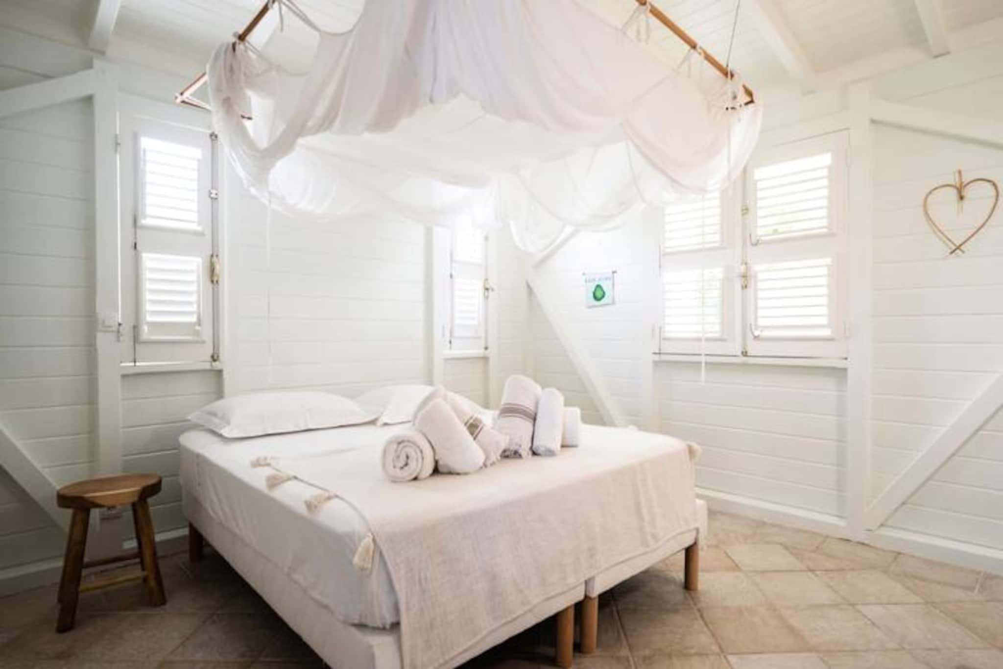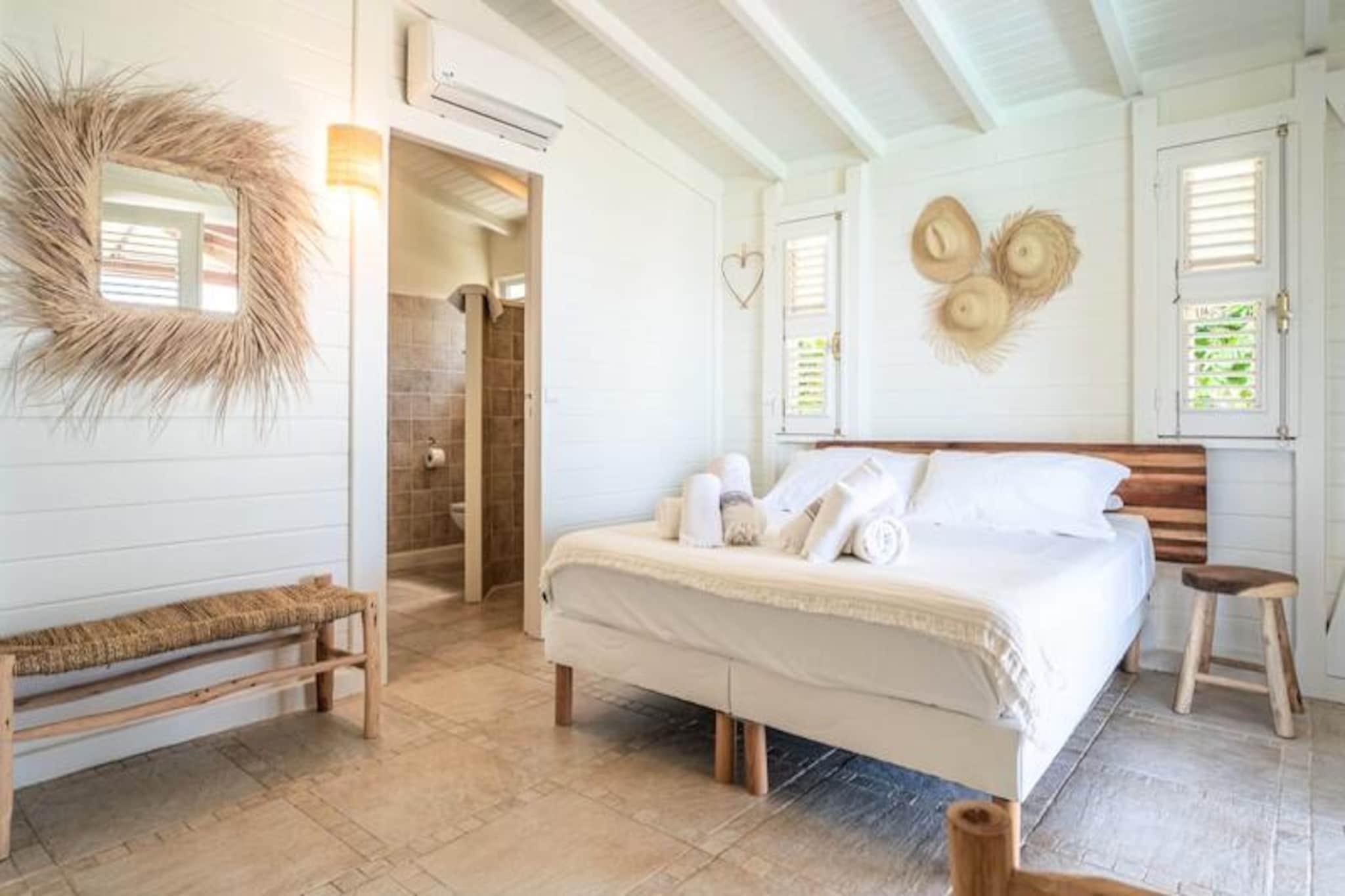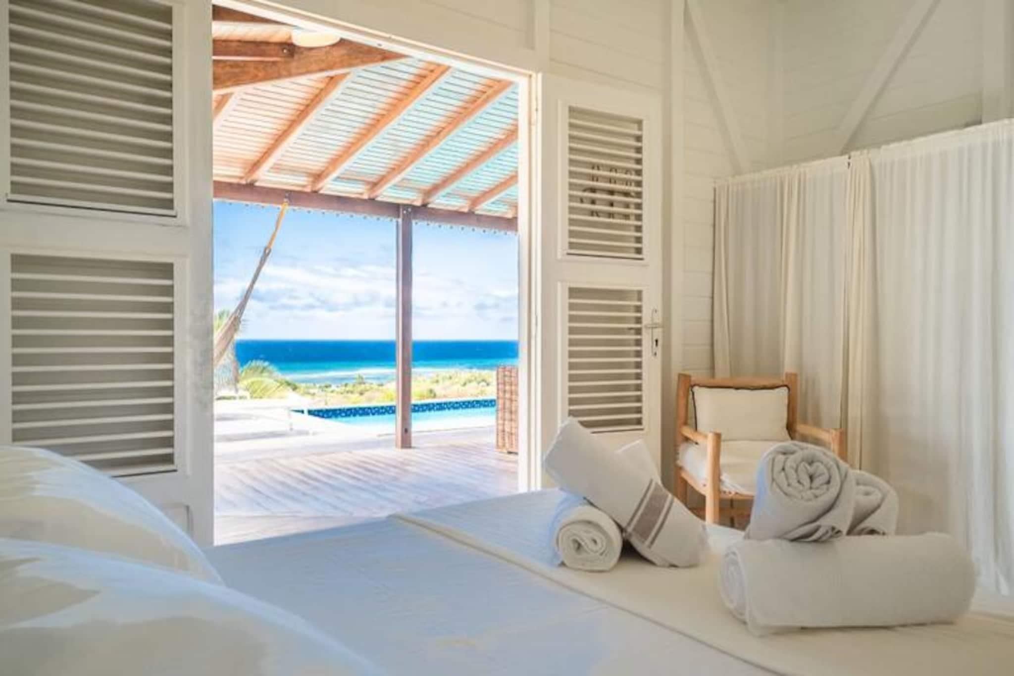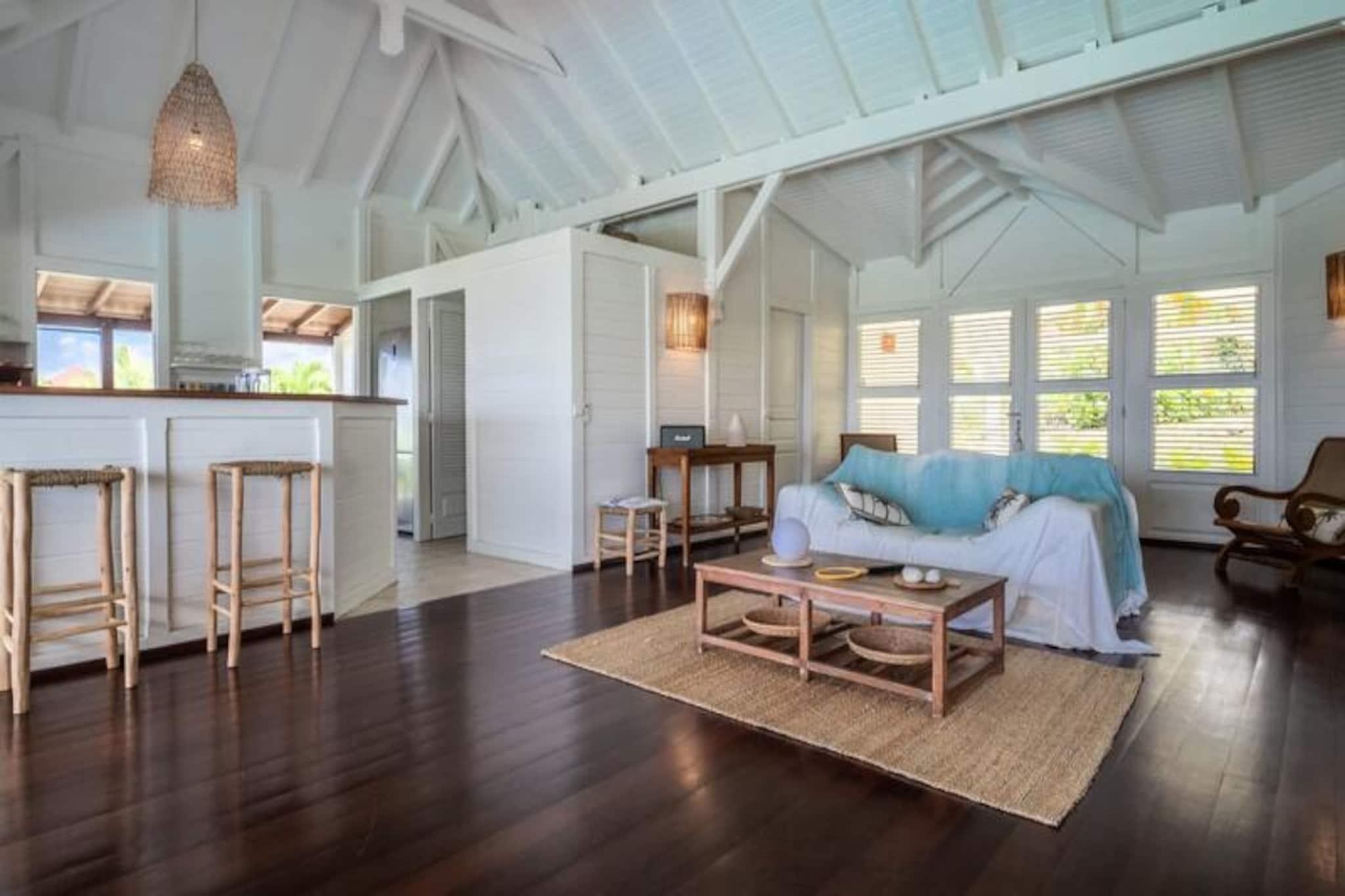 Villa Capi ligger på de fredelige høydene i Grand-Bourg, og tilbyr et luksuriøst tilfluktssted der moderne komfort møter den naturlige skjønnheten til Marie-Galante. Tenk deg å våkne opp til den milde havbrisen og panoramautsikt over det turkise vannet og naboøyene. Denne villaen er et fristed for ro, perfekt for de som søker en fredelig flukt under den karibiske solen. Villaen har tre soverom med klimaanlegg, hvert designet for ultimat avslapning. Hovedsoverommet har en myk 180 cm seng, mens de to andre tilbyr komfortable 160 cm senger. Hvert soverom har eget bad, noe som sikrer privatliv og komfort for opptil seks gjester. Den lyse og luftige stuen kobles sømløst til et fullt utstyrt kjøkken, som åpner ut mot en romslig terrasse som inviterer deg til å spise utendørs eller bare slappe av mens du nyter den fantastiske utsikten. Midtpunktet på denne eiendommen er det private saltvannsbassenget, perfekt for forfriskende dukkerter eller avslapning med dine kjære. Villa Capi ligger bare fem minutter fra den sjarmerende byen Grand-Bourg, og gir enkel tilgang til lokale fasiliteter som supermarkeder, bakerier og livlige markeder. De uberørte strendene La Feuillère og Anse Canot ligger i nærheten, og tilbyr krystallklart vann og myk hvit sand for bading eller soling. For naturelskere gir øyas turstier og pittoreske sukkerrøråkre uendelige muligheter for utforskning. Enten du nyter øyas autentiske sjarm, unner deg eksklusive concierge-tjenester eller bare slapper av ved bassenget med en utsikt som føles som en drøm, lover Villa Capi en uforglemmelig karibisk ferie. La magien i Guadeloupe fengsle deg.