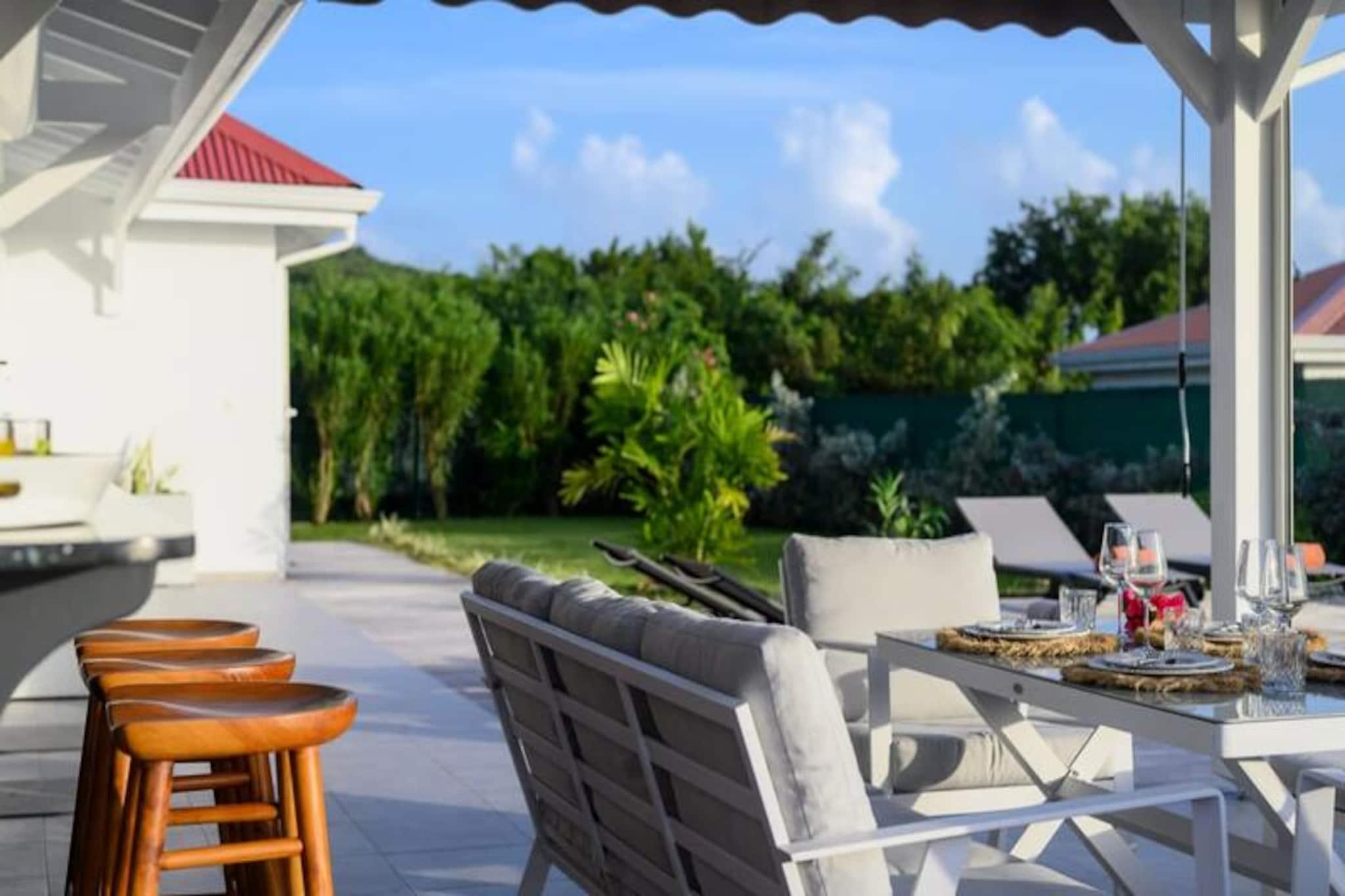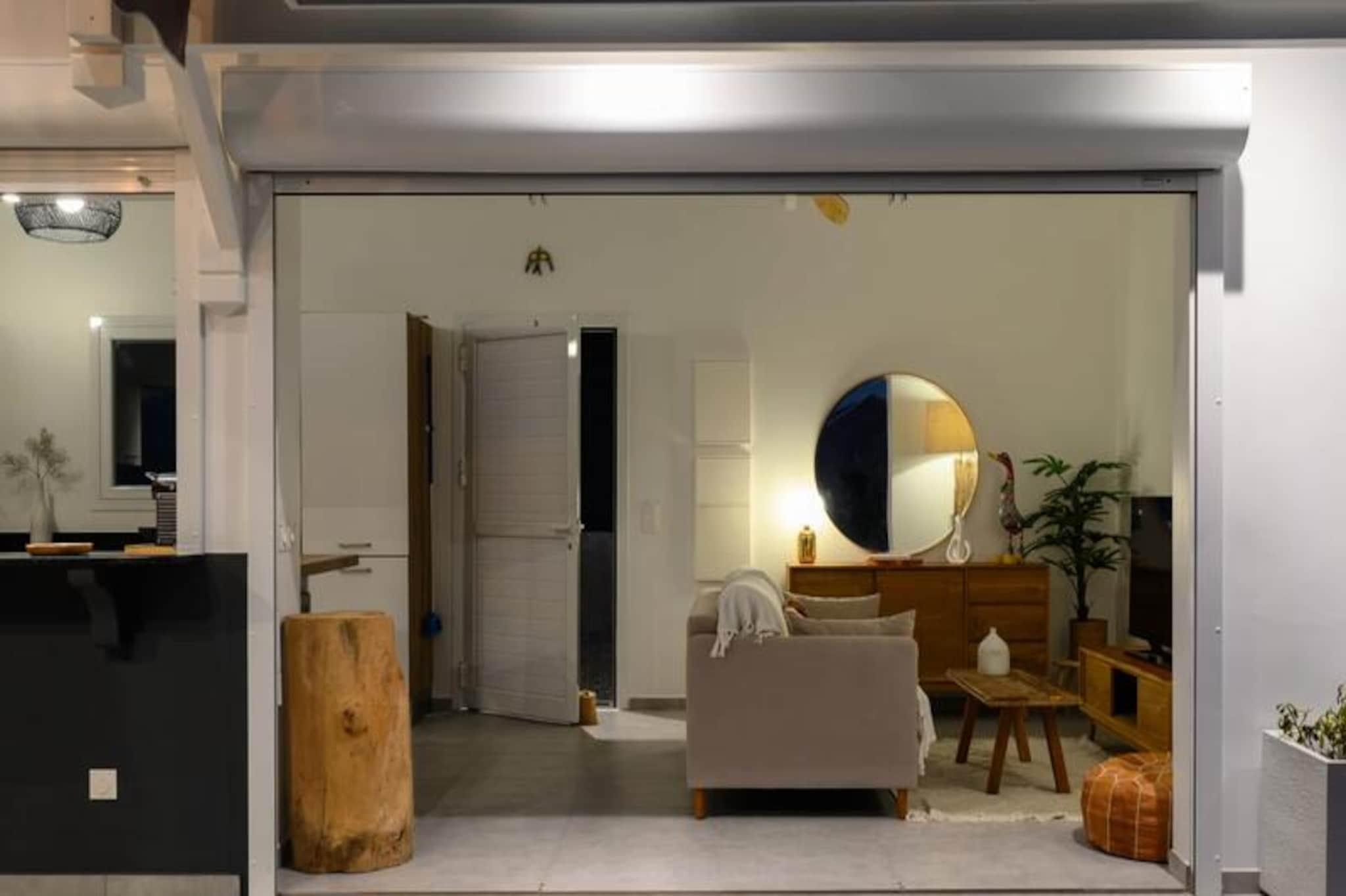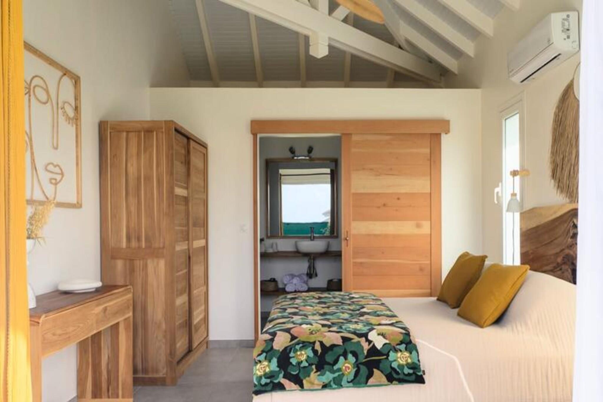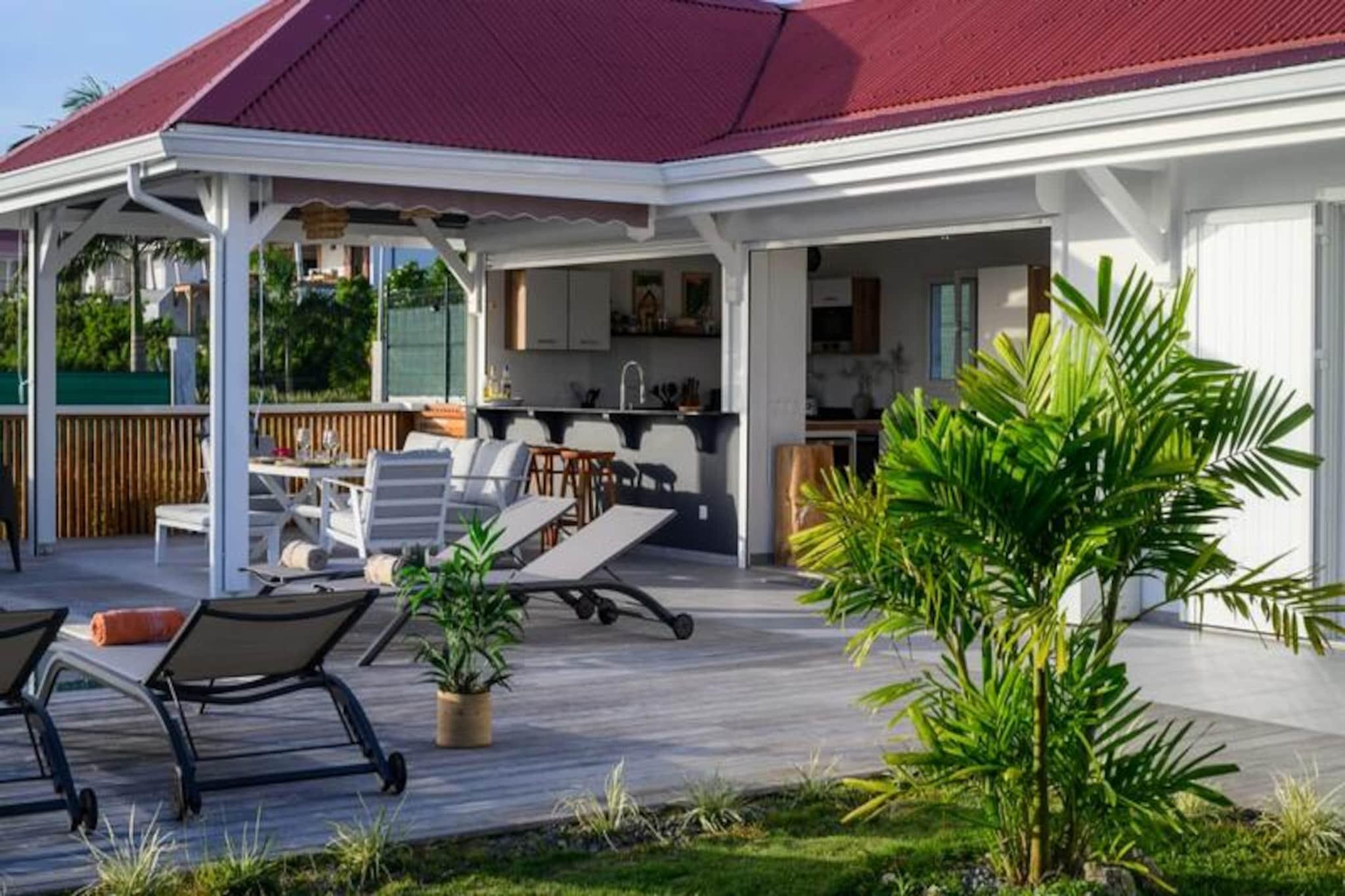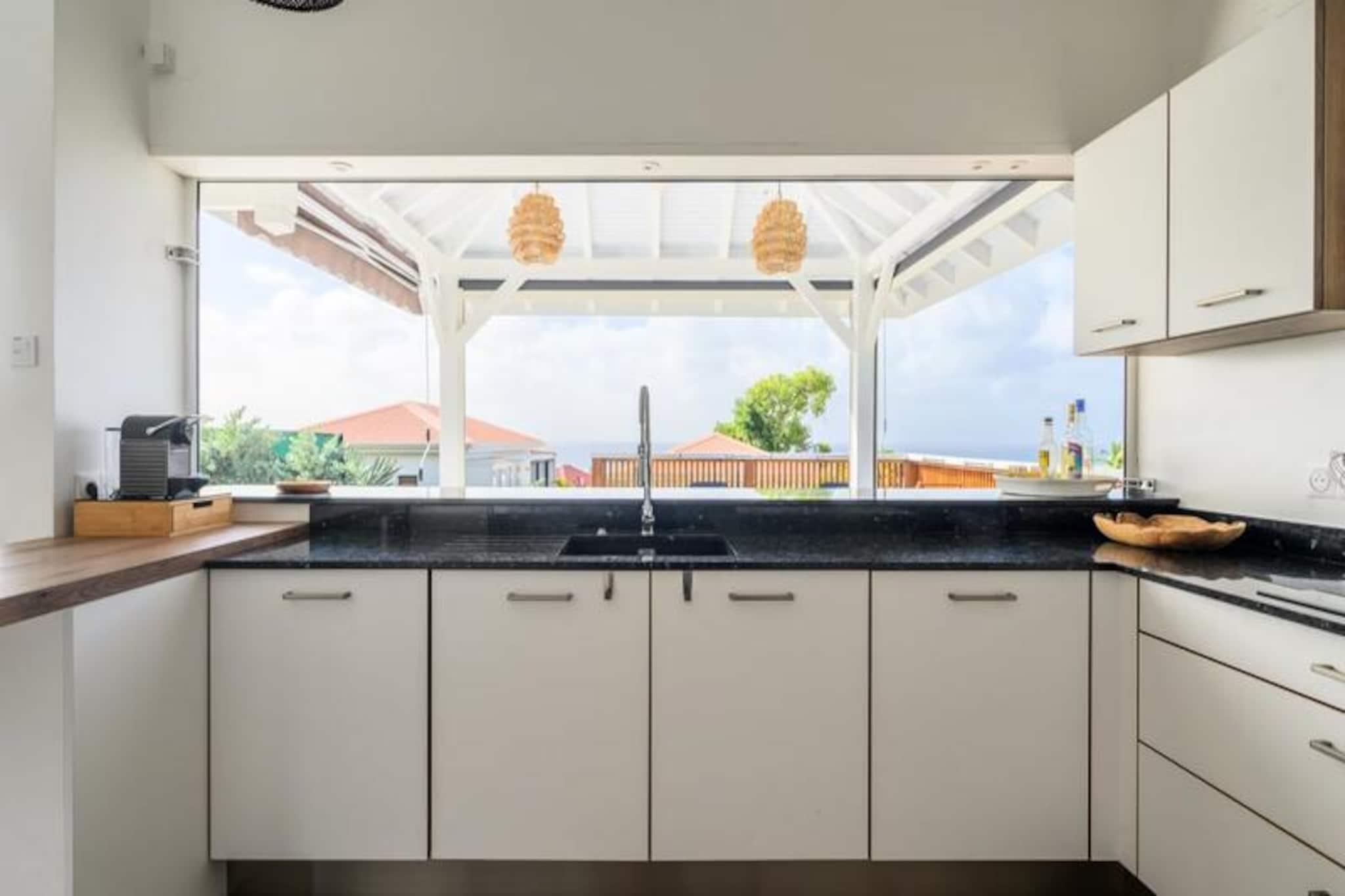 Nyt roen i Villa Paloma, et fredelig tilfluktssted som ligger på høyden av Grand-Bourg, og tilbyr fantastisk utsikt og moderne komfort. Denne elegante villaen er et fristed for par eller venner som søker en fredelig flukt under den karibiske solen. Med sitt private evighetsbasseng som sømløst glir inn i horisonten, vil du finne deg selv fordypet i skjønnheten i Marie-Galantes uberørte landskap. Villaens design kombinerer harmonisk moderne luksus med øyas naturlige sjarm, og skaper en atmosfære av ren avslapning. Innvendig tilbyr to suiter med klimaanlegg, queen-size-senger og eget bad ultimat komfort og privatliv. Soverommene, atskilt fra hovedoppholdsrommet, sikrer et rolig og avslappende opphold, perfekt for voksne som reiser sammen. Det åpne kjøkkenet, utstyrt med avanserte hvitevarer, flyter uanstrengt ut på terrassen, hvor du kan nyte utendørs servering mens du nyter havutsikten. Stuen, komplett med smart-TV og fiberoptisk internett, tilbyr et koselig sted å slappe av etter en dag med utforsking. Villaen ligger bare fem minutter fra hjertet av Grand-Bourg, og har en ideell beliggenhet for å oppleve det beste Marie-Galante har å by på. Oppdag øyas berømte hvite sandstrender, som La Feuillère og Anse Canot, som er perfekte for bading og soling. Utforsk lokale markeder, nyt kreolske delikatesser, eller vandre gjennom de frodige sukkerrøråkrene og naturskjønne turstiene som definerer øyas unike sjarm. Med personlige concierge-tjenester, inkludert utflukter, leie av kjøretøy og eksklusive anbefalinger, sikrer Villa Paloma et uforglemmelig opphold. Enten du slapper av ved evighetsbassenget eller utforsker øyas skjulte perler, lover dette tilfluktsstedet en ferie fylt med avslapning, eventyr og den varme omfavnelsen av Karibia.