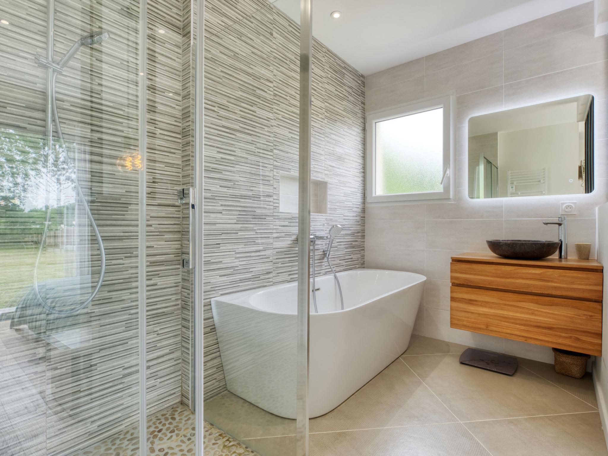 "Grande Dépée", 5-room villa 136 m2. Spacious and bright, comfortable and beautiful furnishings: large living/dining room with dining table and satellite TV (flat screen). Exit to the terrace. 1 room with 1 french bed (140 cm, length 190 cm), shower. 1 room with 1 french bed (160 cm, length 200 cm). Exit to the terrace. 1 room with 2 beds (90 cm, length 190 cm). Lounge with dining table and TV (flat screen). Exit to the terrace. 1 large room with 1 french bed (160 cm, length 200 cm), separate WC and bath/shower. Exit to the terrace. Open kitchen (oven, dishwasher, 4 induction hot plates, toaster, kettle, microwave, freezer, electric coffee machine, steamer). Shower, sep. WC, double hand-basin. Electric heating. 2 terraces covered. Terrace furniture, barbecue, deck chairs. Facilities: washing machine, iron, children's high chair, baby cot. Internet (WiFi, free). Please note: non-smoking house. Smoke alarm. Offer by a private individual according to Art. 155, IV of CGI.