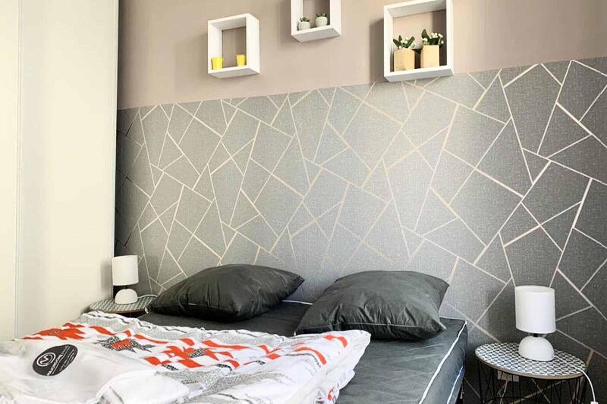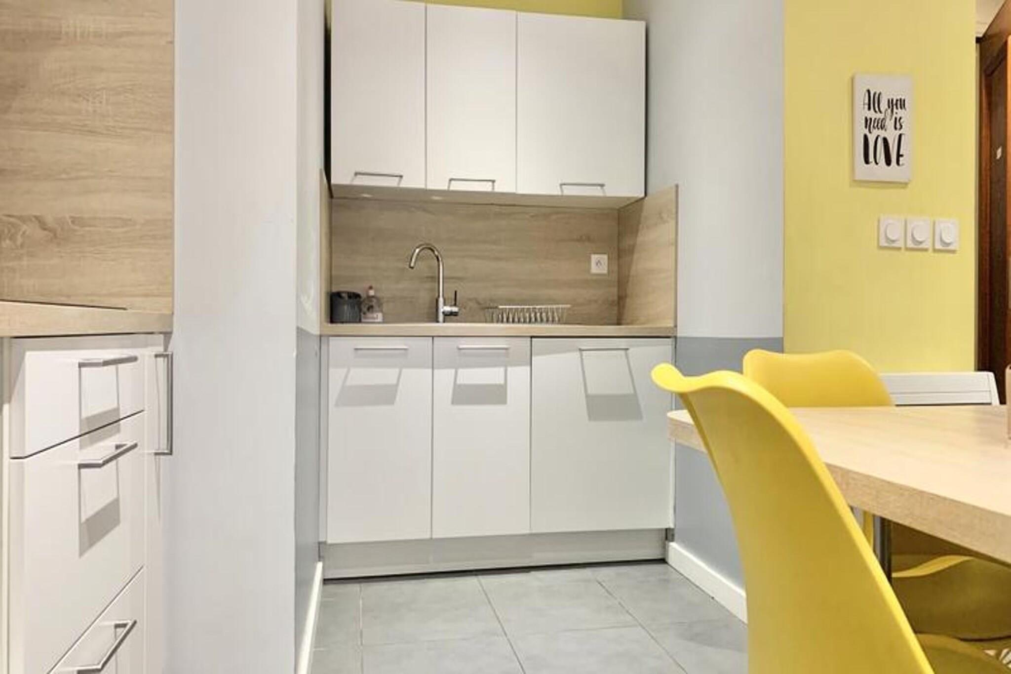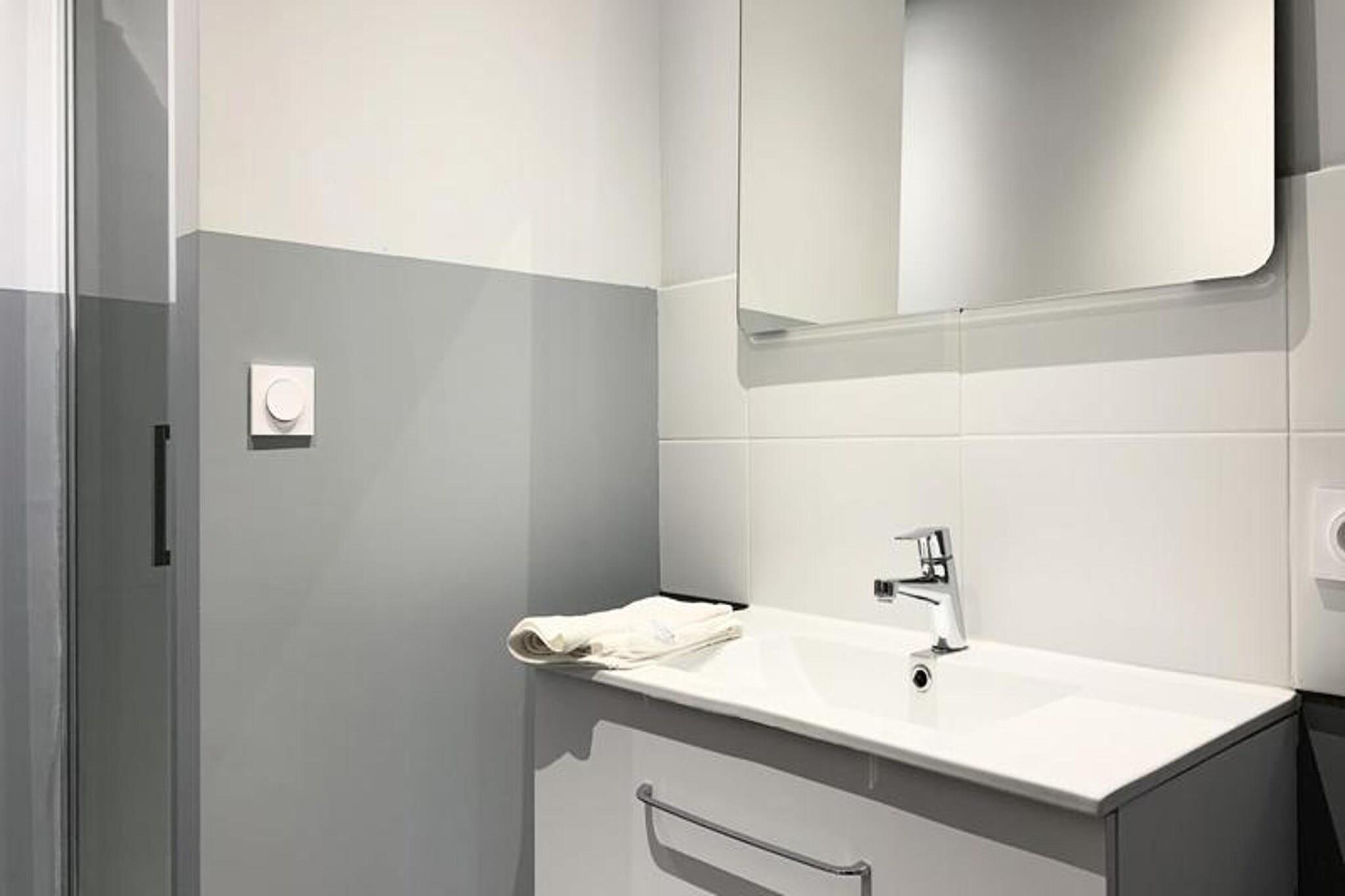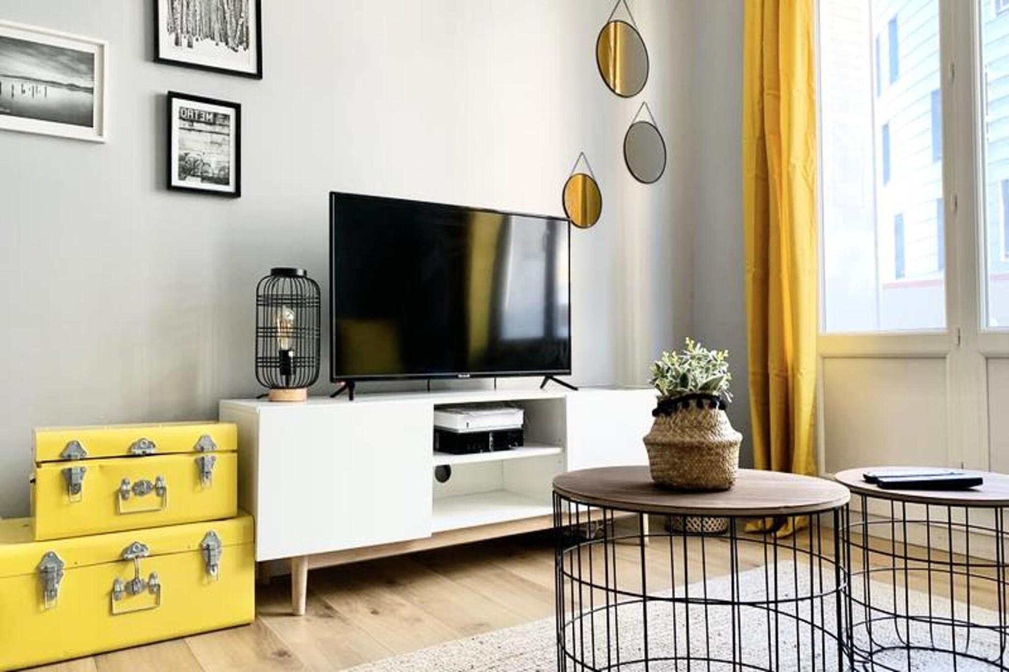 Denne sjarmerende T3-leiligheten tilbyr et komfortabelt opphold med en rekke fasiliteter. Ligger i andre etasje med heisadgang, og har tre soveplasser: ett soverom med dobbeltseng, et annet med to enkeltsenger og en dobbel konvertibel sofa i stuen. Leiligheten har plass til opptil seks personer, og tilbyr sengetøy og håndklær til alle gjester. Det er også kjæledyrvennlig, med en ekstra avgift for kjæledyr. Andre fasiliteter inkluderer gratis optisk fiber Wi-Fi, en 16/9 TV (brukt som skjerm), rikelig med lagringsplass og vifter i alle rom for å sikre et hyggelig miljø. Leiligheten har en ideell beliggenhet i hjertet av Barracks de Bonne-området, et renovert øko-distrikt kun 2 minutters gange fra trikkestasjonen "Foch-Ferrière" (linje C). Området er et pulserende knutepunkt, med butikker, restauranter, kafeer og en vakker park innen gangavstand. Denne sentrale beliggenheten gir et fredelig tilfluktssted samtidig som den er nær sentrum, noe som gjør den til den perfekte basen for å utforske Grenobles attraksjoner. Leiligheten er fullt utstyrt for bekvemmelighet og komfort. Det åpne kjøkkenet har kaffetrakter, vannkoker, mikrobølgeovn, oppvaskmaskin, kjøleskap og fryser, mens det moderne badet har italiensk dusj og separat toalett. En stor balkong går langs leiligheten, tilgjengelig fra både soverom og stue, og tilbyr et perfekt sted å slappe av.