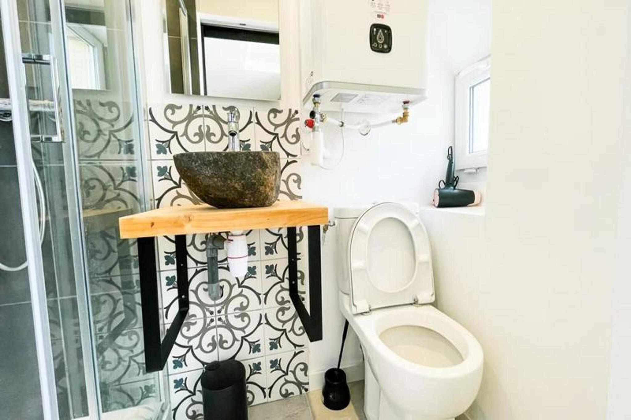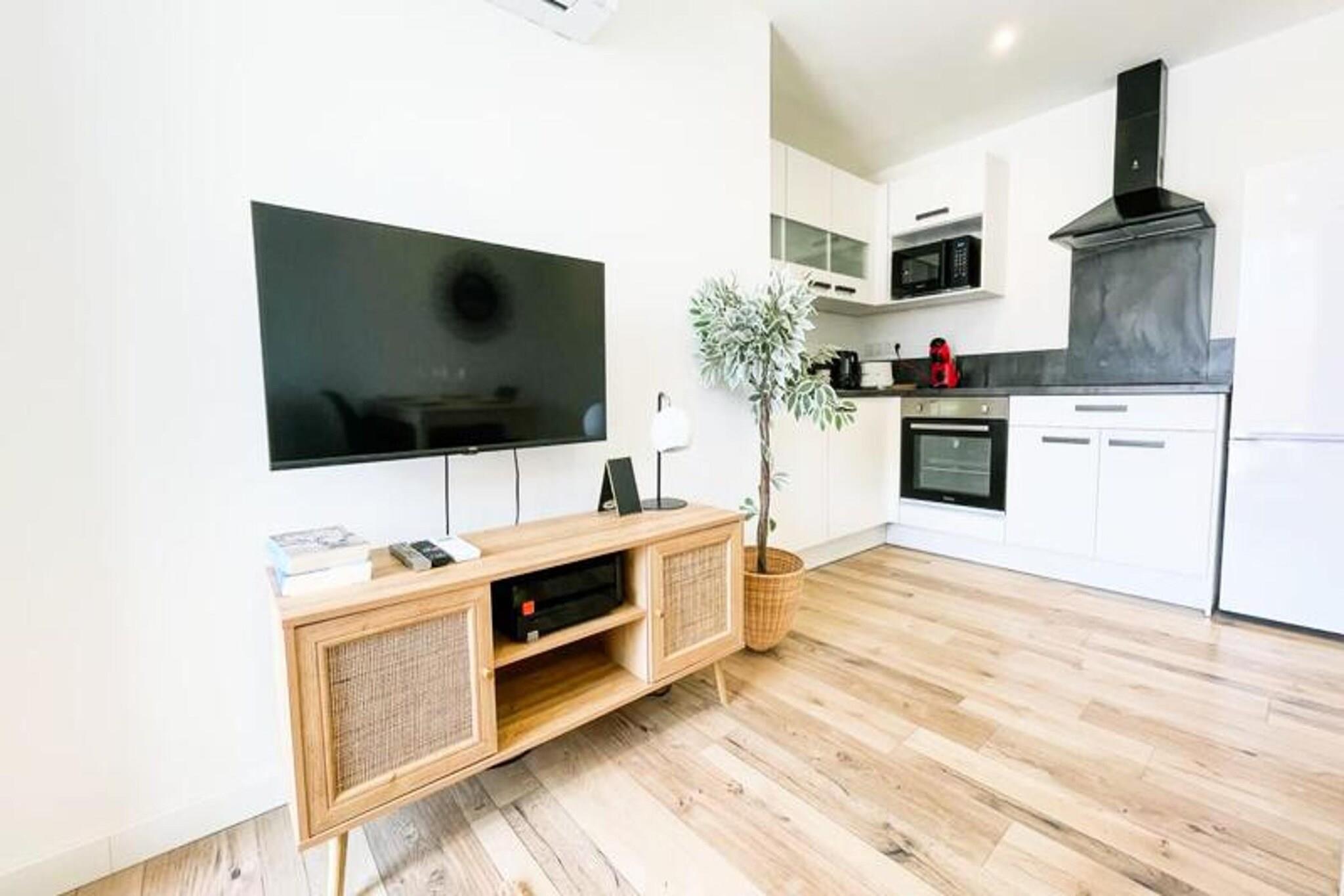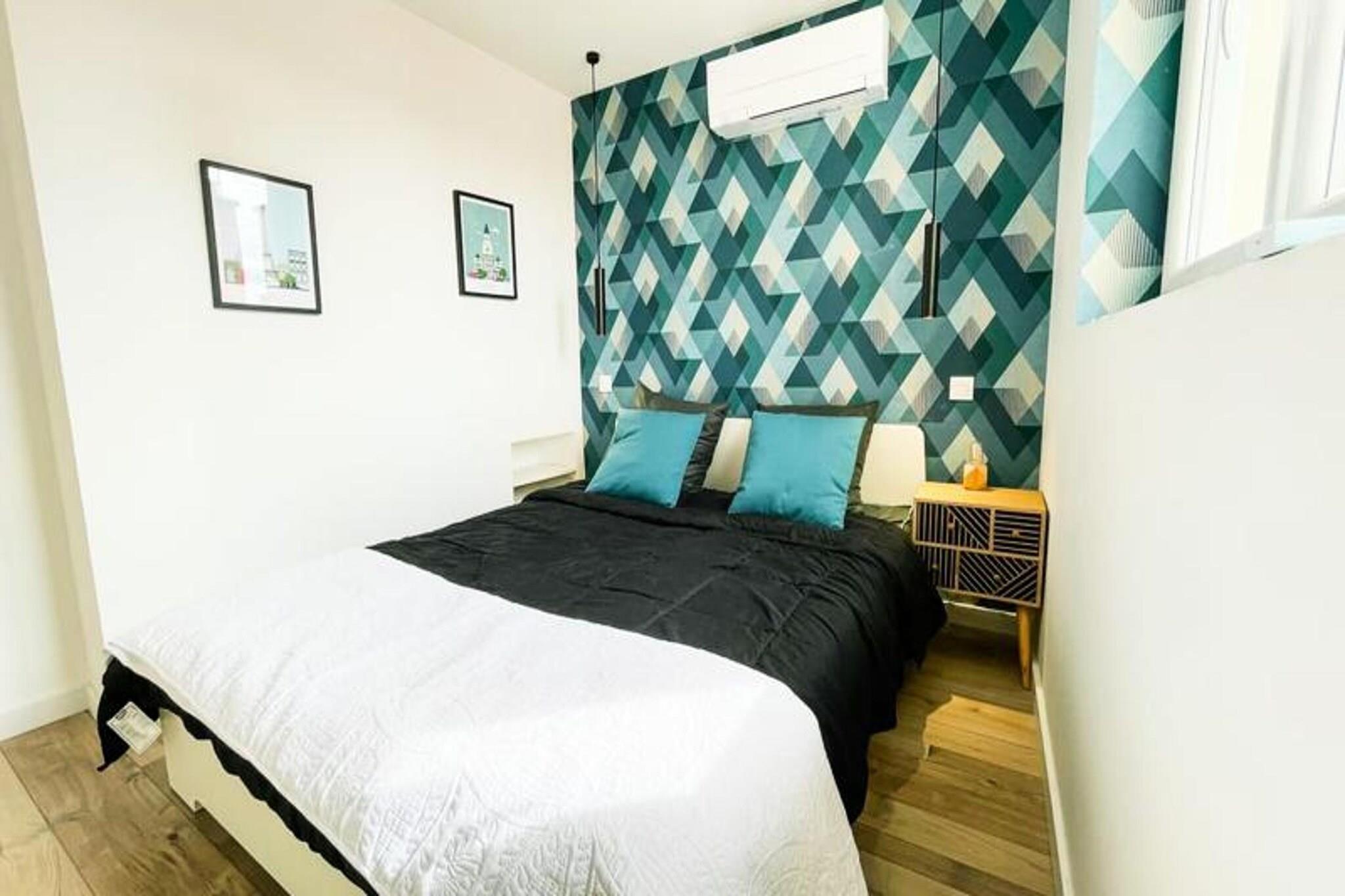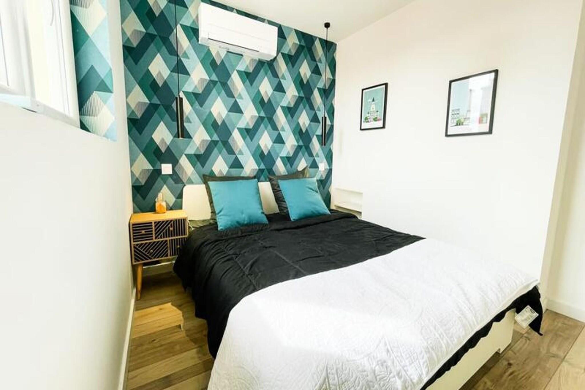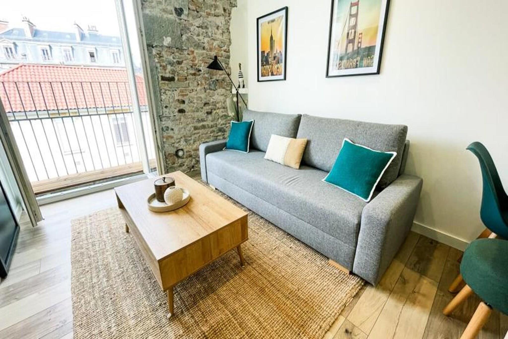 Denne sjarmerende T2-leiligheten, som ligger i 4. etasje uten heis, tilbyr et komfortabelt opphold for opptil 4 personer. Leiligheten har klimaanlegg og en lys stue med sovesofa, et vakkert soverom med en 160 cm seng og en liten røykebalkong. Gjestene vil glede seg over fasiliteter som høyhastighets Wi-Fi, en Smart TV (med strømmeapper som Netflix og YouTube) og et fullt utstyrt kjøkken. Sengetøy og håndklær for 4 personer er inkludert ved ankomst, og leiligheten er kjæledyrvennlig, og tillater kjæledyr mot en ekstra avgift. Leiligheten har en ideell beliggenhet i fotgjengersenteret i Grenoble, med lett tilgang til en rekke butikker, restauranter, kafeer og offentlig transport. SNCF-stasjonen er lett tilgjengelig, og trikkeholdeplasser A og B er innen 5 minutters gange unna. For de som ønsker å utforske byen, er ulike attraksjoner, inkludert museer og parker, i nærheten. Kommunal parkering er tilgjengelig mot en avgift ved museet og turistsenteret, og tilbyr praktiske alternativer for de med bil. Leiligheten har et fullt utstyrt kjøkken med kjøleskap/fryser, stekeovn, mikrobølgeovn, brødrister og Dolce Gusto kaffetrakter. Badet har en luksuriøs italiensk dusj og WC, som gir alle nødvendige fasiliteter for et avslappende opphold. Enten du besøker for forretninger eller ferie, tilbyr denne leiligheten alt du trenger for en komfortabel og praktisk opplevelse i Grenoble.