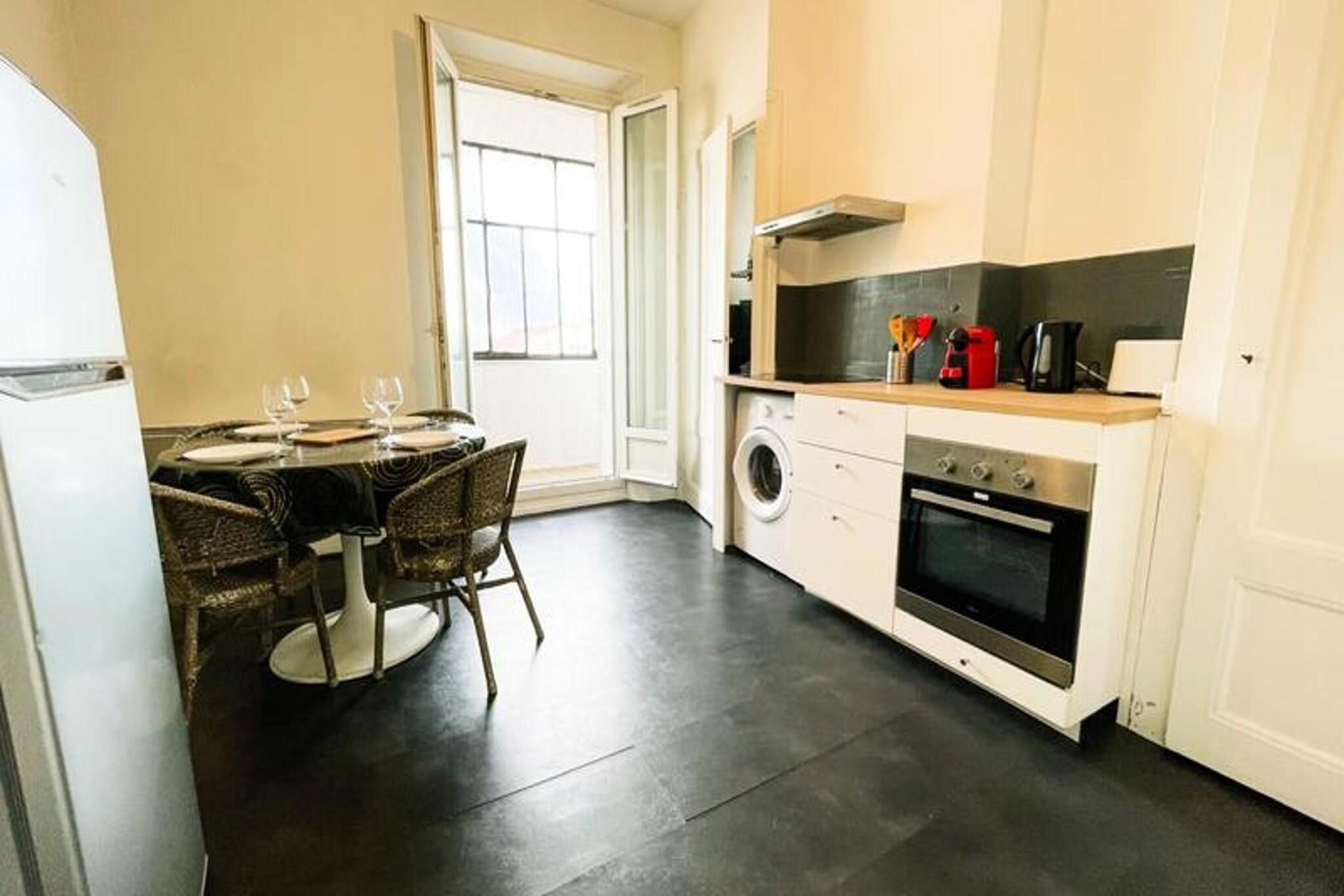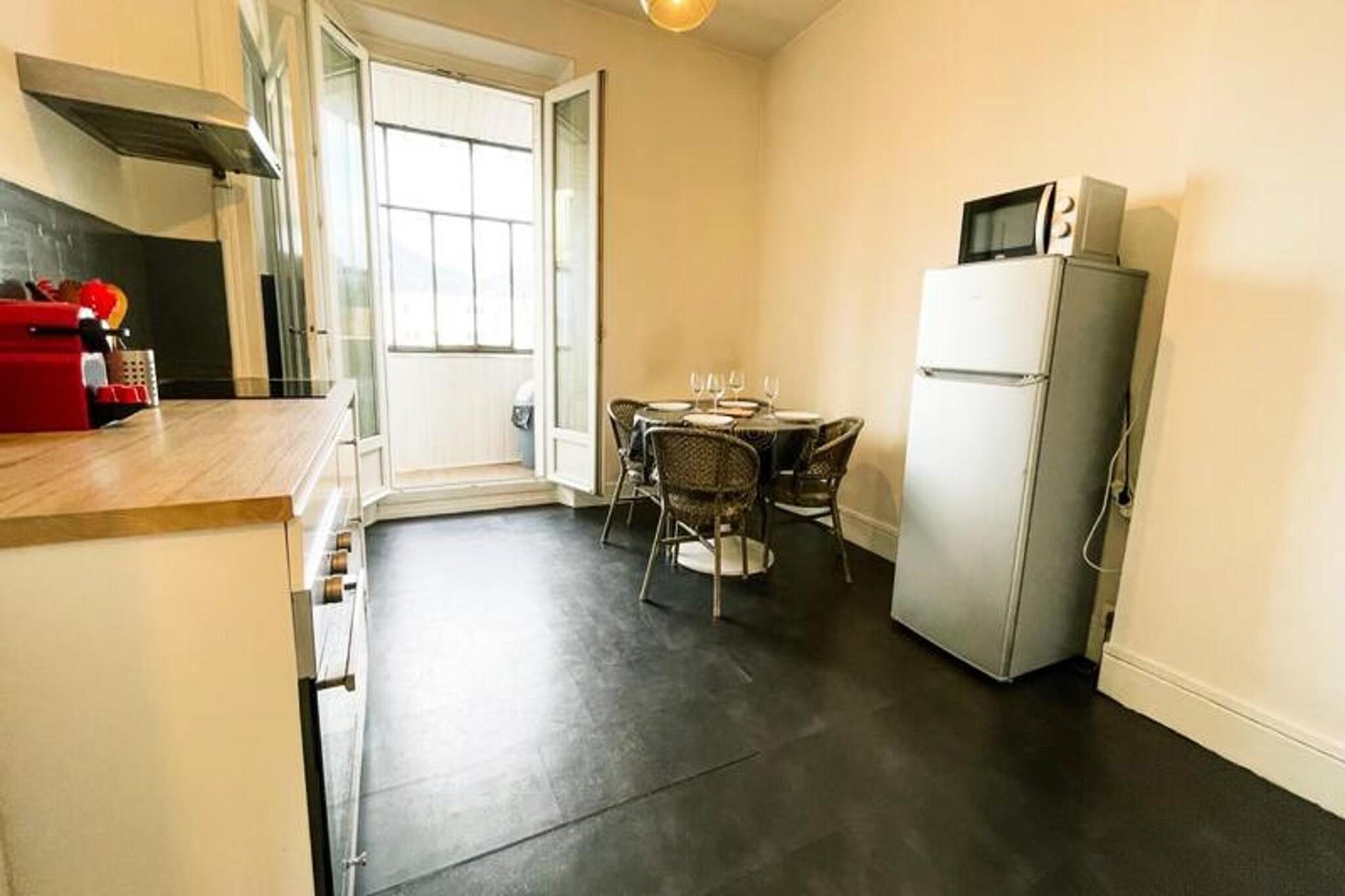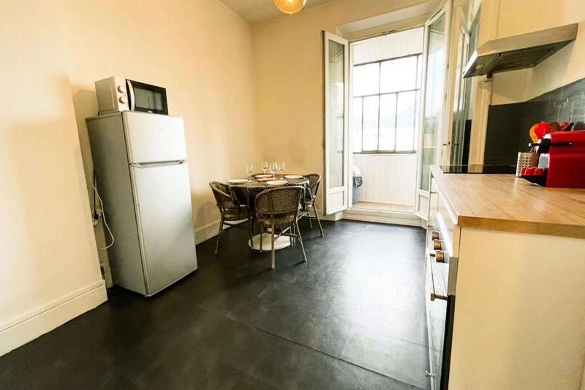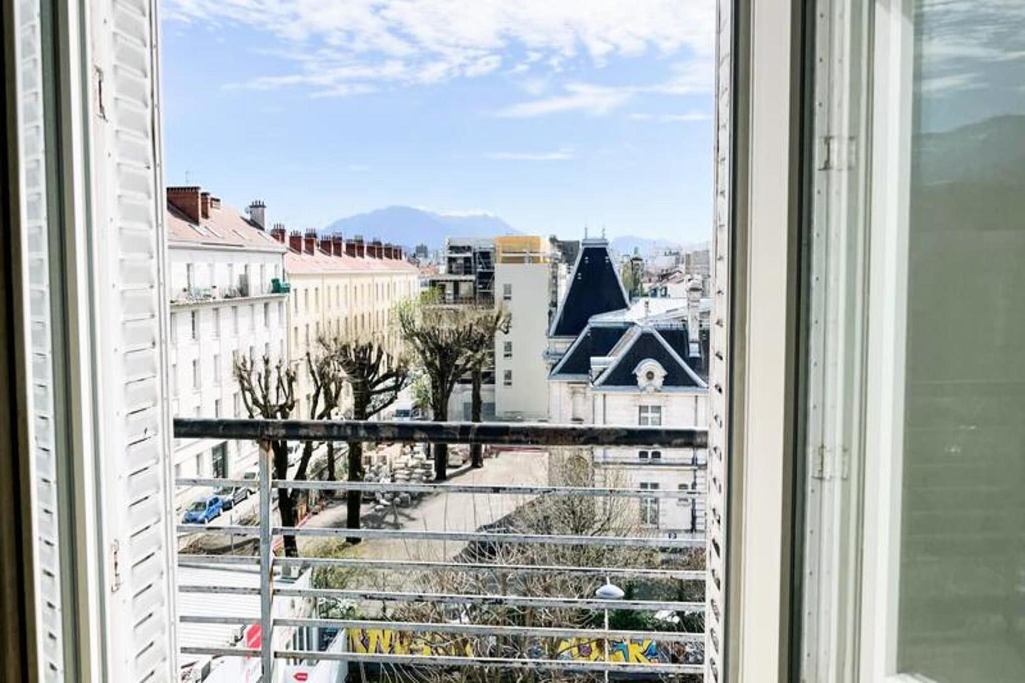 Denne lyse og koselige leiligheten tilbyr et komfortabelt opphold for opptil fire gjester, og har en dobbeltseng på mesaninen og en sovesofa i stuen. Eiendommen er kjæledyrvennlig og omtenksomt møblert, og inkluderer sengetøy, håndklær, TV og høyhastighets Wi-Fi. Balkongen tilbyr en fantastisk fjellutsikt, perfekt for å slappe av, mens leilighetens varme innredning og naturlige lys gjør at den føles som hjemme. Uavhengig tilgang sikrer personvern, med alt gitt for en problemfri opplevelse. Denne leiligheten ligger nær Place Saint Bruno, og tilbyr enkel tilgang til et yrende nabolag fylt med sjarm. Saint Bruno-markedet, som ligger bare 300 meter unna, går fra tirsdag til søndag og tiltrekker seg mange besøkende. Du finner kafeer, barer, restauranter og butikker som bakerier og dagligvarebutikker innen gangavstand. Sentralstasjonen ligger kun 700 meter unna, mens det pulserende sentrum er lett tilgjengelig til fots eller med trikk. Leiligheten har et fullt utstyrt kjøkken med keramisk kokeplate, stekeovn, kjøleskap/fryser, mikrobølgeovn, kaffetrakter og vaskemaskin. Badet har en moderne dusj i italiensk stil og separate toaletter, noe som sikrer komfort og bekvemmelighet. En romslig spiseplass og røykebalkong gjør det til et ideelt sted for avslapning. Saint Bruno trikkeholdeplass (trikk A og B) ligger bare 250 meter unna, og kobler deg enkelt til resten av byen.