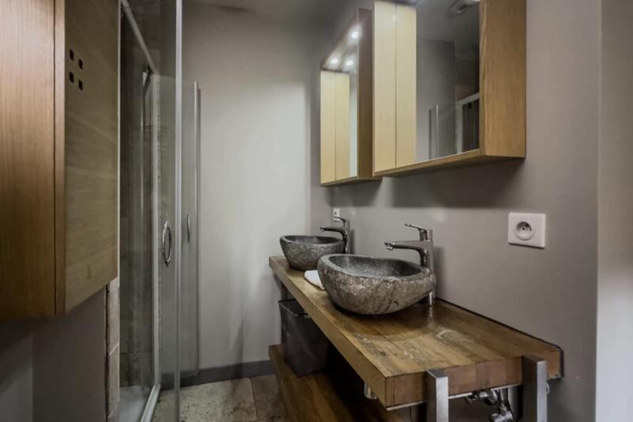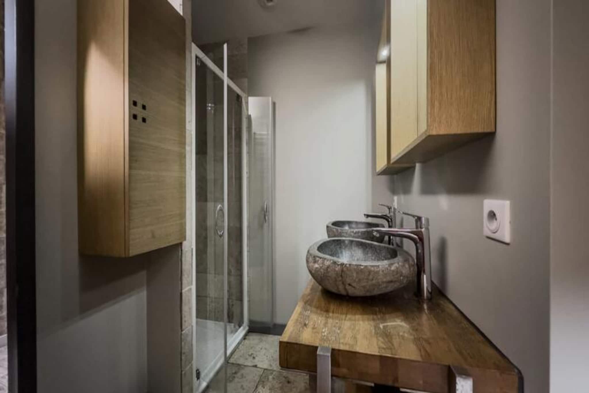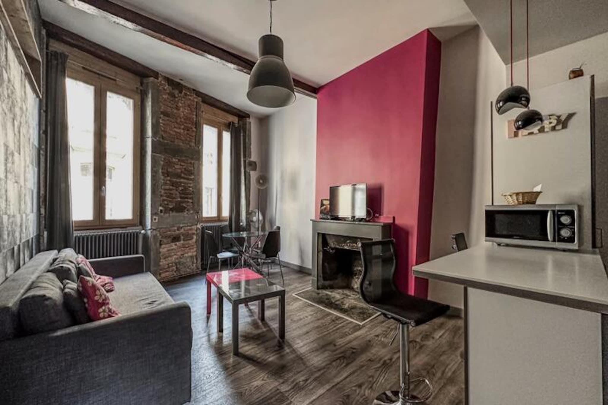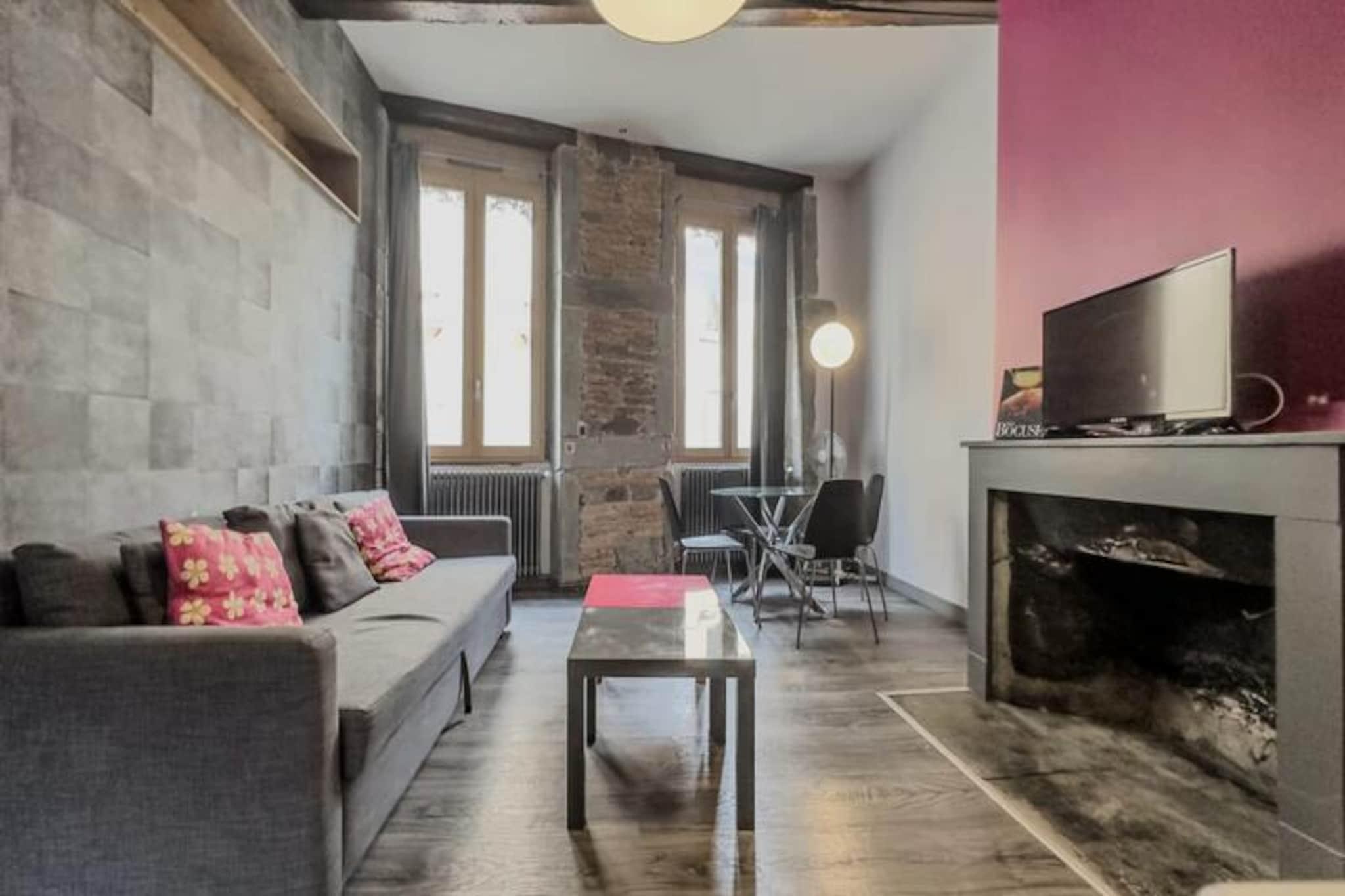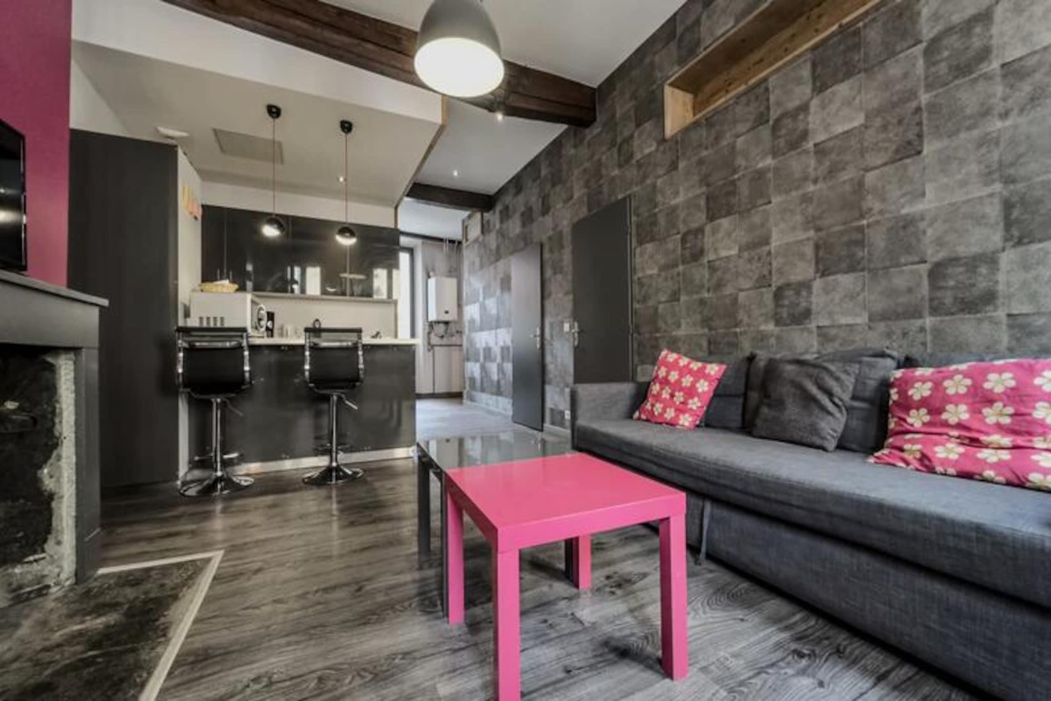 I hjertet av Grenobles historiske sentrum tilbyr denne sjarmerende leiligheten i tredje etasje en unik blanding av moderne komfort og gammeldags sjarm. Beliggende i den pulserende gågaten, inviterer den deg til å fordype deg i den livlige atmosfæren med brosteinsgater, boutiquebutikker og herlige kafeer, alt bare noen skritt fra døren din. Enten du er her i forretninger eller fritid, er denne leiligheten den perfekte basen for å utforske Grenobles kulturelle og arkitektoniske skatter. Innvendig er leiligheten gjennomtenkt designet for å innkvartere opptil fem gjester. Den åpne stuen har en koselig sovesofa, et spisebord for fem og et fullt utstyrt kjøkken med moderne hvitevarer som Nespresso-kaffemaskin, mikrobølgeovn og oppvaskmaskin. To innbydende soverom gir avslappende tilfluktssteder: ett med dobbeltseng og skrivebord, det andre med køyesenger og ekstra arbeidsplass. Badet er utstyrt med dusj, dobbel vask og alt du trenger for et komfortabelt opphold. Høyhastighetsinternett og TV sørger for at du holder deg tilkoblet og underholdt. Gå ut, og du vil finne deg selv omgitt av Grenobles viktigste attraksjoner. Trikkeholdeplassen Hubert Dubedout ligger bare 150 meter unna, og forbinder deg enkelt med byens høydepunkter. Trikkeholdeplassen Notre Dame ligger enda nærmere, 100 meter unna. For de som ankommer med bil, er det offentlig parkering tilgjengelig i nærheten ved turistkontoret. Utforsk byens museer, pulserende markeder og den fantastiske utsikten fra Bastille-taubanen, alt innen rekkevidde. Med sin uslåelige beliggenhet, moderne fasiliteter og innbydende atmosfære, er denne leiligheten din inngangsport til en uforglemmelig Grenoble-opplevelse. Enten du nyter lokal mat, spaserer langs Isère-elven eller oppdager byens rike historie, er dette det perfekte stedet å kalle hjem under oppholdet ditt.