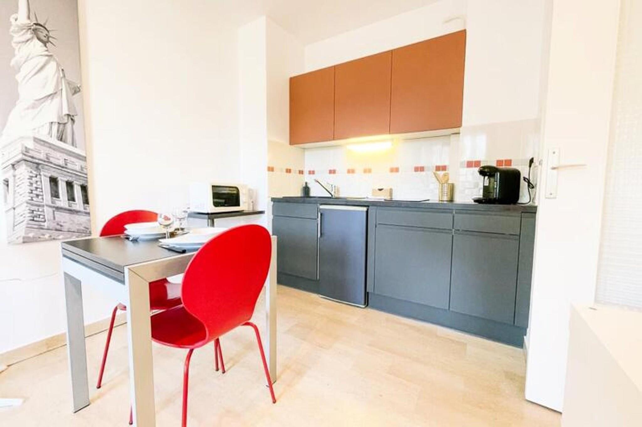 Denne nyoppussede ettromsleiligheten på 23,5 m² tilbyr en koselig og moderne plass for to gjester. Stuen har en komfortabel sovesofa og TV, mens en liten balkong er et avslappende sted for røykere. Med Wi-Fi inkludert og friskt sengetøy og håndklær ved ankomst, sikrer denne ettromsleiligheten et praktisk og komfortabelt opphold. Vær oppmerksom på at kjæledyr ikke er tillatt på denne eiendommen. Studioet ligger i det rolige Louise Michel-distriktet, kun 100 meter fra trikkeholdeplassen Louise Michel (linje E), som tilbyr sømløs tilgang til byen. Du finner ulike butikker og markeder i nærheten, samt enkle gang- eller sykkelruter for å utforske Grenobles pulserende sentrum. Beliggenheten kombinerer ro med nærhet til alle viktige fasiliteter, noe som gjør det til en perfekt base for ditt besøk. Det fullt utstyrte kjøkkenet er ideelt for å tilberede måltider, komplett med kjøleskap/fryser, stekeovn, kokeplater og en Dolce Gusto kaffetrakter (kapsler følger ikke med). Badet har moderne dusj og WC. Gratis parkeringsplasser er praktisk plassert i bunnen av bygningen, noe som sikrer problemfri tilgjengelighet. Enten for arbeid eller fritid, dette studioet dekker alle dine behov for et hyggelig opphold.