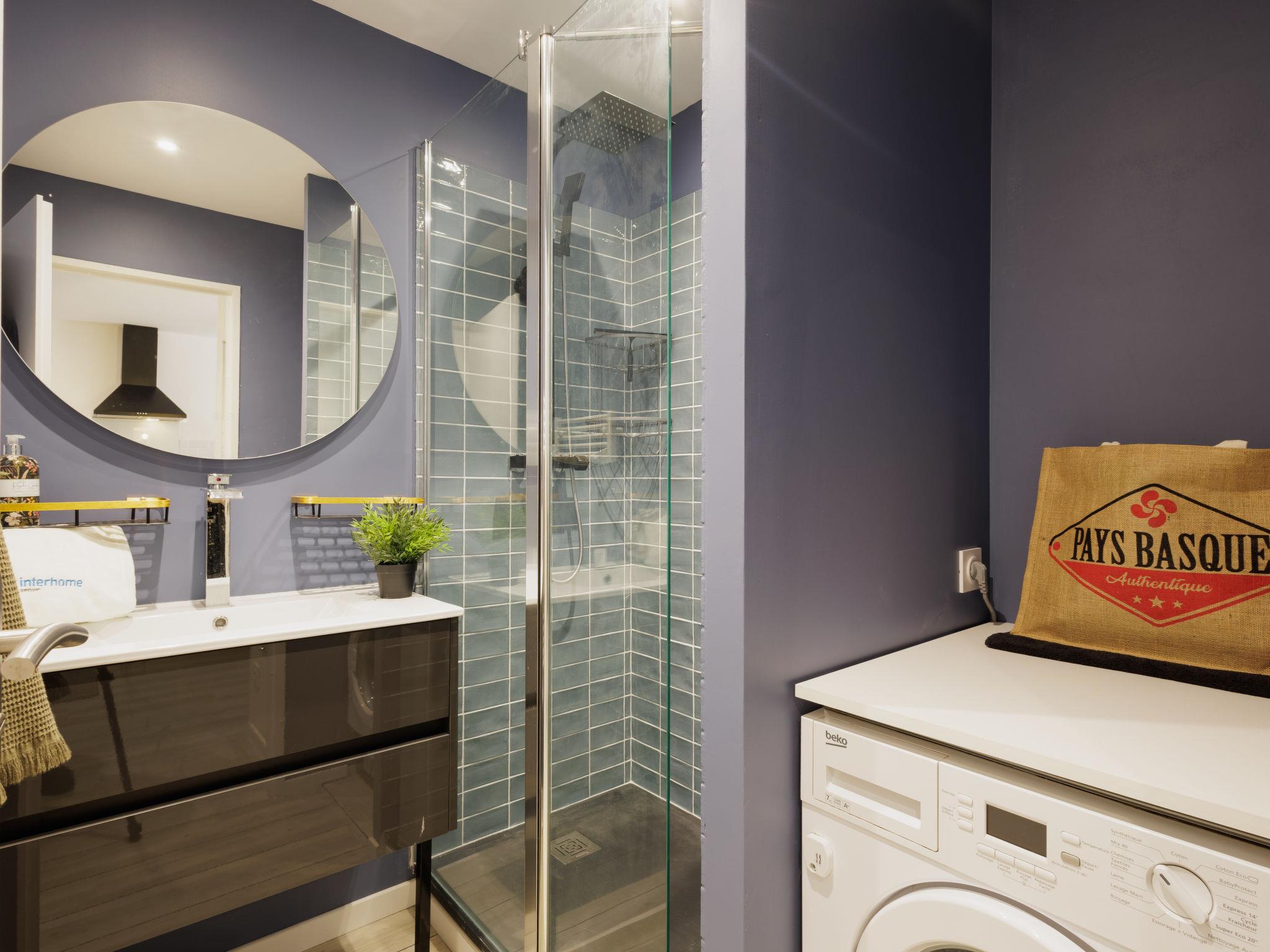 Guéthary 1 km from Bidart: Residence "Kantaldi". In the resort 400 m from the centre of Guethary, 500 m from the sea, 500 m from the beach. For shared use: swimming pool fenced (15 x 7 m, depth 120 - 175 cm, seasonal availability: 01.Jun. - 01.Sep.). In the house: lift. Shop 200 m, grocery 500 m, supermarket 3 km, restaurant 250 m, bakery, café, pedestrian zone 200 m, 2 minute walk to the centre, bus stop 100 m, railway station "Guethary" 500 m, sandy beach "Guethary plage" 500 m. Surf school 600 m. Nearby attractions: Marché nocturne 100 m, Aquarium de Biarritz 18 km. Hiking paths: La rhune 32 km. The keys‘ handover takes place by the agency Interhome in Bidart, 2 km.