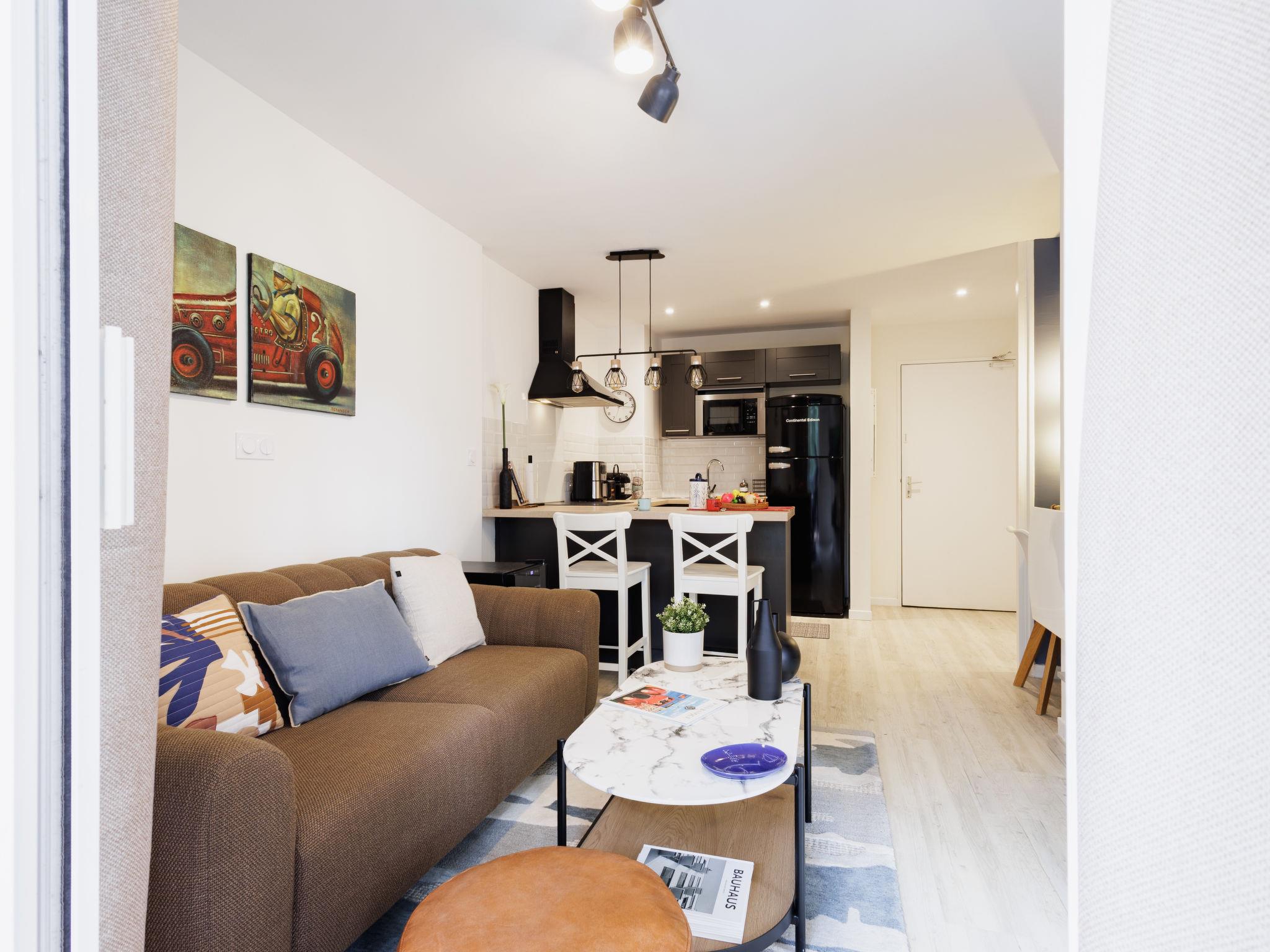 2-room apartment 30 m2 on 1st floor. Renovated, beautiful and modern furnishings: living/dining room with TV (flat screen). Exit to the balcony. 1 room with 1 french bed (140 cm, length 190 cm). Exit to the balcony. Kitchenette (oven, dishwasher, 3 induction hot plates, toaster, kettle, microwave, freezer, electric coffee machine, Capsules for coffee machine (Nespresso)) with bar. Shower, sep. WC. Electric heating. Balcony 10 m2, south facing position and west facing position. Balcony furniture. Facilities: washing machine, hair dryer. Internet (WiFi, free). Parking space n 305 (1 car). Please note: smoke alarm. Offer by a private individual according to Art. 155, IV of CGI. 6424900045268