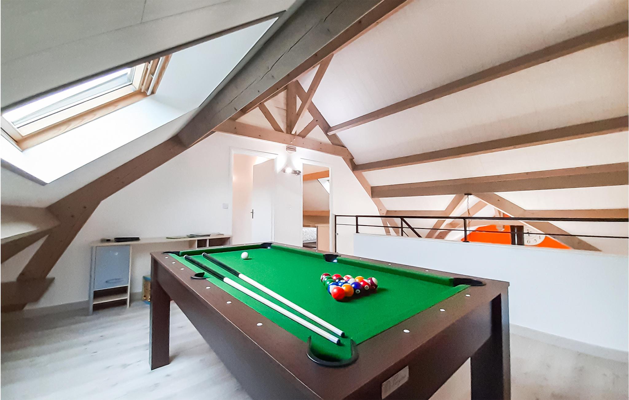 Dette romslige feriehuset i to etasjer tilbyr deg og dine ledsagere et moderne trivselssted i Hauts-de-France-regionen i Nordvest-Frankrike. Du kan grille på den åpne, overbygde terrassen eller nyte et glass vin mens de andre tar seg en dukkert i det private bassenget. Om kvelden kan dere også spille biljard eller bordfotball og bestemme hvem som skal ta oppvasken.