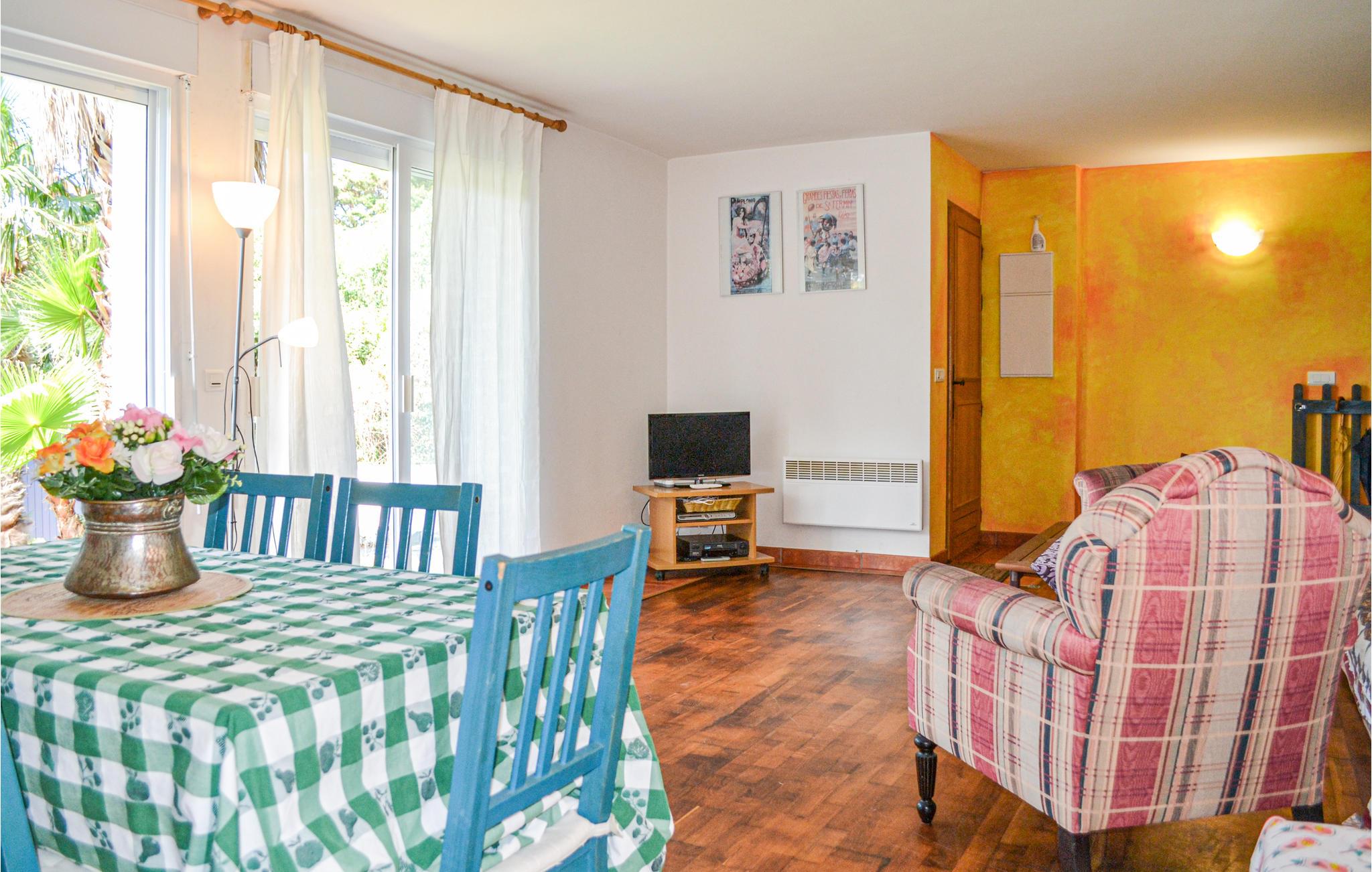 Den inngjerdede hagen har en liten plen med palmer og en terrasse med grillbord som innbyr til avslappende timer utendørs. En liten dusj er også tilgjengelig for forfriskning eller etter en svømmetur. Nyt en solrik ferie under palmetrærne - dette er stedet å bo!
