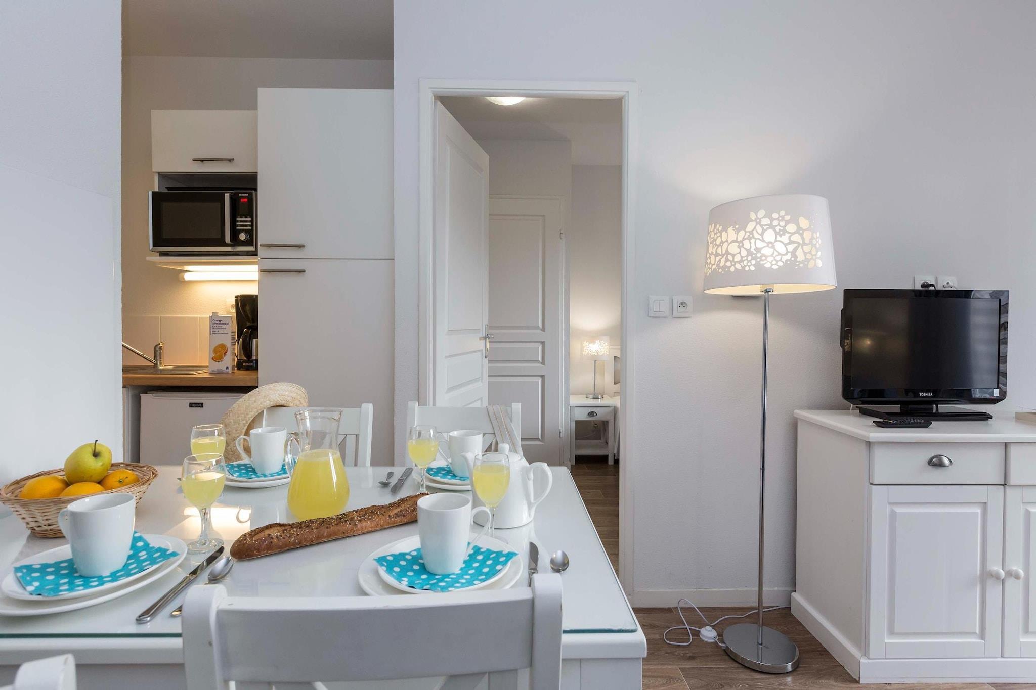 Velkommen til din koselige innsjøferie i Hourtin! Dette sjarmerende studioet i første etasje i 3-stjerners Résidence Le Petit Pont ligger bare noen skritt fra den fantastiske ferskvannssjøen Hourtin-Carcans – den største naturlige innsjøen i Frankrike. Med en fullt utstyrt kjøkkenkrok, en komfortabel dobbel sovesofa, et moderne bad og din egen private terrasse, er dette studioet perfekt for par eller alenereisende som søker fred og komfort med direkte tilgang til naturen. Bare 1,5 km fra hjertet av landsbyen Hourtin finner du lokale markeder, bakerier og koselige bistroer som serverer fersk sjømat og regionale viner. Tilbring dagene med svømming, windsurfing eller paddleboarding på innsjøen, eller ta en 15-minutters kjøretur til Atlanterhavsstrendene for sand og surfing. Residensen tilbyr også nærliggende gang- og sykkelstier – ideelle for å utforske de omkringliggende furuskogene og sanddynene. Ta med deg din pelskledde følgesvenn – kjæledyr er hjertelig velkommen her! Nyt turer langs innsjøen, plaskeøkter i det grunne vannet nær Hourtin Port, eller bli med andre kjæledyreiere på de naturskjønne stiene gjennom furuskogen. De rolige, åpne områdene rundt innsjøen er perfekte for å hente, snuse eventyr eller bare slappe av i skyggen. Med kjæledyrvennlige kafeer i nærheten vil din beste venn nyte ferien like mye som deg.