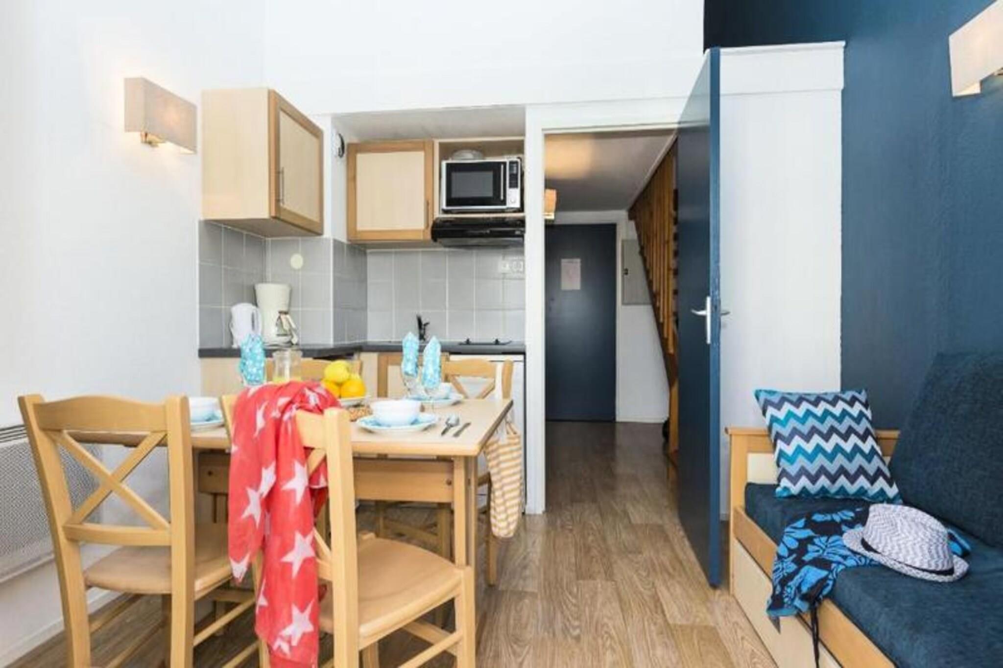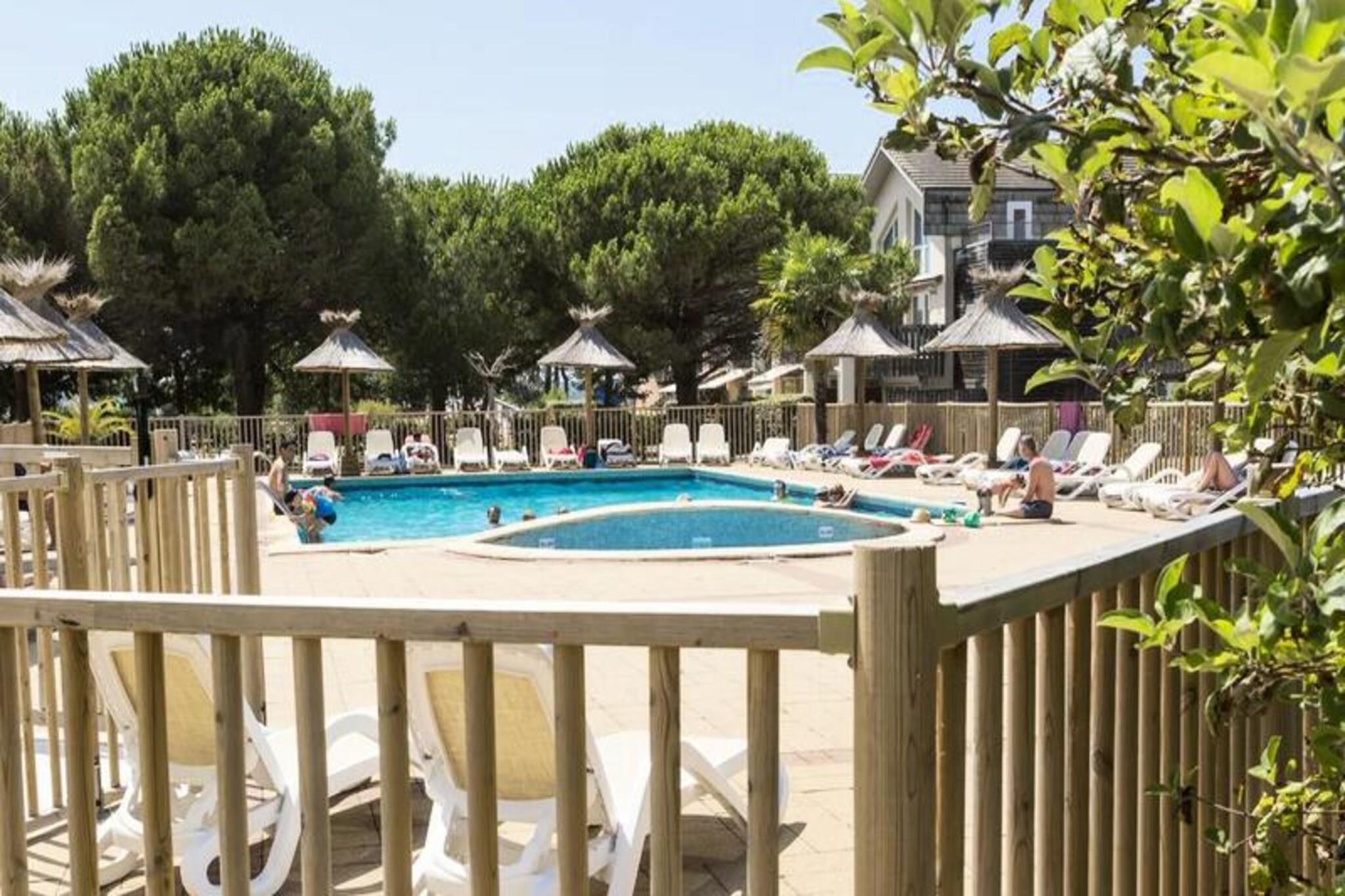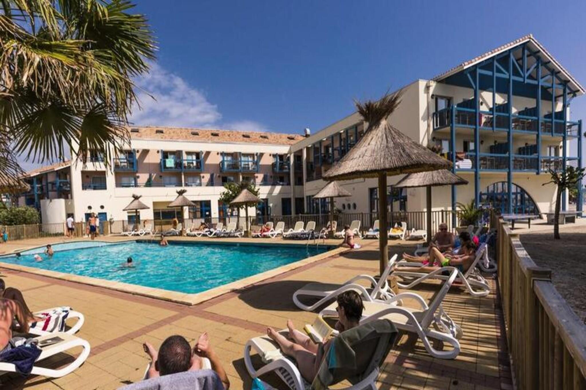 Dette familievennlige leilighetskomplekset er designet med barn i tankene, og tilbyr romslige 2-roms duplekser som kan huse opptil 4 personer. Hver enhet har en stue med en uttrekkbar sovesofa, et soverom med en dobbeltseng og en mesanin med en annen dobbeltseng. Leilighetene har et velutstyrt kjøkken, bad og WC. Eiendommen er kjæledyrvennlig (med forhåndsvarsel), og tilbyr ekstra fasiliteter som gratis Wi-Fi, TV og en gratis oppdagelsesparkering. Sluttrengjøring (unntatt kjøkkenet) er inkludert, og tilleggstjenester som babysett og sengetøy er tilgjengelig. Residensen ligger kun 300 meter fra innsjøen Hourtin-Carcans og dens vakre strender, og tilbyr et utmerket sted for utendørsaktiviteter. Gjester kan utforske den nærliggende utviklede havnen med 400 ringer eller nyte et besøk på Children's Island, et dedikert lekeområde med et enormt slott, taupyramide og andre morsomme spill for barn. Området tilbyr også enkel tilgang til lokale kafeer og markeder, perfekt for familieutflukter eller avslapning etter en dag med utforsking. Boligen er sentrert rundt et privat oppvarmet utendørsbasseng, åpent fra midten av april, og omgitt av hager hvor barn kan leke trygt. Leilighetene er utstyrt med alt du trenger for et komfortabelt opphold, inkludert et utstyrt kjøkken, bad med WC og en avslappende balkong. Med et dedikert barneområde, sandkasse og lekeplass, sikrer komplekset et morsomt og trygt miljø for hele familien.