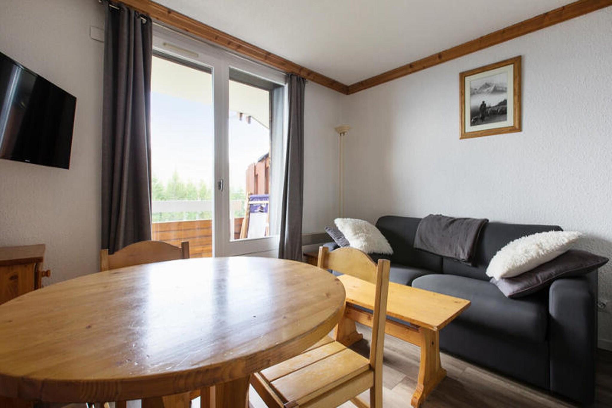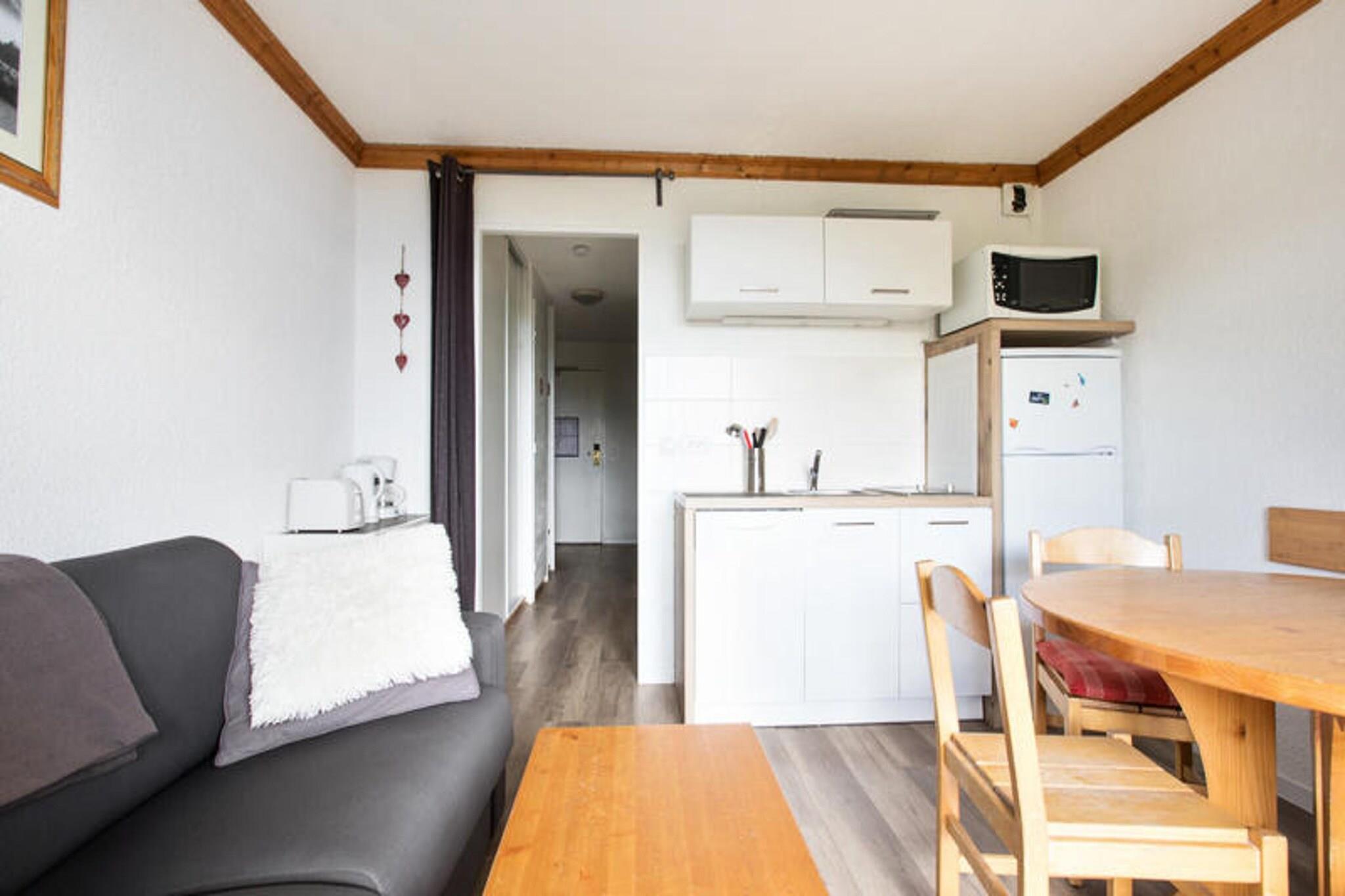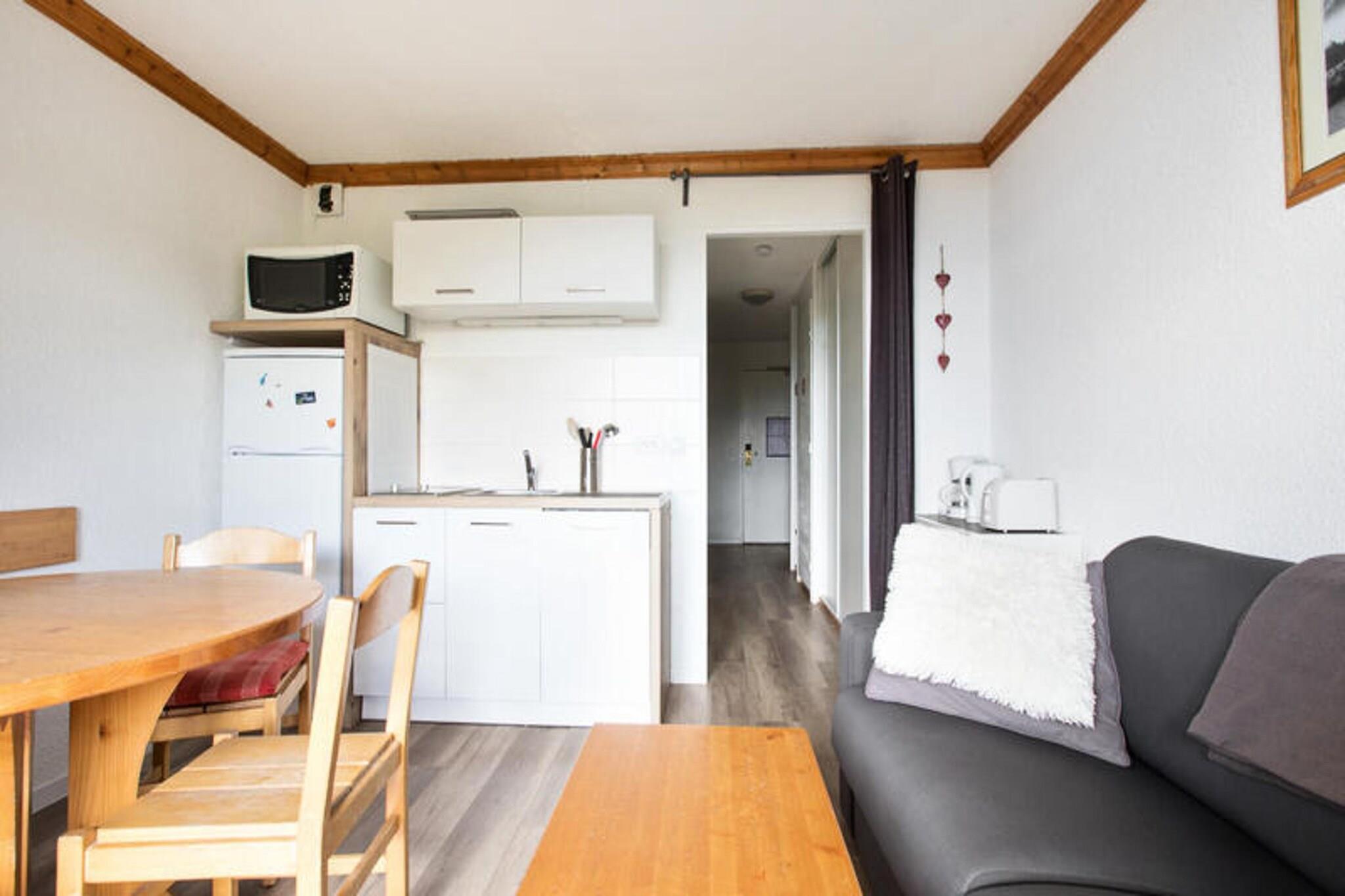 Denne koselige leiligheten i Alpe d'Huez tilbyr et komfortabelt opphold for familier eller små grupper. stue med sovesofa, hytteområde med 2 enkeltsenger og spisebord med 4 stoler. Leiligheten er kjæledyrvennlig, og tillater kjæledyr med forhåndsgodkjenning og en ekstra kostnad. Andre fasiliteter inkluderer TV, balkong med fjellutsikt og parkering. En privat parkeringsplass er tilgjengelig, med flere offentlige parkeringsmuligheter i nærheten. Sengetøy og håndklær er tilgjengelig mot et pristillegg, og en obligatorisk sluttrengjøring gjelder. Leiligheten ligger i det solfylte skianlegget Grand Domaine, kun 100 meter fra kjøpesenteret. Gjestene kan utforske de omkringliggende fjellene, ideelle for fotturer og utendørsaktiviteter. Oisans Massif tilbyr fantastisk utsikt, mens lokale kafeer, markeder og restauranter gir en smak av regionens kultur og mat. Etter en dag med utforsking kan gjestene nyte det oppvarmede utendørsbassenget eller slappe av i baren i boligen. Leiligheten har et fullt utstyrt kjøkken, åpent mot stuen, perfekt for å tilberede måltider. Badet har badekar, og det er et separat toalett. En balkong med uteservering lar gjestene nyte måltider eller slappe av med fjellutsikt. Ytterligere fasiliteter inkluderer et skiskap, badstue (mot avgift) og gratis tilgang til utendørsbassenget fra kl. 16.00. til 19:30.