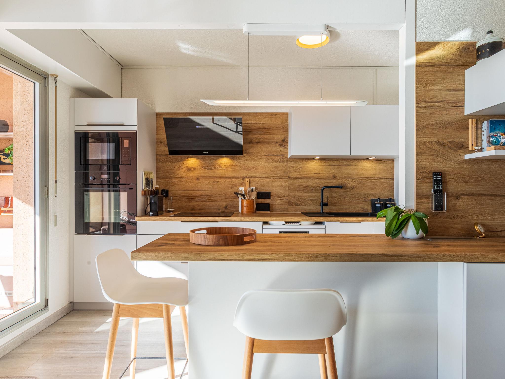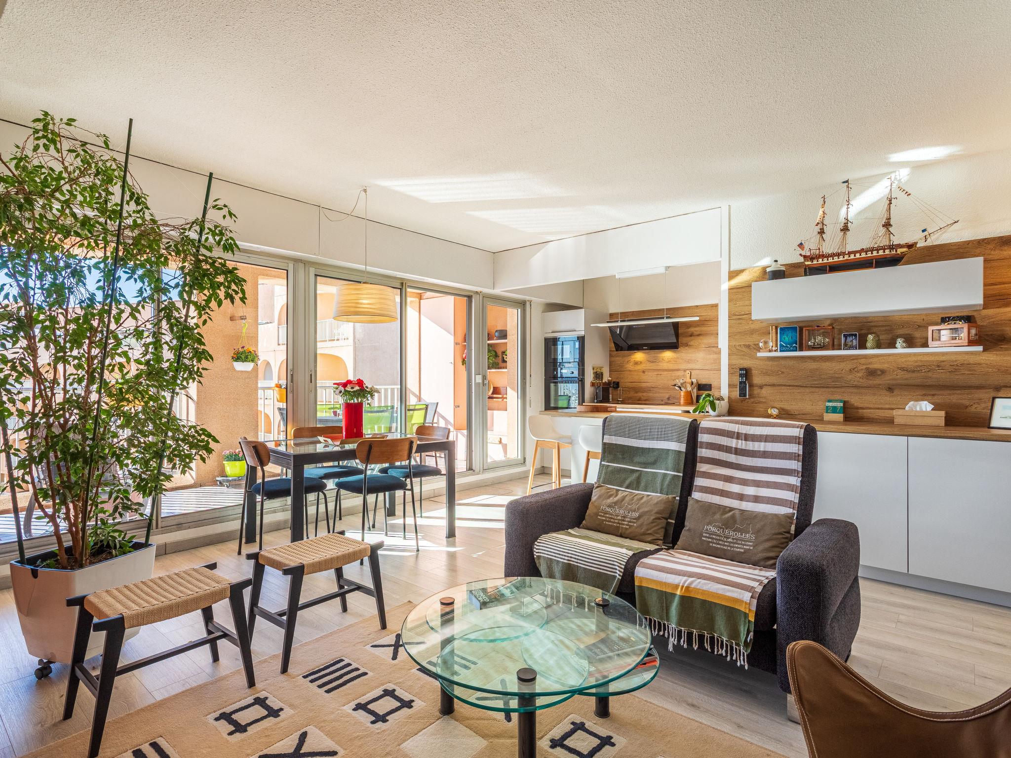 3-room apartment 80 m2 on 3rd floor. Spacious, beautiful and tasteful furnishings: living/dining room with TV (flat screen). Exit to the terrace. 2 rooms, each room with 1 french bed (140 cm, length 190 cm), air conditioning. Exit to the terrace. Open kitchen (oven, dishwasher, 3 induction hot plates, toaster, kettle, microwave, electric coffee machine) with dining table. Shower, sep. WC. Electric heating. Balcony 6 m2, terrace 15 m2. Terrace furniture. Beautiful view of the sea. Facilities: washing machine. Internet (WiFi, free). Please note: TV only FR. Smoke alarm. Offer by a private individual according to Art. 155, IV of CGI.