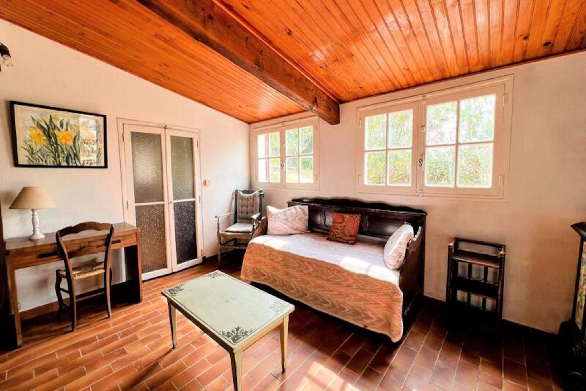 I hjertet av Provence, hvor duften av lavendel fyller luften og den gylne solen kysser det bølgende landskapet, tilbyr dette sjarmerende tilfluktsstedet på hagenivå en fredelig flukt. Bare 15 minutter fra de glitrende middelhavsstrendene og en kort kjøretur fra det pulserende sentrum av Hyères, kombinerer denne eiendommen roen ved et landlig liv med bekvemmeligheten av nærliggende attraksjoner. Enten du søker en fredelig ferie eller en eventyrfylt ferie, er denne villaen det perfekte utgangspunktet. \n\nDen romslige førsteetasjen på 120 m² i dette provençalske landstedet er designet for komfort og avslapning. Den har en lys stue som åpner ut mot en stor, møblert terrasse med fantastisk utsikt over landskapet. Det fullt utstyrte kjøkkenet inviterer deg til å tilberede deilige måltider, mens de fem soverommene, hvorav tre har eget dusjrom, sikrer avslappende netter for opptil ni gjester. Moderne fasiliteter som gratis Wi-Fi og sikker parkering på stedet bidrar til bekvemmeligheten. Gjestene kan også nyte det private bassenget, som kun deles med eierne hvis de er til stede under oppholdet, noe som gjør det til et ideelt sted å kjøle seg ned under den sørlige solen. \n\nVillaen ligger i pittoreske landlige omgivelser, bare en kort kjøretur fra Hyères, kjent for sine sjarmerende gater, travle markeder og historiske landemerker. De nærliggende strendene tilbyr uberørt sand og krystallklart vann, perfekt for soling, bading eller vannsport. For naturelskere kan området rundt by på naturskjønne stier og muligheter til å utforske regionens unike flora og fauna. \n\nEnten du nyter et glass lokal rosé på terrassen, utforsker skjønnheten til Côte d'Azur, eller bare slapper av ved bassenget, lover denne villaen en uforglemmelig provençalsk opplevelse. Bestill oppholdet ditt og skap varige minner i dette idylliske tilfluktsstedet.