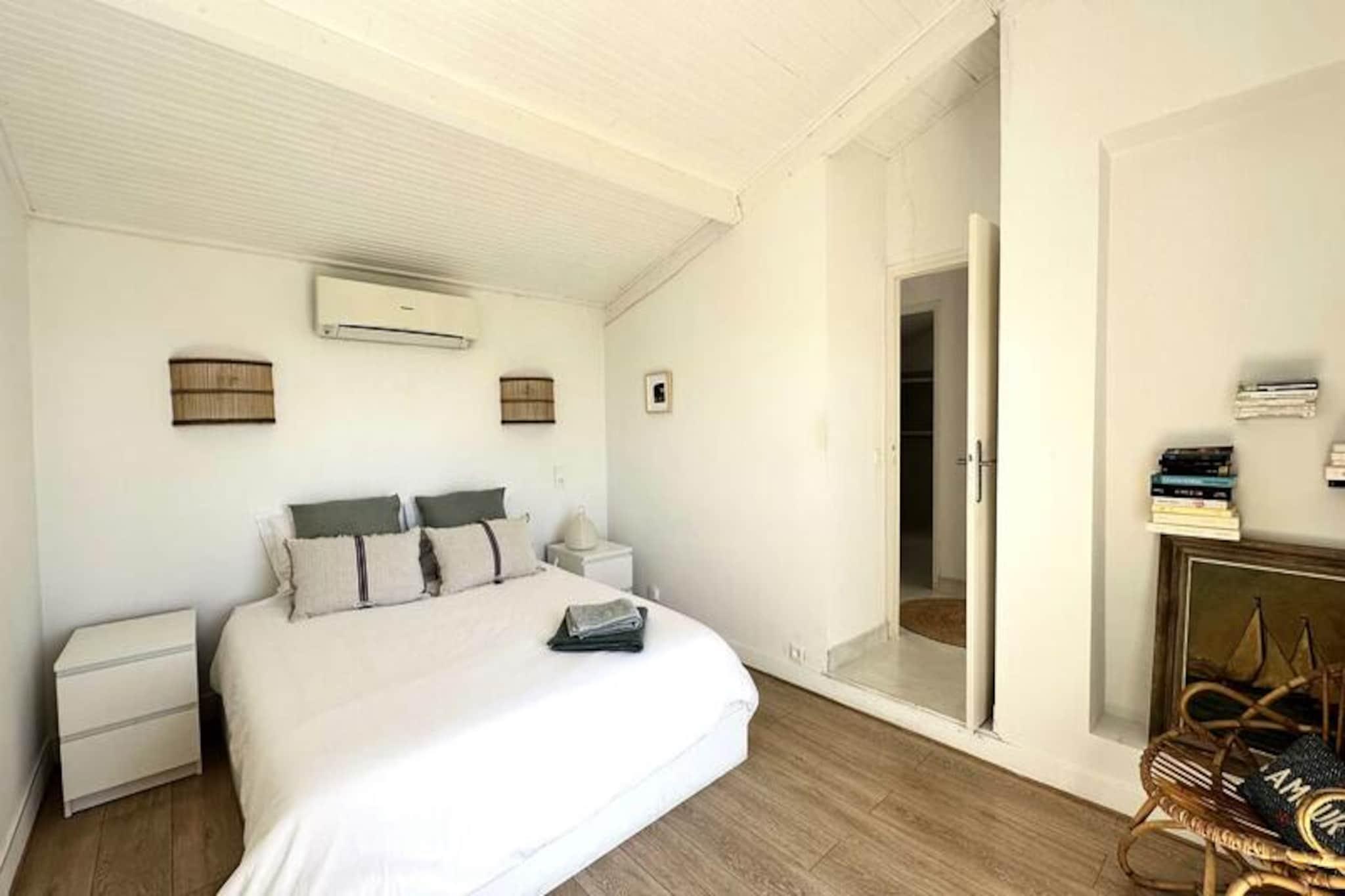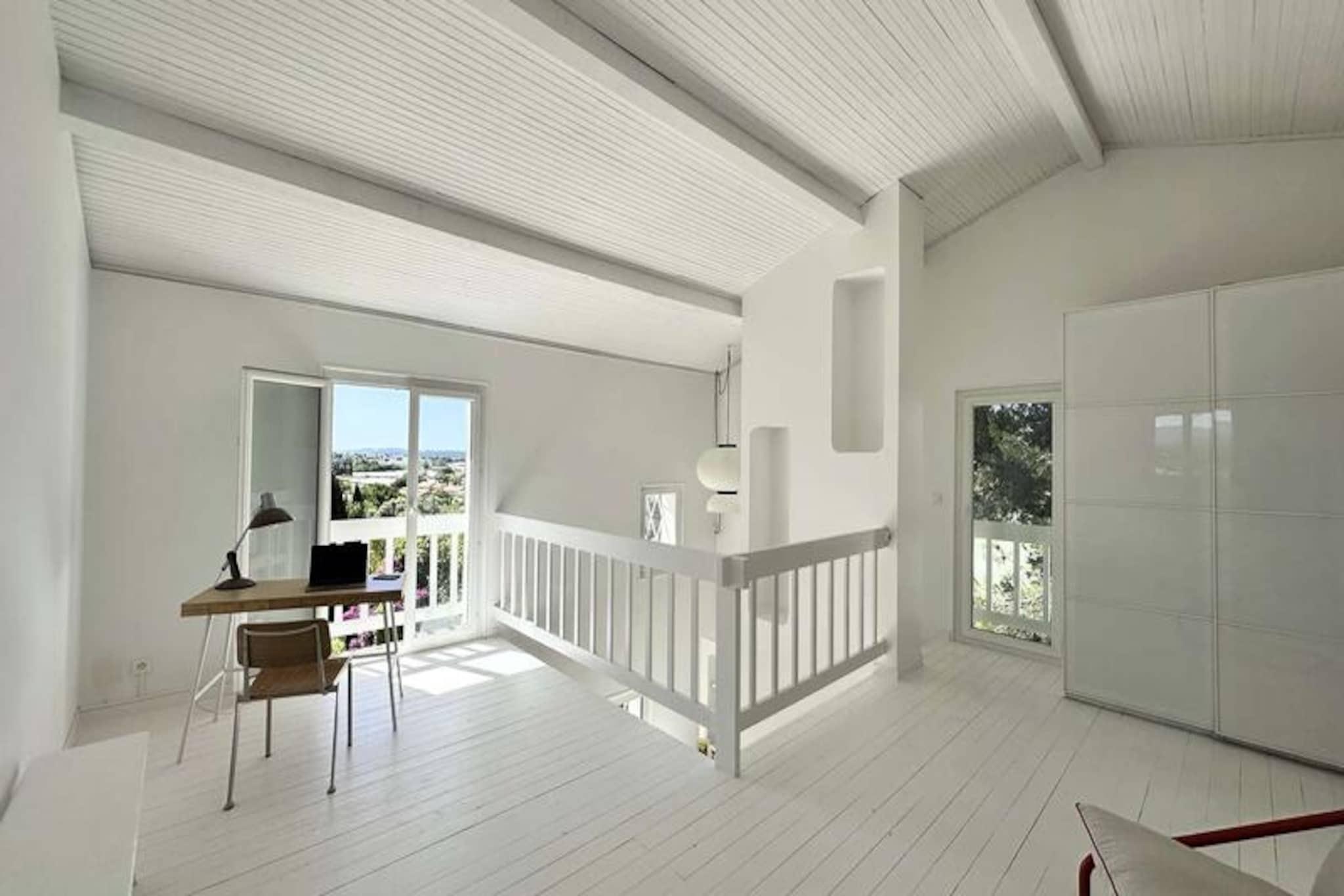Høyt over det glitrende Middelhavet tilbyr denne utsøkte villaen på Costebelle-høyden et rolig tilfluktssted med fantastisk utsikt over Almanarre-bukten, Medes-neset på Porquerolles og det turkise vannet i Îles d'Or. Omgitt av frodig grøntområde og saltmyrer, er dette fredelige tilfluktsstedet det perfekte tilfluktsstedet for familier eller venner som søker en blanding av avslapning og eventyr. Se for deg å våkne opp til lyden av havbrisen og nyte morgenkaffen mens du beundrer panoramautsikten over den franske rivieraen. Stig inn i denne romslige villaen på 135 m², designet for komfort og stil. Hovedetasjen har en vakkert dekorert stue, en spisestue badet i naturlig lys og et fullt utstyrt kjøkken med moderne hvitevarer, perfekt for å tilberede middelhavsinspirerte måltider. Villaen har plass til opptil åtte gjester med fire velutstyrte soverom, inkludert et luksuriøst hovedsoverom med eget bad i øverste etasje med vidstrakt havutsikt. Klimaanlegg overalt sikrer din komfort, mens Wi-Fi og et eget kontorområde gjør det enkelt å holde deg tilkoblet om nødvendig. Utenfor inviterer den anlagte hagen på 1000 m² deg til å slappe av blant den livlige middelhavsfloraen. Eiendommen er sikret med en automatisk port og tilbyr rikelig med parkeringsplasser for flere kjøretøy. Bare noen minutter unna lokker Almanarre-stranden med sin fine sand og krystallklare vann, kjent for vannsport som kitesurfing, windsurfing og paddleboarding. Utforsk kyststien, ta en båttur til Îles d'Or, eller nyt spennende aktiviteter som dykking, parasailing og vannscooterkjøring. For sykkelentusiaster tilbyr Hyères naturskjønne stier som viser frem regionens naturlige skjønnhet. Enten du søker ro eller eventyr, tilbyr denne villaen den perfekte settingen for en uforglemmelig ferie på den franske rivieraen. La sjarmen til Hyères og Middelhavets tiltrekningskraft skape minner som vil vare livet ut.