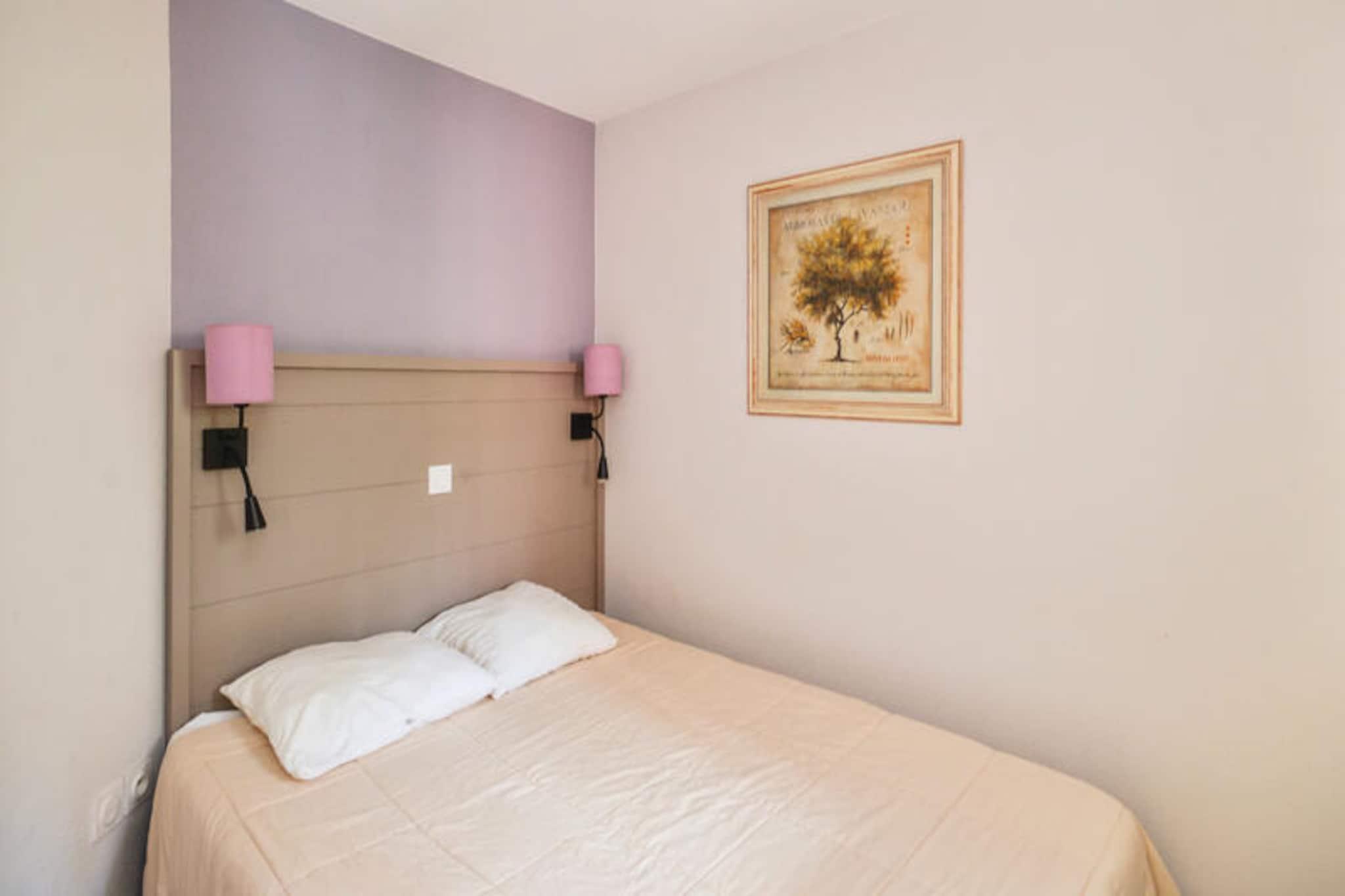 Denne sjarmerende residensen ligger i en frodig 3 hektar stor skogkledd park på en naturskjønn halvøy, og tilbyr et rolig tilfluktssted bare noen skritt fra en sandstrand. Eiendommen har middelhavsinspirert arkitektur og rom med balkong eller terrasse, perfekt for å slappe av i naturen. Hver enhet har en komfortabel stue med to sovesofaer, en med en uttrekkbar seng, og et separat soverom med en dobbeltseng. Gjestene kan nyte tilgang til et felles oppvarmet basseng som er åpent fra mai til oktober, samt sikker parkering. Kjæledyr er velkomne mot en ekstra avgift. Området rundt byr på et vell av aktiviteter og attraksjoner å utforske. Oppdag den sjarmerende landsbyen i nærheten bare 2 km unna, hvor du finner sjarmerende kafeer, lokale markeder og autentiske matopplevelser. For friluftsentusiaster inkluderer alternativene golfbaner, ridesentre, tennisklubber og en rekke vannsporter. Familier vil nyte besøk til nærliggende fritidssentre og en lokal dyrehage, noe som sikrer et morsomt opphold for alle. Hver enhet er utstyrt med et halvåpent kjøkken med viktige hvitevarer, et bad med badekar og et separat toalett. Fasiliteter som Wi-Fi og babysett er tilgjengelig for ekstra bekvemmelighet. Med inkludert sengetøy, naturskjønne omgivelser og gjennomtenkte fasiliteter, tilbyr denne eiendommen en herlig ferie for familier, par eller vennegrupper.