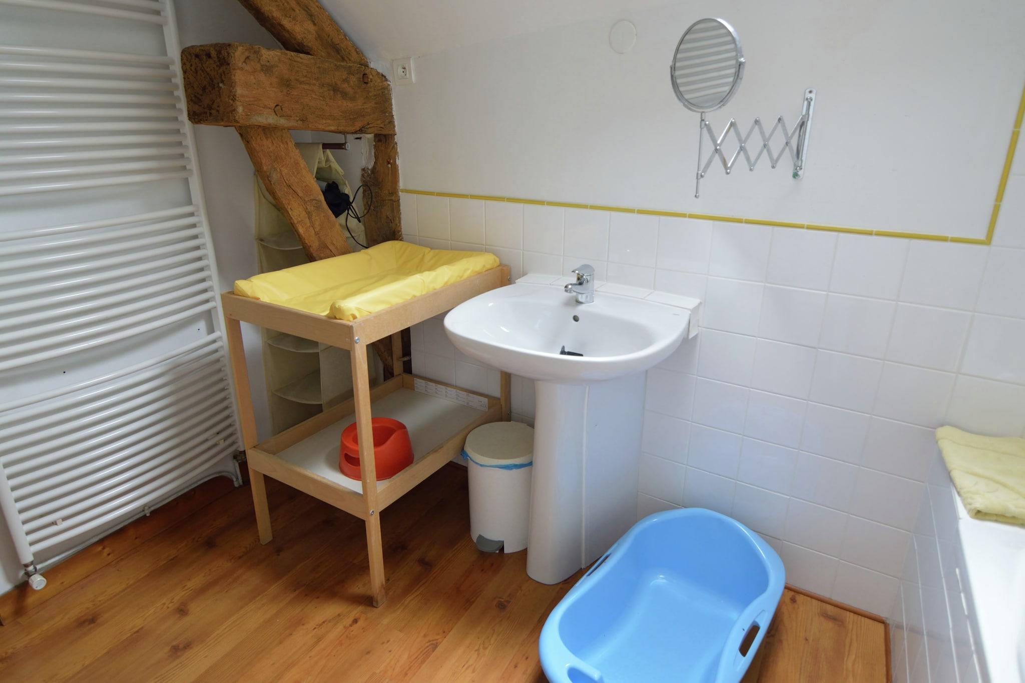 Flykt til dette sjarmerende feriehuset i Le Mesnil-Boeufs, et rolig tilfluktssted på landsbygda perfekt for familier eller par som søker fred og natur. Hjemmet har en privat opplyst hage med et stort utendørsbord, en terrasse med naturskjønn utsikt og en grill - ideell for avslappende kvelder under stjernehimmelen. Inne kan du nyte koselig oppvarming, peis og gjennomtenkte fasiliteter, inkludert WiFi, hårføner, røykvarsler, sengetøy, håndklær og kjøkkenhåndklær. En barneseng og barnestol er tilgjengelig, og ett kjæledyr er velkommen mot en liten avgift (EURO30/opphold). Privat parkering sikrer bekvemmelighet under hele besøket. Boligen ligger kun 3 km fra supermarkeder, 7 km fra god mat og 5 km fra sentrum, og tilbyr enkel tilgang til nødvendigheter og lokal sjarm. Nærliggende attraksjoner inkluderer et offentlig svømmebasseng (7 km), fornøyelsespark, slott og golfbaner - perfekt for dagsturer. Den nærmeste flyplassen ligger 95 km unna, noe som gjør dette til en godt forbundet, men likevel rolig base for å utforske Normandie. Enten du krøller deg sammen ved bålet eller nyter et solnedgangsmåltid i hagen, lover dette hjemmet en avslappende og foryngende flukt.