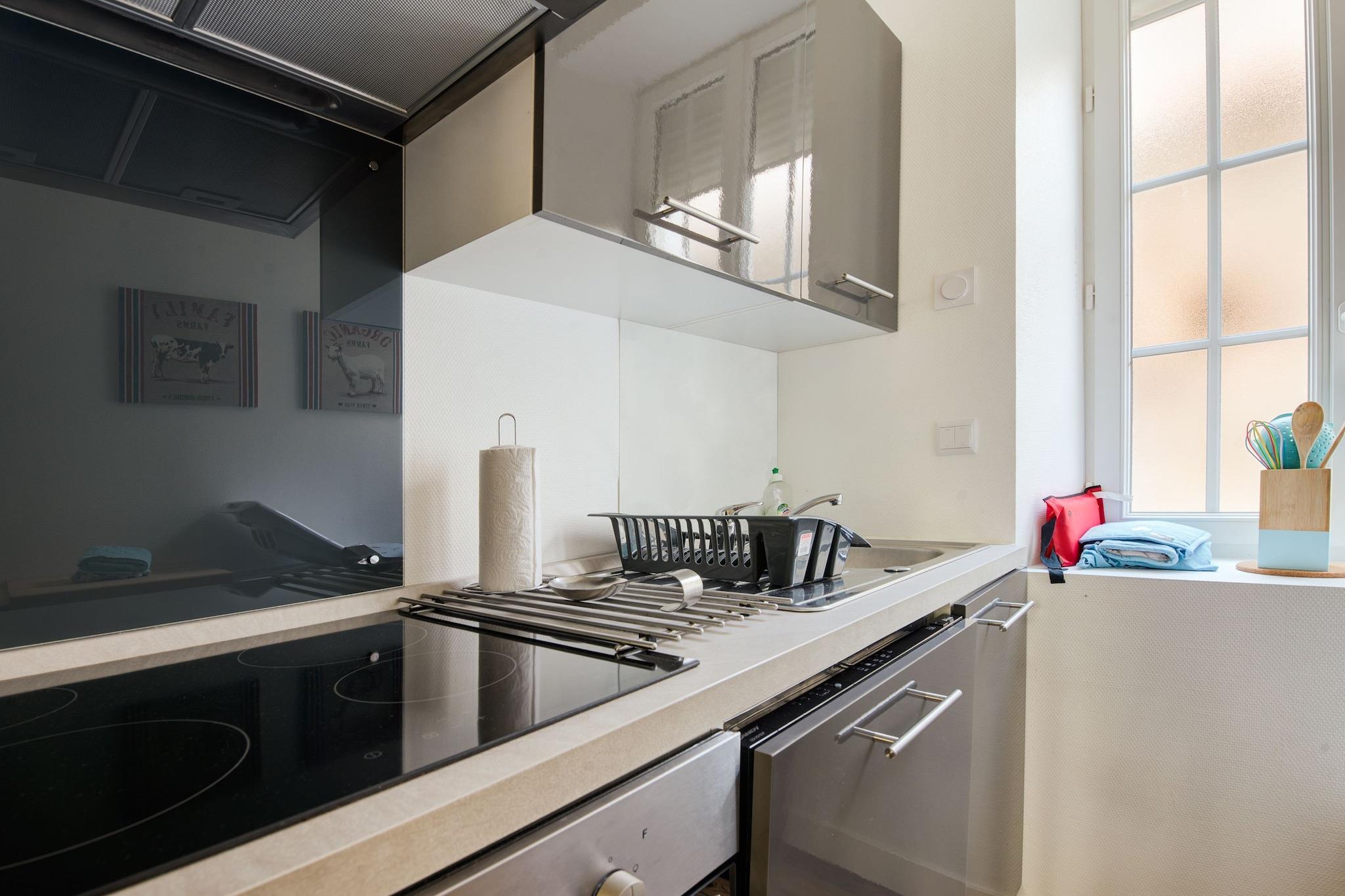 Flytt med partneren din til denne sjarmerende, moderne leiligheten i hjertet av Isigny-sur-Mer. Ligger nær sjøen i Cotentin og Bessin Marshes-parken, og tilbyr en lykkelig rolig setting der morgener begynner med fuglesang og mild bris. Leilighetens lyse interiør og stilige design skaper et perfekt tilfluktssted for en romantisk ferie, med en terrasse som inviterer til grillmiddager under stjernene. Sentralt plassert, vender hjemmet mot havnen og ligger innen gangavstand fra herlige butikker og sjarmerende restauranter. Omfavn den lokale ånden med et besøk til den kjente karamellfabrikken og utforsk nærliggende ridestier eller slapp av ved det offentlige svømmebassenget kun 3 km unna. Enten du leter etter en fredelig ferie eller en eventyrlig ferie, tilbyr dette stedet en herlig balanse mellom begge. Kjøkkenet med åpen planløsning er fullt utstyrt, slik at du kan lage favorittmåltidene dine, mens hagemøbler gir komfort til dine rolige ettermiddager. Et depositum på 200 EURO kreves på stedet, og gjestene bes om å samle brukt sengetøy og kaste søppel før avreise. Caen - Carpiquet flyplass ligger i underkant av en time unna, noe som sikrer enkel tilgang til denne lommen av paradis.
