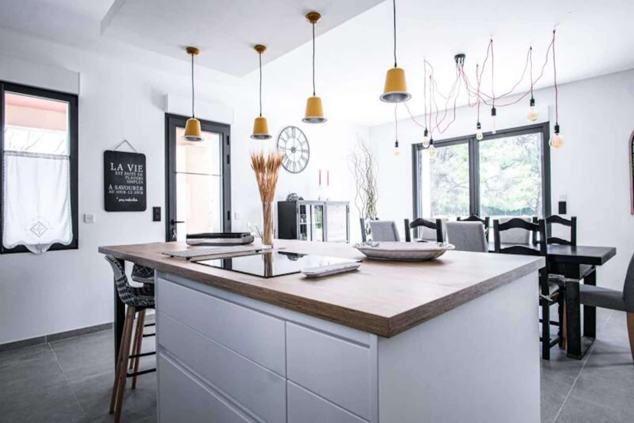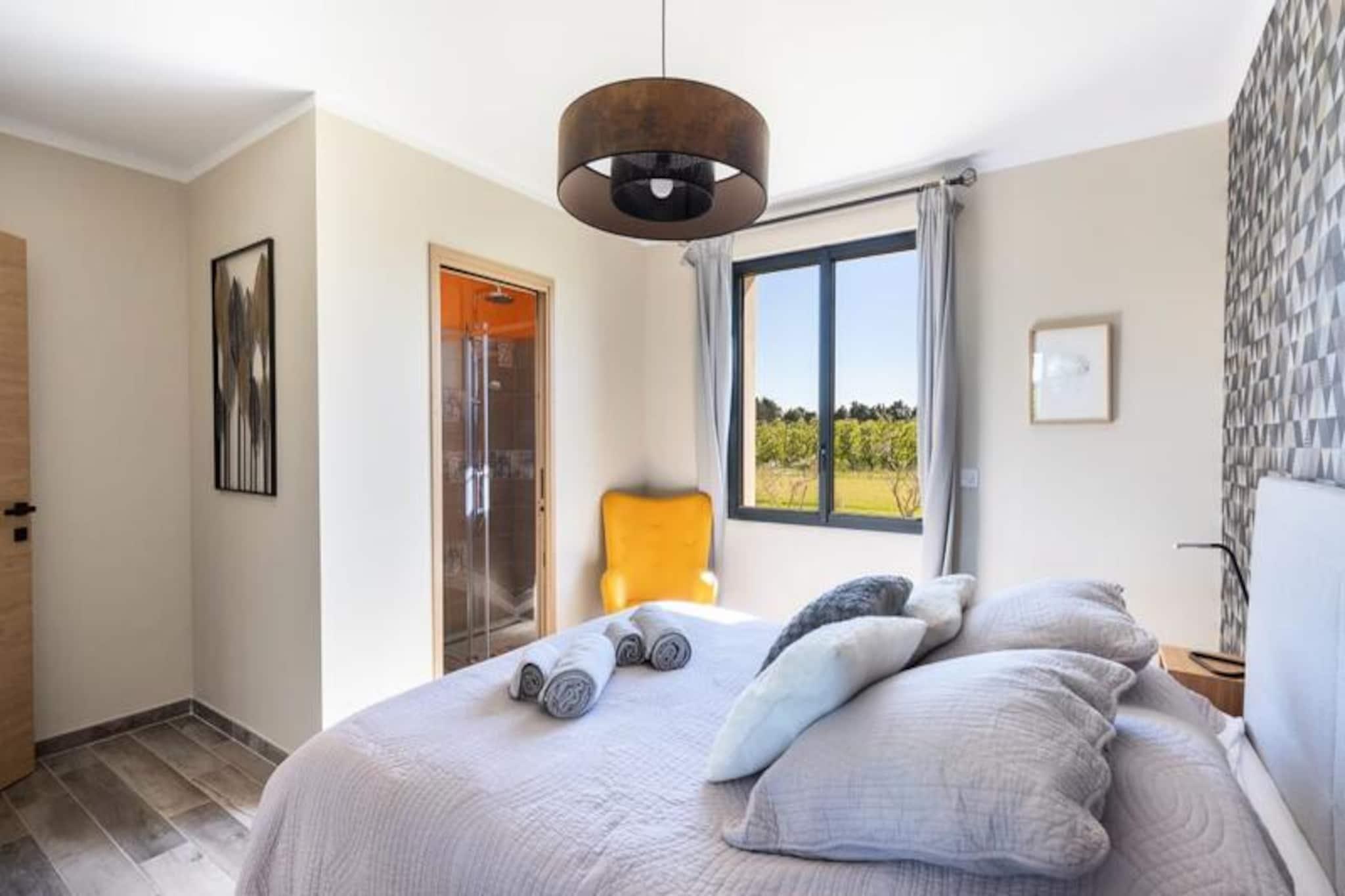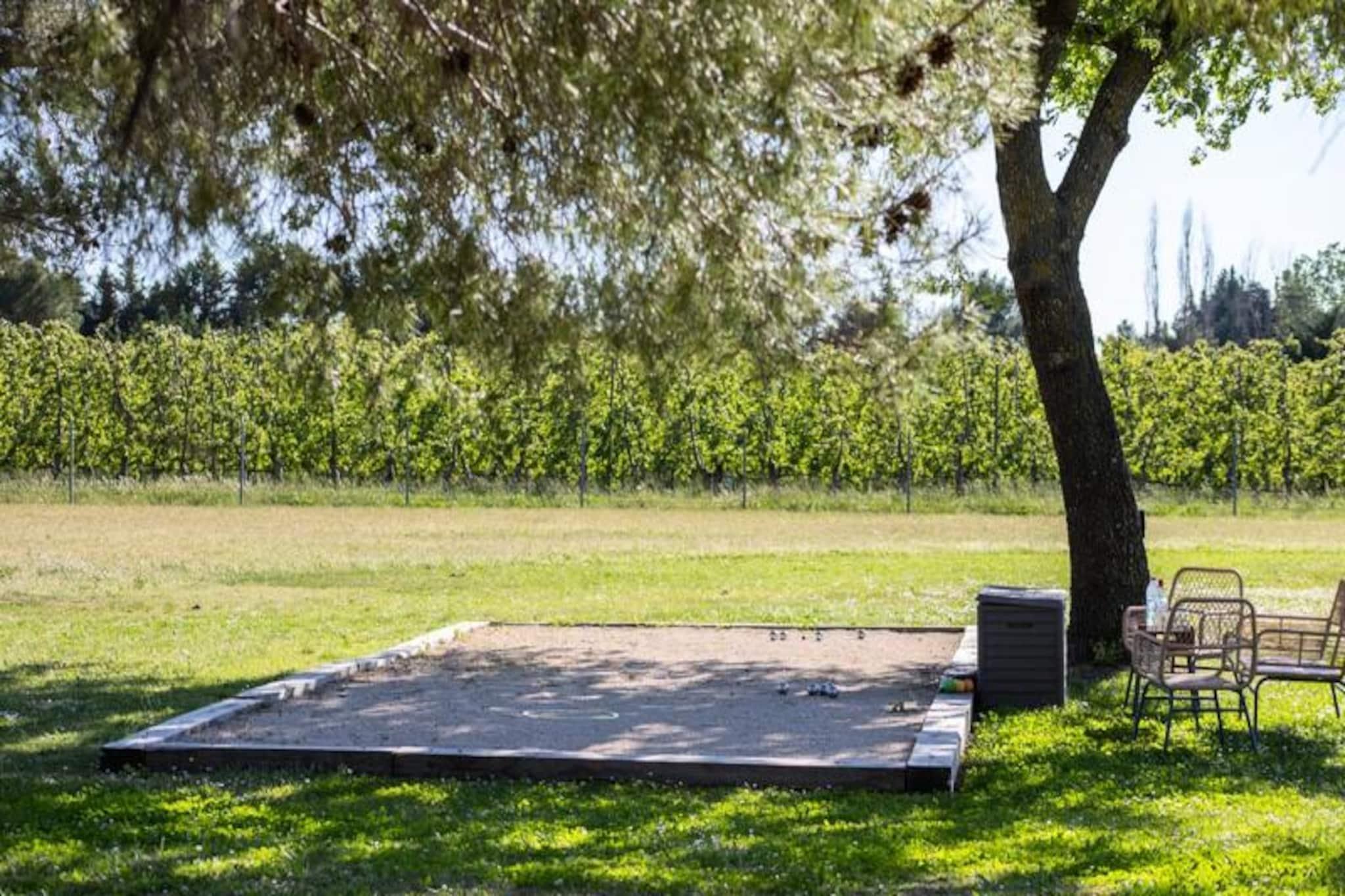 Dette renoverte, moderne feriehuset tilbyr et avslappende opphold i Provence, perfekt for opptil ?tte gjester. Eiendommen p? 150 m² inkluderer fire soverom og tre bad, med to soverom og to bad praktisk plassert i f?rste etasje for tilgjengelighet. Et fullt utstyrt kj?kken og en romslig spisestue/stue gj?r den ideell for familie- eller gruppeopphold. Hjemmet har et privat sv?mmebasseng, grill, fluktstoler, et bordtennisbord og en bowlinghall, noe som sikrer mye utend?rs moro. Sm? kj?ledyr er velkomne. Overnattingsstedet har en fredelig beliggenhet p? landet, og kan skilte med praktfull utsikt over ving?rdene og en kort kj?retur fra Provences attraksjoner du m? se. Isle-sur-la-Sorgue, med sine pulserende proven?alske markeder og antikvitetsbutikker, ligger bare noen minutter unna, mens Fontaine-de-Vaucluse og de sjarmerende landsbyene Luberon ligger under 15 minutter. Alpilles-regionen og strendene ved Blue Coast er lett tilgjengelige. Aktiviteter som kanopadling, vinsmaking, fotturer og utforsking av Colorado Proven?al er i n?rheten. Ytterligere fasiliteter inkluderer en 18-hulls golfbane og enkel tilgang til Isle-sur-la-Sorgues SNCF-stasjon. Sen ankomst er tilgjengelig mot en avgift, og sv?mmebassenget er ?pent fra mai til september. Et depositum p? EURO1000 kreves 10 dager f?r ankomst via en sikker plattform.