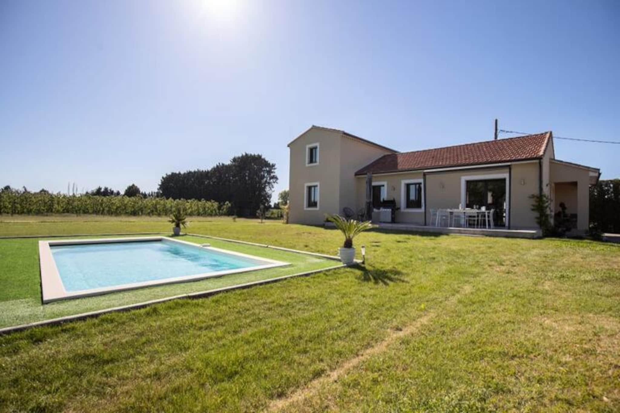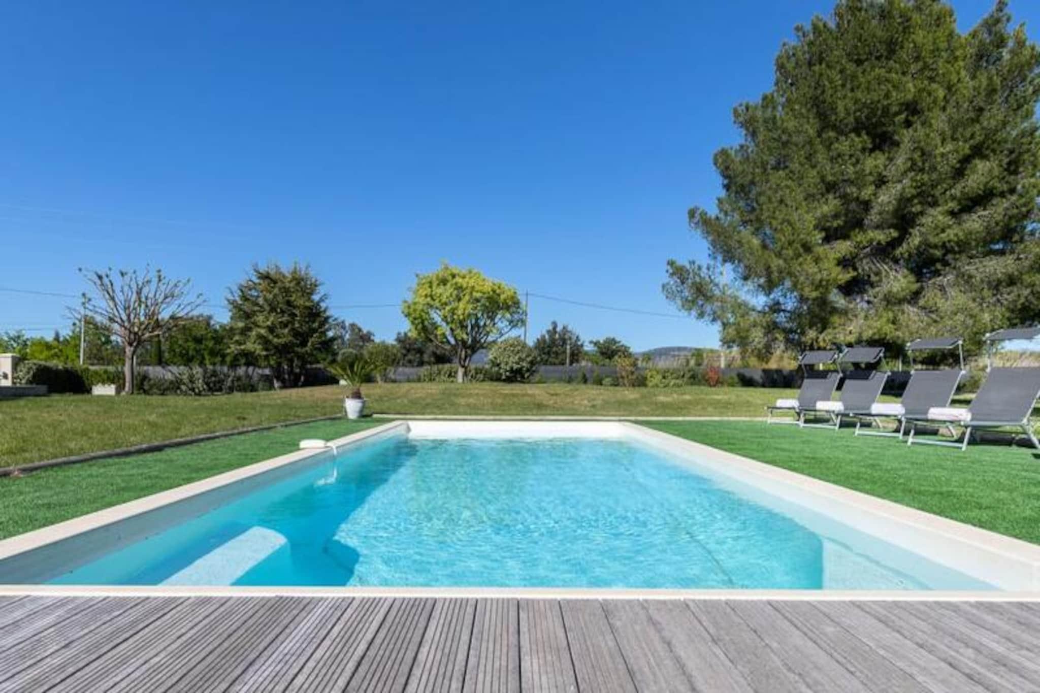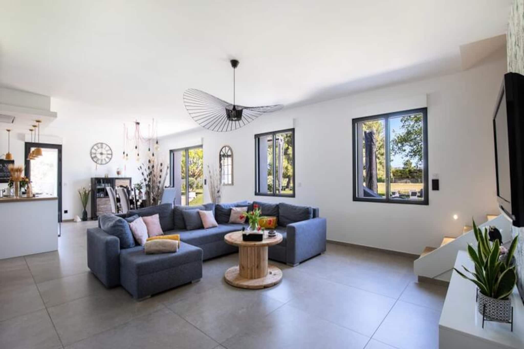 Dette renoverte, moderne feriehuset tilbyr et avslappende opphold i Provence, perfekt for opptil ?tte gjester. Eiendommen p? 150 m² inkluderer fire soverom og tre bad, med to soverom og to bad praktisk plassert i f?rste etasje for tilgjengelighet. Et fullt utstyrt kj?kken og en romslig spisestue/stue gj?r den ideell for familie- eller gruppeopphold. Hjemmet har et privat sv?mmebasseng, grill, fluktstoler, et bordtennisbord og en bowlinghall, noe som sikrer mye utend?rs moro. Sm? kj?ledyr er velkomne. Overnattingsstedet har en fredelig beliggenhet p? landet, og kan skilte med praktfull utsikt over ving?rdene og en kort kj?retur fra Provences attraksjoner du m? se. Isle-sur-la-Sorgue, med sine pulserende proven?alske markeder og antikvitetsbutikker, ligger bare noen minutter unna, mens Fontaine-de-Vaucluse og de sjarmerende landsbyene Luberon ligger under 15 minutter. Alpilles-regionen og strendene ved Blue Coast er lett tilgjengelige. Aktiviteter som kanopadling, vinsmaking, fotturer og utforsking av Colorado Proven?al er i n?rheten. Ytterligere fasiliteter inkluderer en 18-hulls golfbane og enkel tilgang til Isle-sur-la-Sorgues SNCF-stasjon. Sen ankomst er tilgjengelig mot en avgift, og sv?mmebassenget er ?pent fra mai til september. Et depositum p? EURO1000 kreves 10 dager f?r ankomst via en sikker plattform.