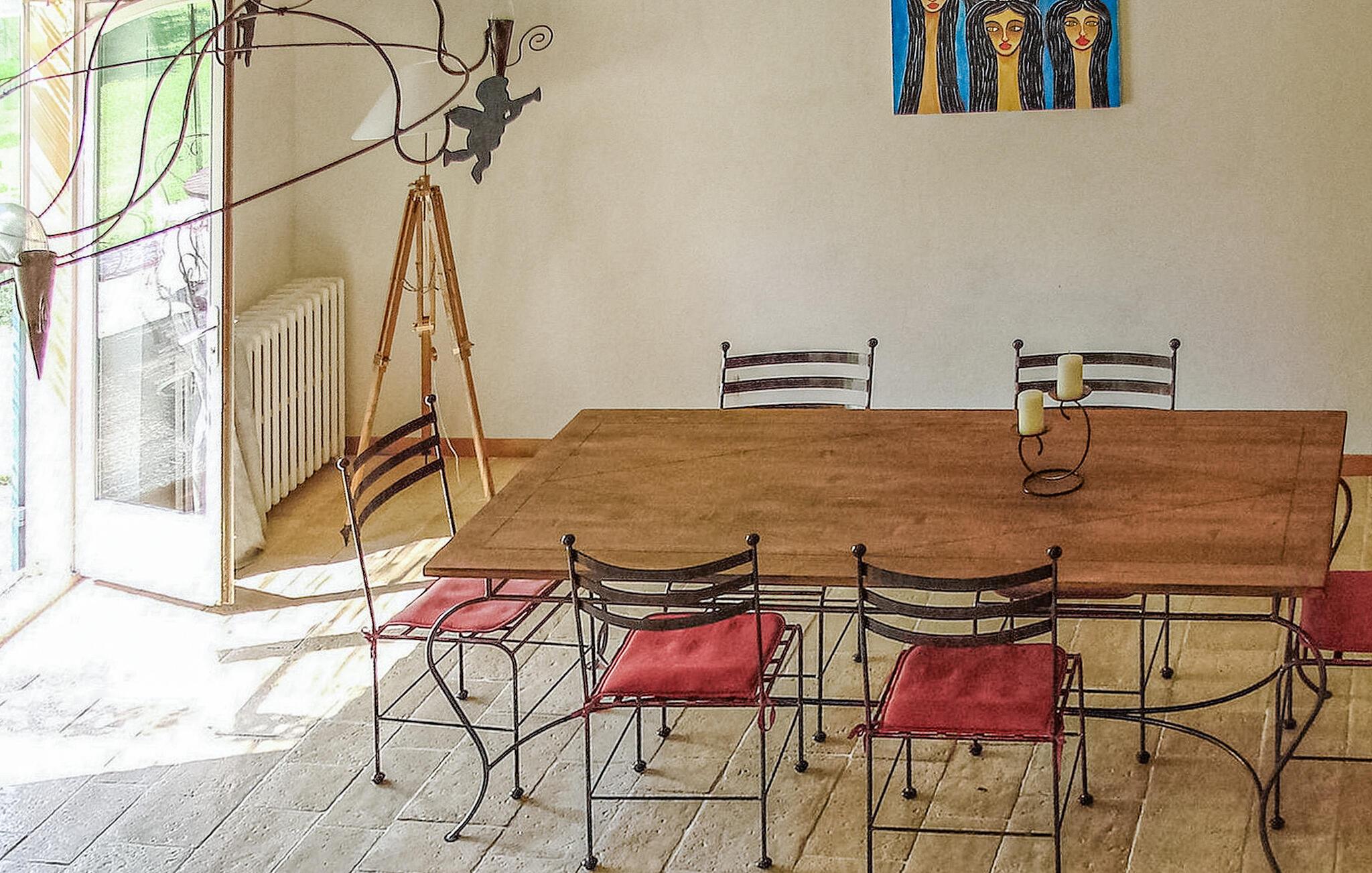 Oppdag dette sjarmerende feriehuset i hjertet av Périgord i Dordogne. Dette fredelige feriehuset ligger mellom Beaumont (8 km) og Issigeac (6 km), omgitt av vidstrakte jorder og skoger. Huset har en romslig første etasje med en stor stue, et åpent kjøkken, to koselige soverom og to bad. Gå opp tretrappen med smijernsrekkverk for å nå ytterligere to soverom i andre etasje. Utendørsfasilitetene omfatter en terrasse, en lekeplass med bordfotball, bordtennis og badminton. Det inngjerdede bassenget på 11 x 6 meter deles med eierne, som bruker det av og til om morgenen og kvelden. Den asfalterte terrassen med pergola er et skyggefullt sted å slappe av. Huset ligger i et rolig og fredelig nabolag på landsbygda. De nærmeste butikkene (bakeri, dagligvarebutikk, restauranter) ligger i Beaumont (8 km) eller Issigeac (6 km). Nyt ferien i et hus, din ferieleilighet, i Dordogne i Quercy - Périgord. Merk: Eierne bor på samme eiendom i et separat hus. Bassenget deles med eierne, som jobber om dagen og av og til bruker bassenget om morgenen og kvelden. Tilgangen til andedammen (2 m x 3 m) er fullstendig sikret. Under oppholdet kan du få hilse på eiernes vennlige hunder.
