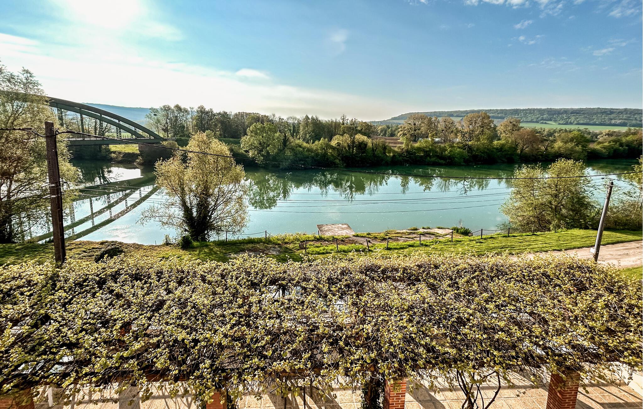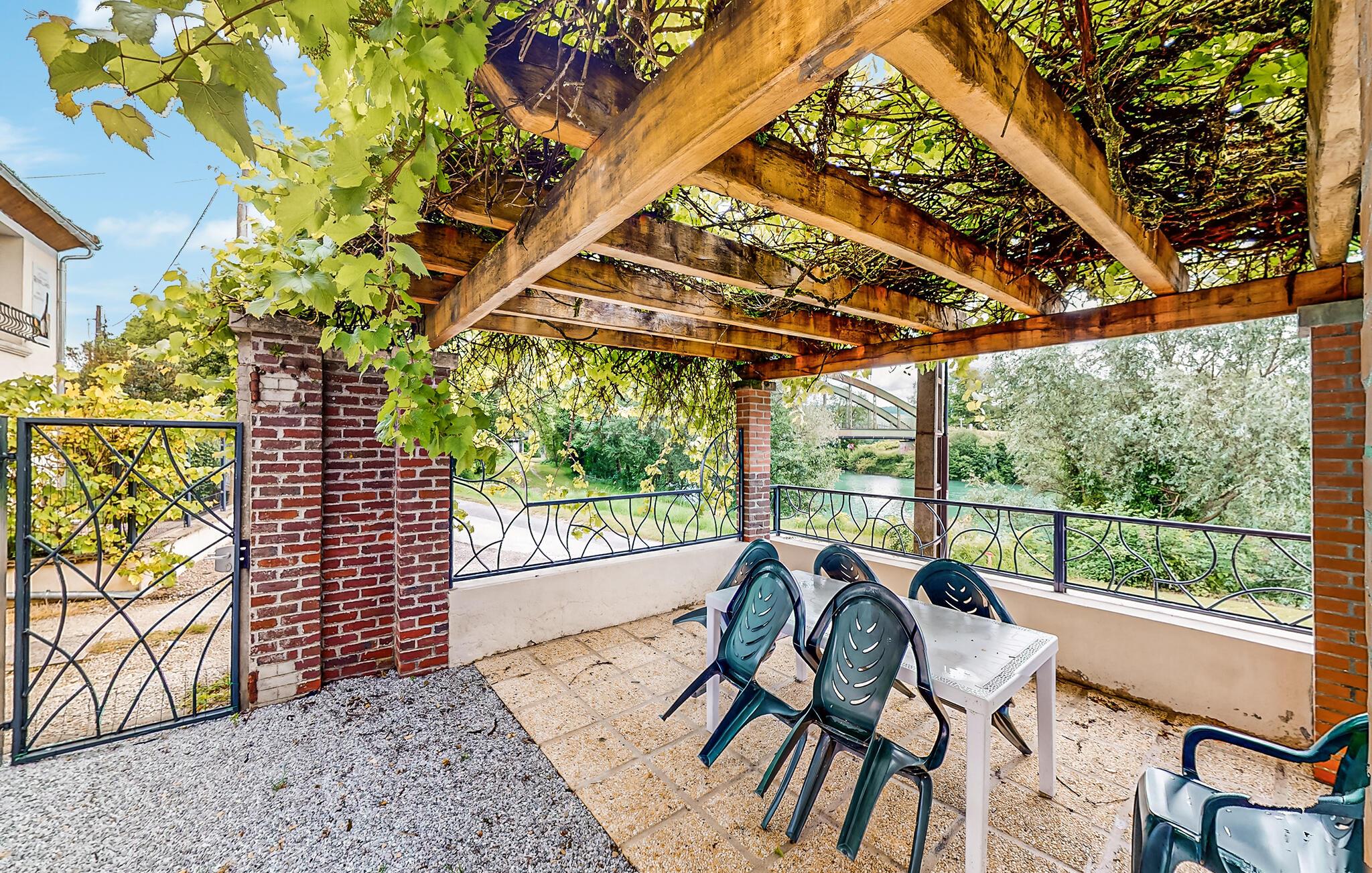 Uteplassen, som tilhører denne ferieleiligheten, vender ut mot en felles terrasse og gir deg en fantastisk utsikt over elven Marne og vinmarkene bortenfor.