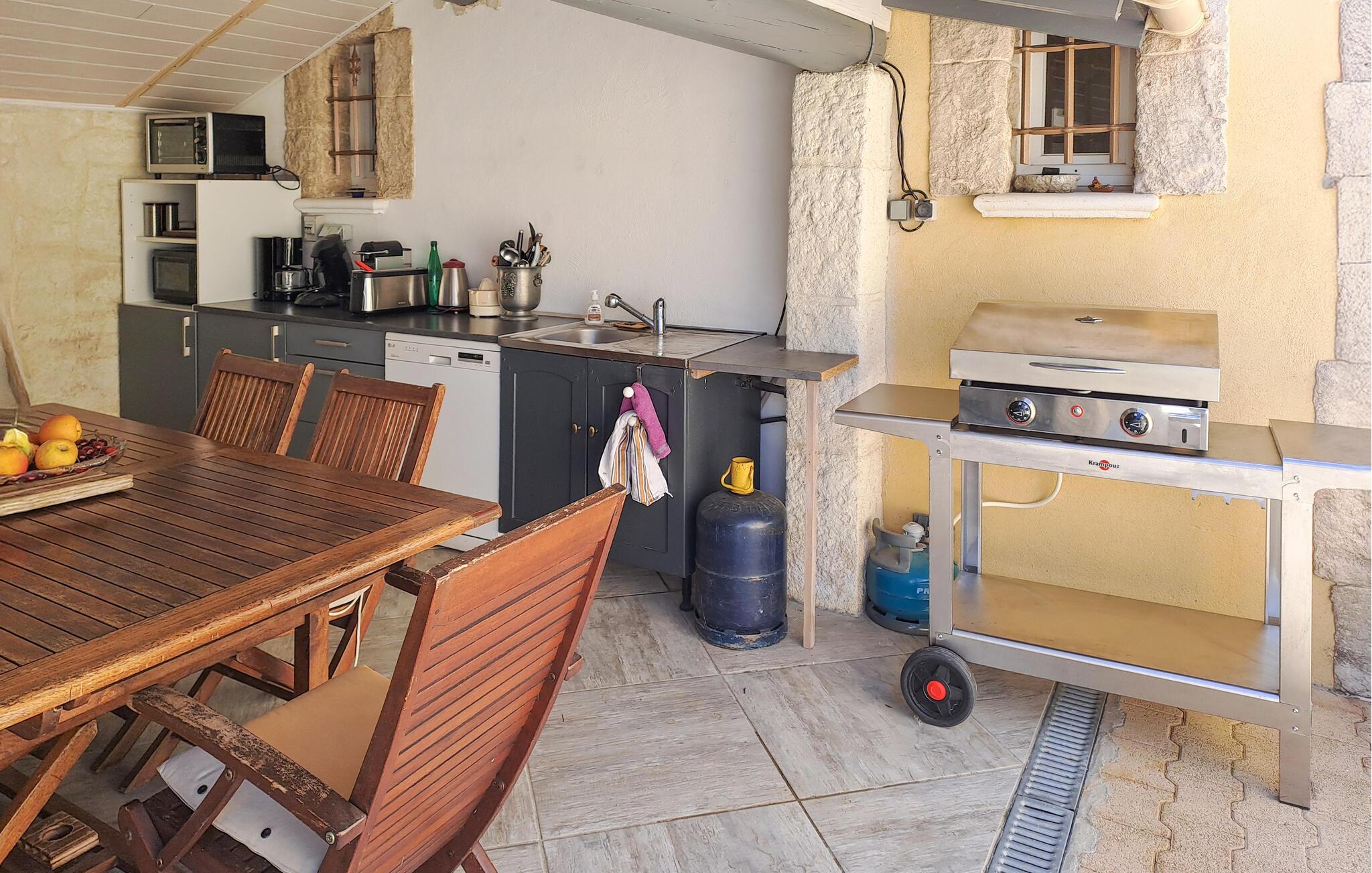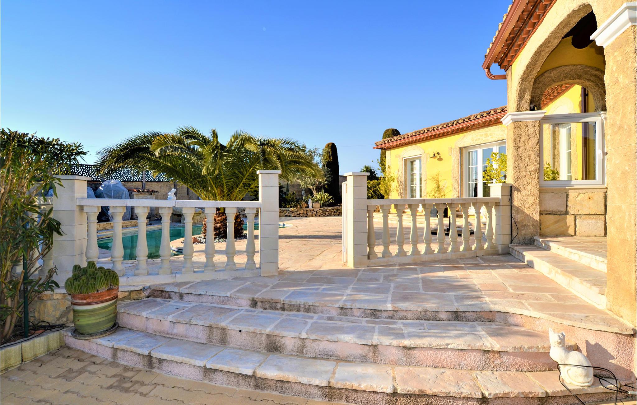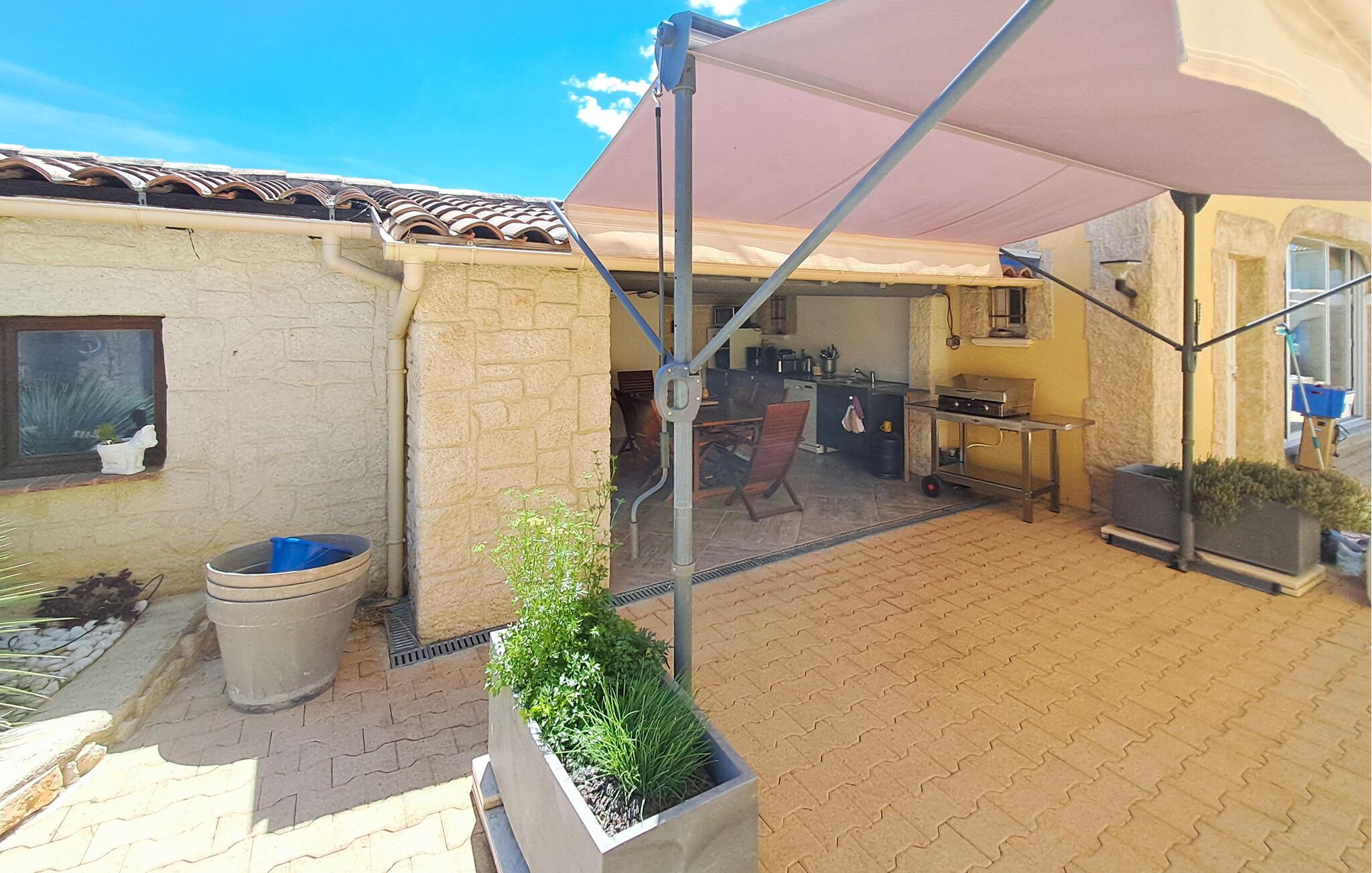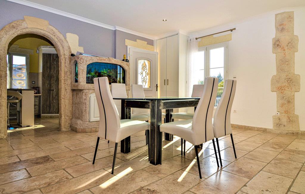 Her venter deg et fantastisk romslig feriehus med flere aktivitetsmuligheter for deg og vennene dine. I den store flislagte stuen med sine slående steinvegger kan du tilbringe tid sammen og nyte spennende samtaler eller spille spill. I aktivitetsrommet finner du et biljardbord og en bar hvor du kan tilbringe kveldene. Utenfor finner du et utekjøkken og grill, samt et basseng omgitt av solsenger, hvor du kan sole deg og slappe av for å holde deg gående gjennom dagen.