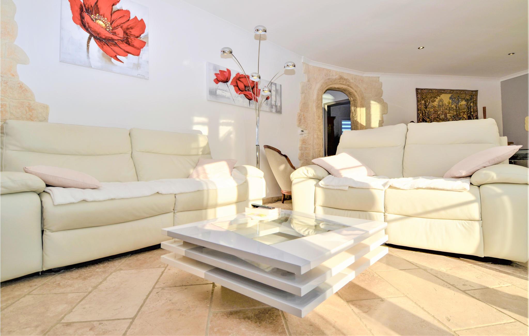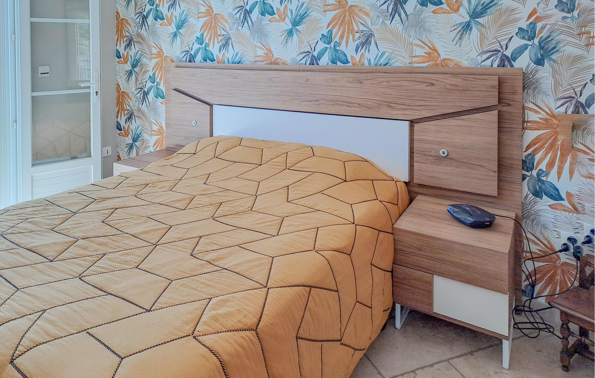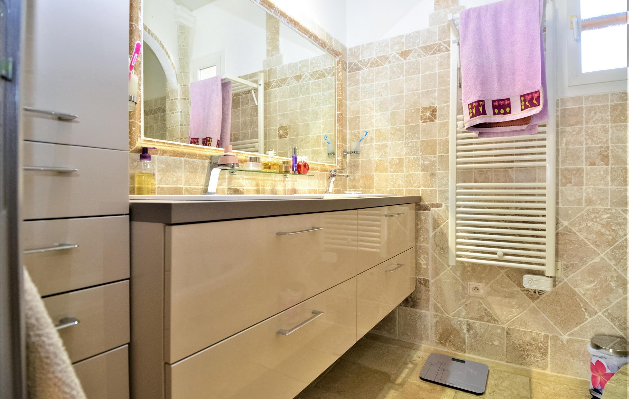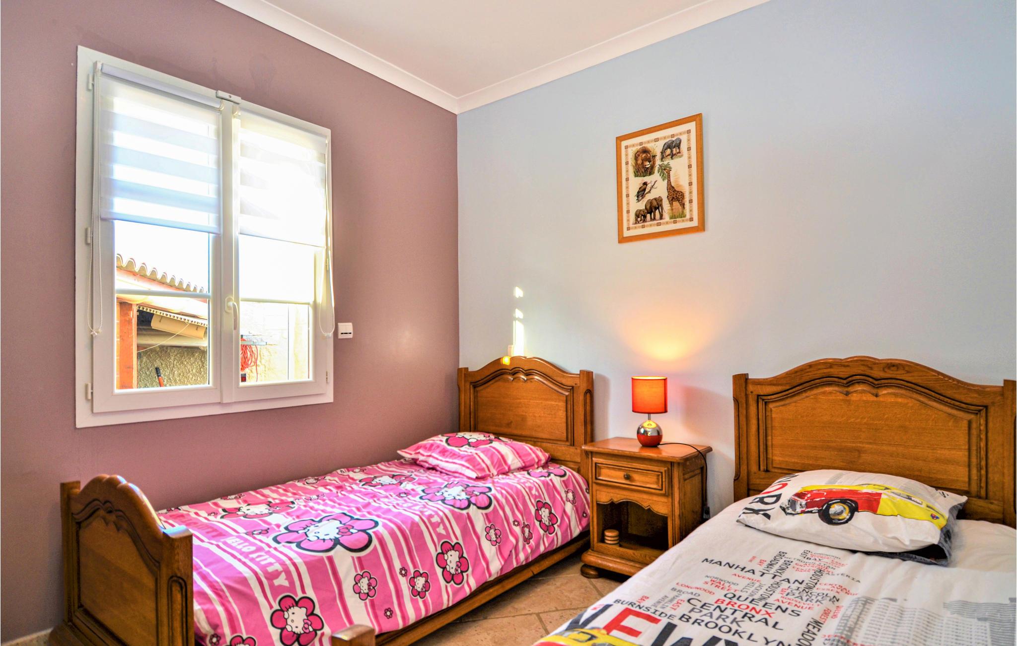 Her venter deg et fantastisk romslig feriehus med flere aktivitetsmuligheter for deg og vennene dine. I den store flislagte stuen med sine slående steinvegger kan du tilbringe tid sammen og nyte spennende samtaler eller spille spill. I aktivitetsrommet finner du et biljardbord og en bar hvor du kan tilbringe kveldene. Utenfor finner du et utekjøkken og grill, samt et basseng omgitt av solsenger, hvor du kan sole deg og slappe av for å holde deg gående gjennom dagen.