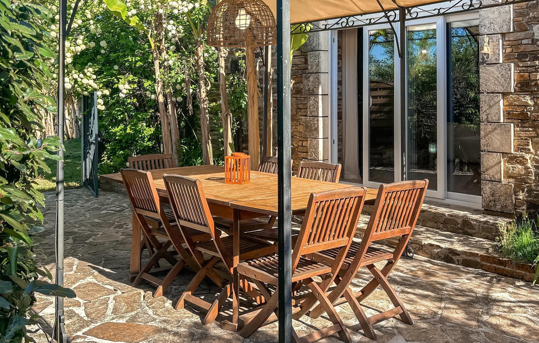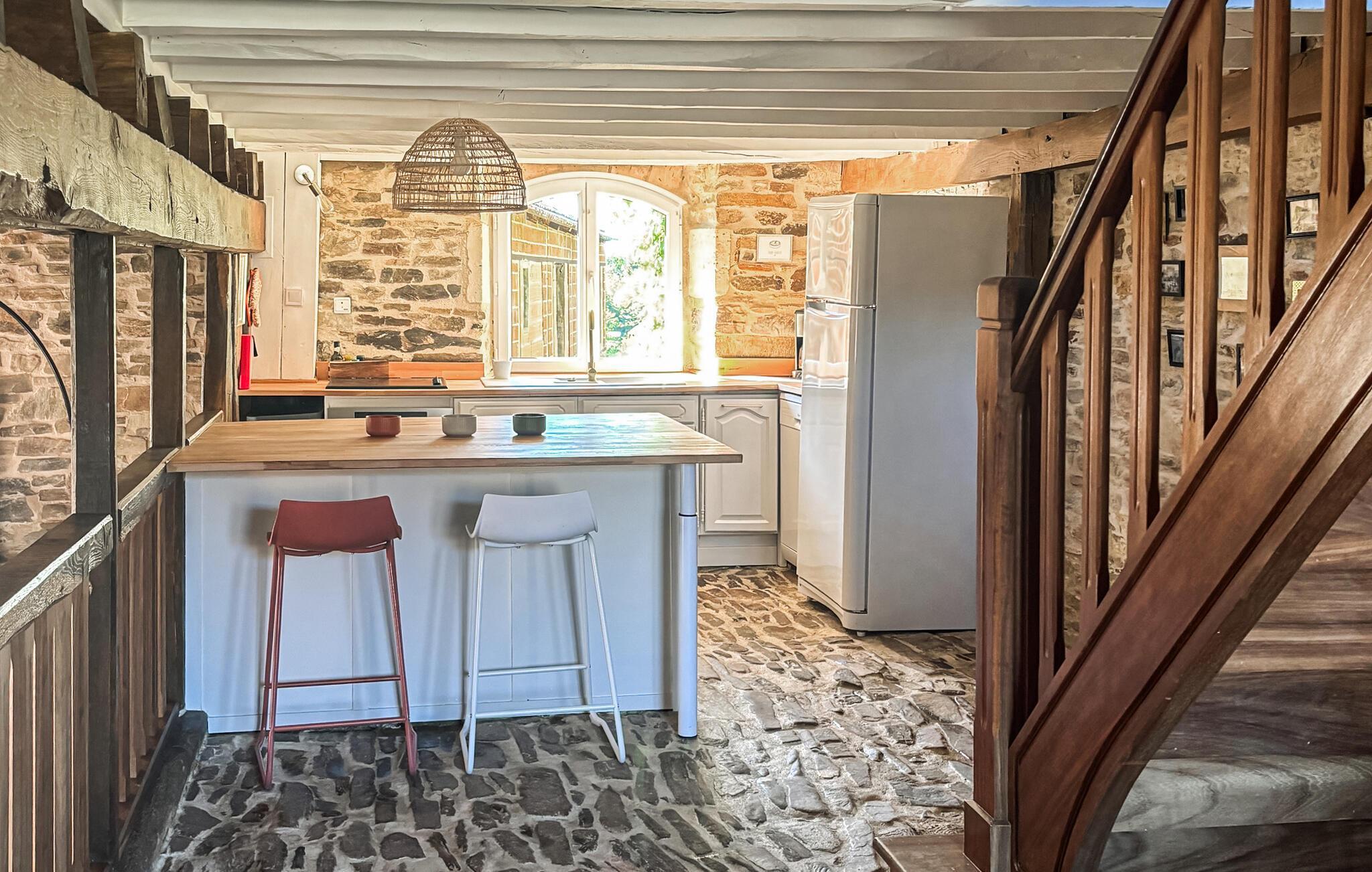I naturparken Pérgord-Limousin, i utkanten av landsbyen Jumilhac, ligger dette feriehuset. Det er en del av en gård og har utsikt over det vakre landskapet. Fra bassenget i hagen har du en vakker utsikt, og inne finner du et godt innredet hus med sjarm, steingulv og lav takhøyde. På terrassen skaper banantrærne den perfekte atmosfæren. Siden du er på en gård, har du utsikt over beitende sauer. Det er plass til opptil 10 personer i dette feriehuset.