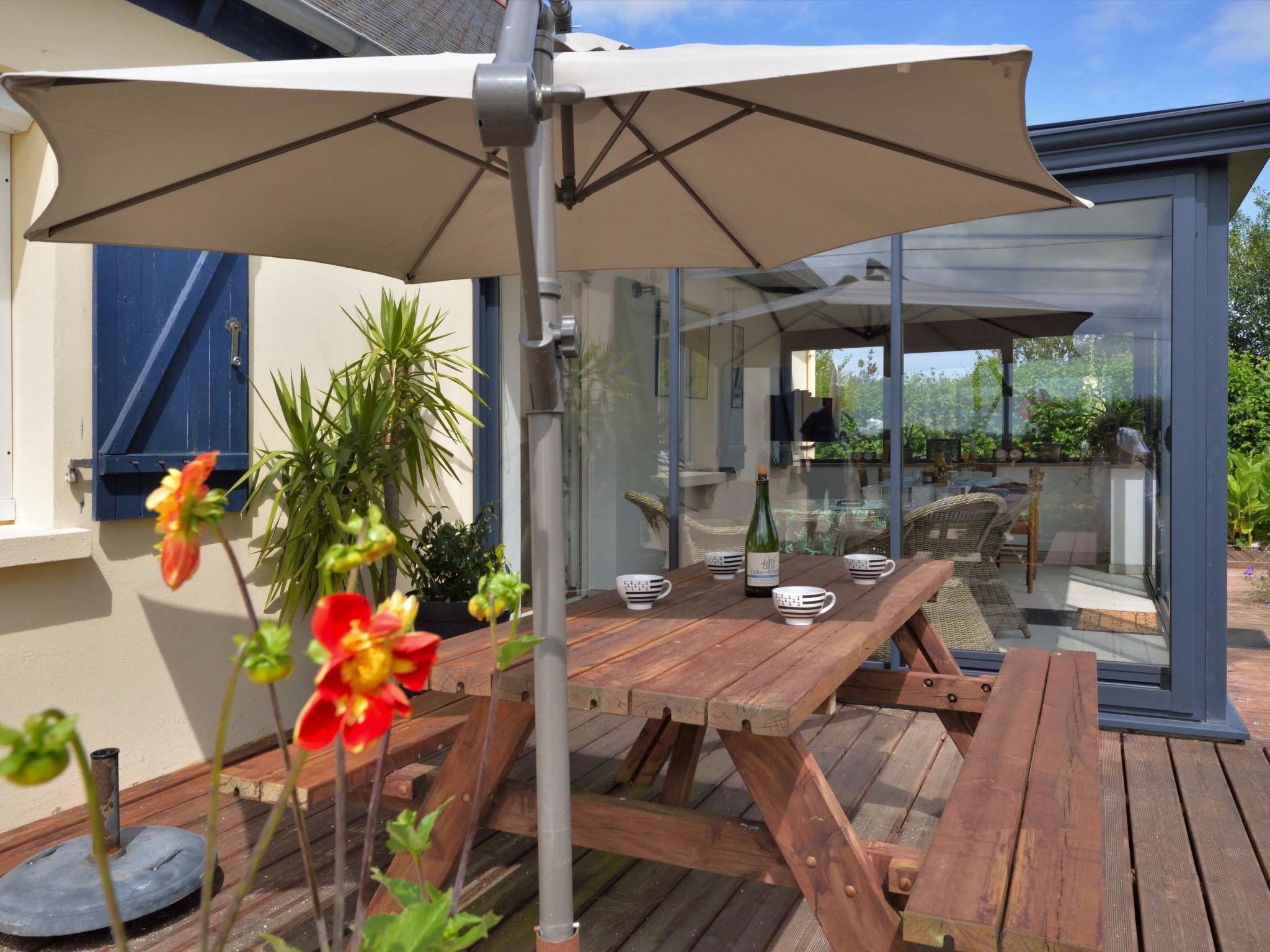 Single-family house "La Roseraie", surrounded by meadows and fields. 3 km from the centre of Kerbors, 6 km from the centre of Pleubian, outside the resort, 6 km from the centre of Tréguier, in a quiet position, 4 km from the sea, 4 km from the beach, 800 m from the river. Private: beautiful garden 3'000 m2 (not fenced) with lawn and trees. In the house: storage room for bicycles. Parking on the premises, single garage. Grocery 3 km, supermarket 6 km, restaurant 3 km, bus stop 6 km, sandy beach 4 km. Nearby attractions: Sillon de Talbert 11 km, Plougrescant 13 km, Château de la Roche-Jagu 15 km, Paimpol 17 km, Pontrieux 16 km, Ile de Bréhat. Hiking paths: GR34 500 m.
