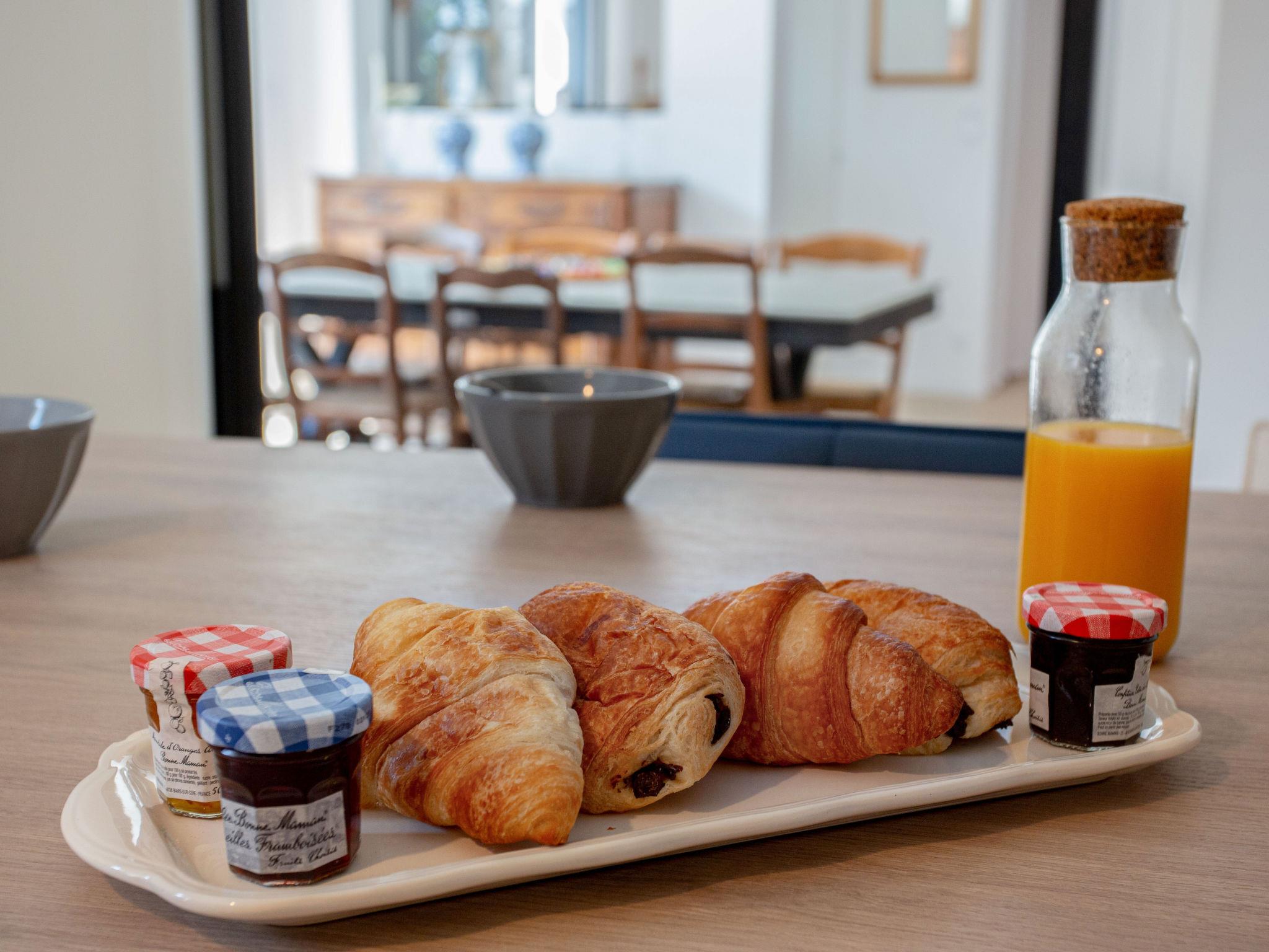 Beautiful villa "Ker Rohan", 2 storeys, built in 2022, surrounded by trees. In the resort 1 km from the centre of la Bernerie en Retz, excellent location: right in the centre but still quiet, 300 m from the sea, 300 m from the beach, south-west facing position. Private: property 800 m2 (fenced), well-kept garden, swimming pool angular, heated (6 x 3 m, depth 30 - 150 cm, seasonal availability: 15.Jun. - 15.Sep.) with internal staircase and shutter cover. Terrace, garden furniture, barbecue, parking (for 2 cars) on the premises, single garage. Shop 1 km, restaurant 1 km, bakery 1 km, 10 minute walk to the centre, bus stop "Bourg de la Bernerie en Retz" 1 km, railway station "La Bernerie en Retz" 2 km, sandy beach "Plage de Creve Coeur" 300 m, thermal baths "Alliance Pornic Thalasso & Spa" 8 km. Sports harbour 6 km, golf course (18 hole) 9 km, minigolf 9 km. Nearby attractions: Plan d'Eau de la Bernerie 1.5 km, Pornic 6 km, Planète Sauvage 27 km, Nantes 48 km, La Baule 48 km, Ile de Noirmoutier 54 km. Well-known lakes can easily be reached: Lac de Saint Viaud 21 km. Hiking paths: Sentier des Douaniers 100 m. Please note: baby equipment (included). The owner does not accept any youth groups. Part of the house is closed and unoccupied.