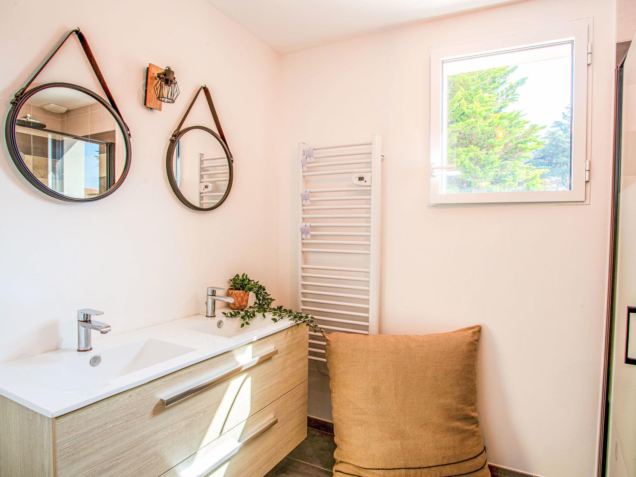 "Ker Rohan", 6-room villa 170 m2 on 2 levels, south-west facing position. Beautiful and modern furnishings: large living/dining room with TV (flat screen), CD-player and DVD. Exit to the terrace, to the swimming pool. 1 room with 1 french bed (1 x 160 cm, length 200 cm), shower. Exit to the terrace. Large kitchen (oven, dishwasher, 4 induction hot plates, toaster, kettle, microwave, freezer, electric coffee machine, Capsules for coffee machine (Nespresso) extra, cooking island). Sep. WC. Upper floor: 2 rooms, each room with 2 beds (90 cm, length 190 cm). 1 room with 1 bed (90 cm, length 190 cm), 1 french bed (1 x 130 cm, length 190 cm). 1 room with 1 french bed (1 x 160 cm, length 200 cm). Bath/shower, sep. WC, double hand-basin. Underfloor heating. Large terrace. Terrace furniture, barbecue, deck chairs (4). Facilities: washing machine, dryer, safe, iron, baby cot for up to 2 year olds, hair dryer. Internet (WiFi, free). Parking (fenced 2 cars), garage (1 car). Please note: suitable for families. Non-smoking house. Maximum 2 pets/ dogs allowed. Smoke alarm. Offer by a private individual according to Art. 155, IV of CGI. 44012000307VP