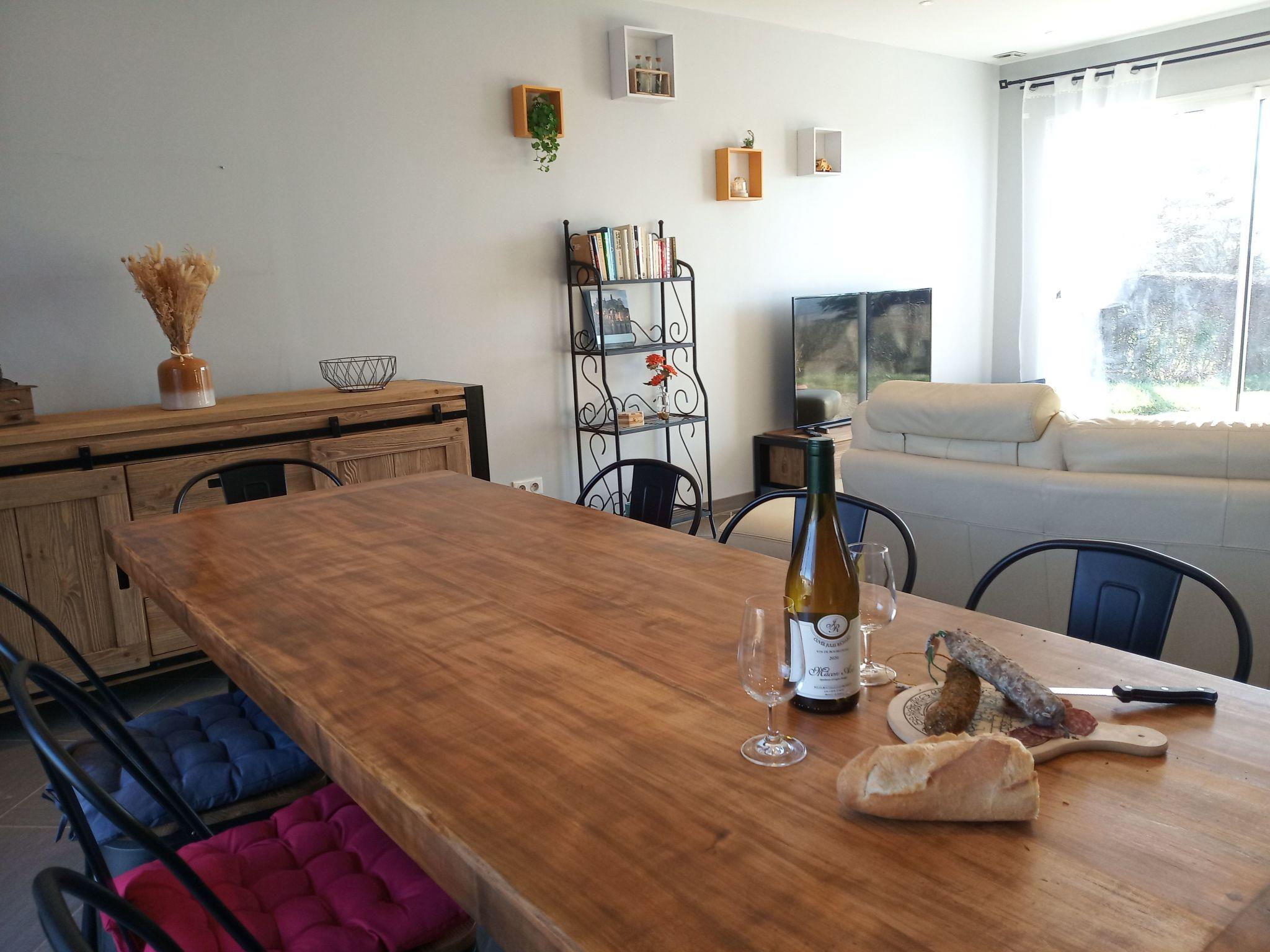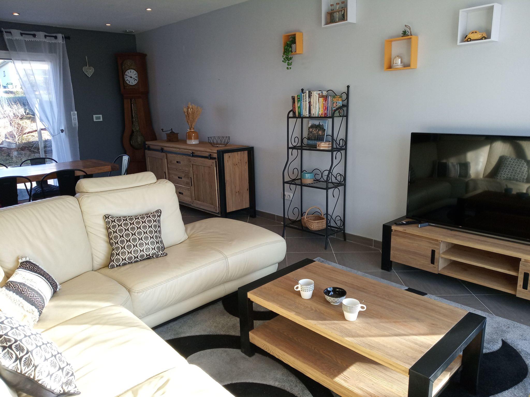 - a large living room with open-plan, well-equipped kitchen (fridge/freezer, dishwasher, etc.),