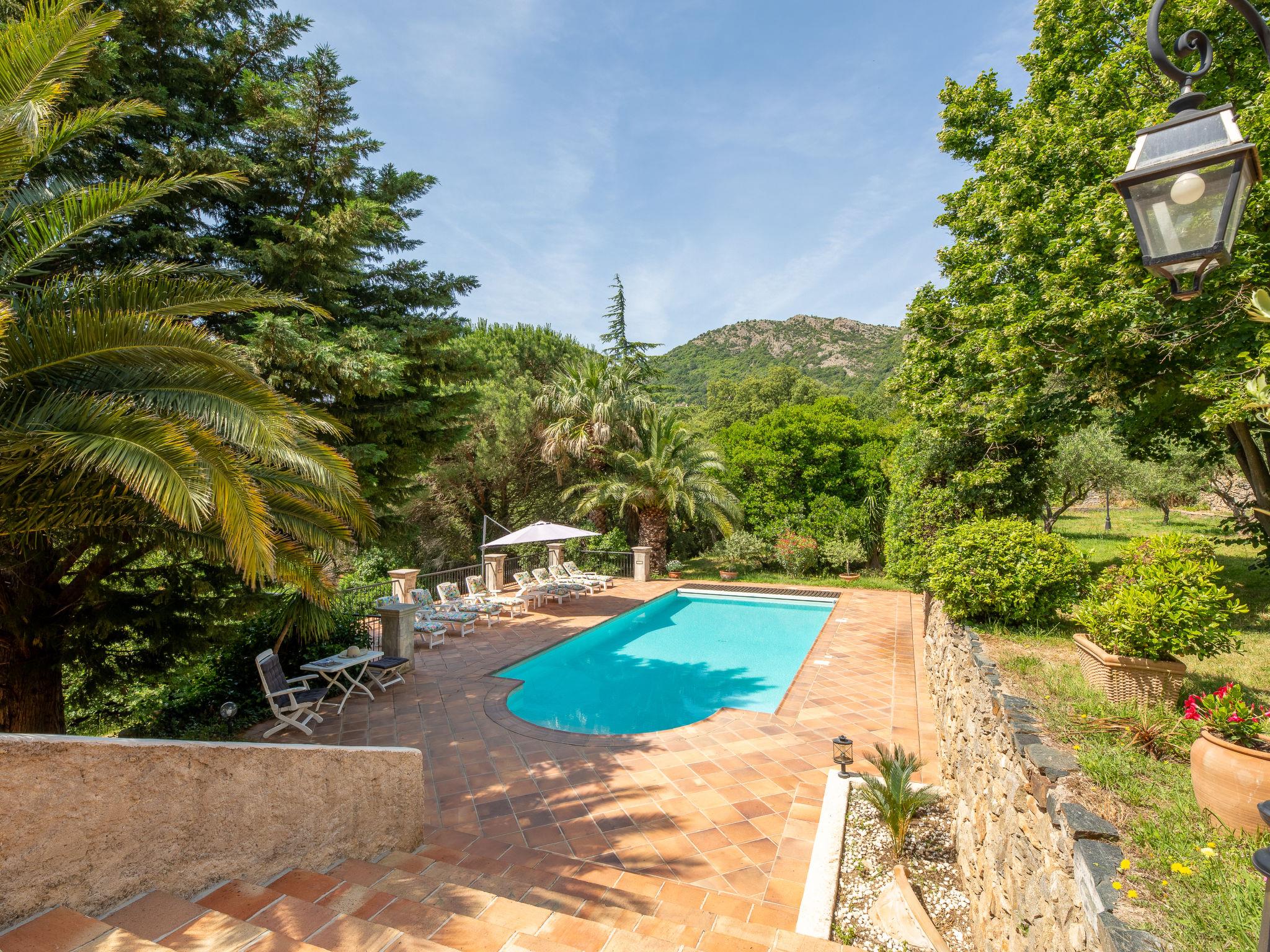 Beautiful mas "L'Oliverede", from the 19th century. 1.3 km from the centre of La Garde-Freinet, 8 km from the centre of Grimaud, 18 km from the centre of Saint Tropez, 14 km from the sea, in the countryside. Private: natural state property 5'000 m2, terraced garden (not fenced) with wildlife garden and trees, swimming pool (11 x 5 m, seasonal availability: 01.May. - 31.Oct.) with alarm system. Outdoor shower. Motor access (200 m via unmade road). Parking (for 3 cars) on the premises. Shop 1.3 km, bus stop 1 km, sandy beach 14 km.