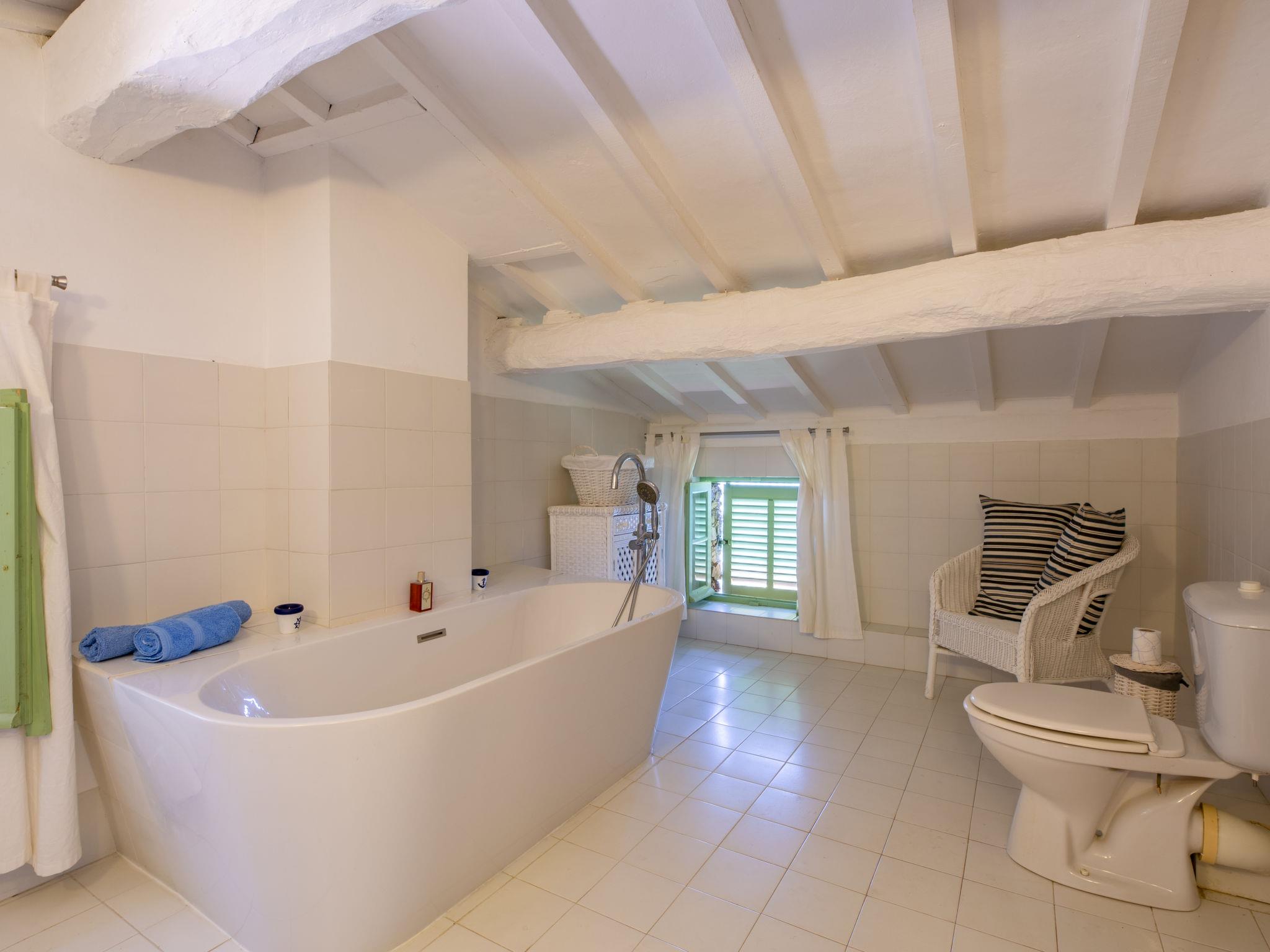 "Les Glycines", 5-room house 185 m2 on 3 levels. Partly with sloping ceilings, very beautiful and stylish furnishings: large living room with open-hearth fireplace, TV and wood-burning stove. Office. Exit to the terrace. Open kitchen (mini-oven, dishwasher, 4 ceramic glass hob hotplates, toaster, kettle, microwave, electric coffee machine). Shower/WC. Upper floor: 1 room with 1 french bed (160 cm, length 200 cm). 1 room with 1 french bed (180 cm, length 200 cm). Shower, sep. WC. 2nd upper floor: 2 rooms with sloping ceilings, ceiling height 120 - 180 cm, each room with 1 french bed (180 cm, length 200 cm), air conditioning. Bath/WC. Electric heating. Large terrace 50 m2, south facing position, porch. Very beautiful panoramic view. Facilities: washing machine. Internet (WiFi, free). Please note: non-smoking house. Maximum 1 pet/ dog allowed. Smoke alarm. Offer by a private individual according to Art. 155, IV of CGI. 83063000175KJ