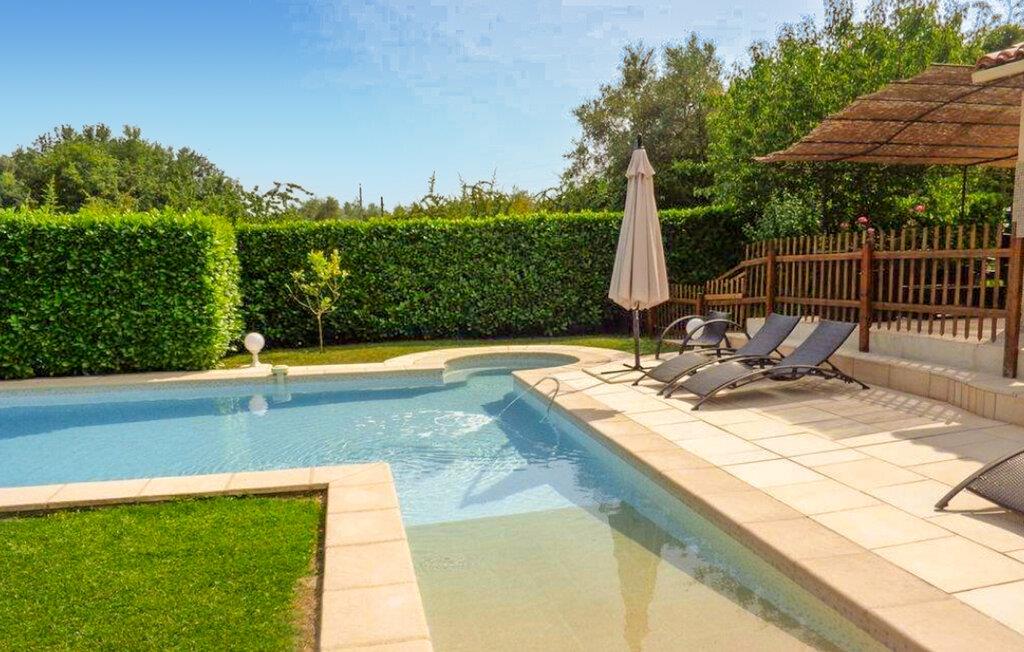 Den velstelte, inngjerdede hagen har en lekeplass og en stor gressplen der barna kan boltre seg. Tilbring lange timer i solen ved det vakre bassenget, og nyt koselige grillkvelder med vin og levende lys.